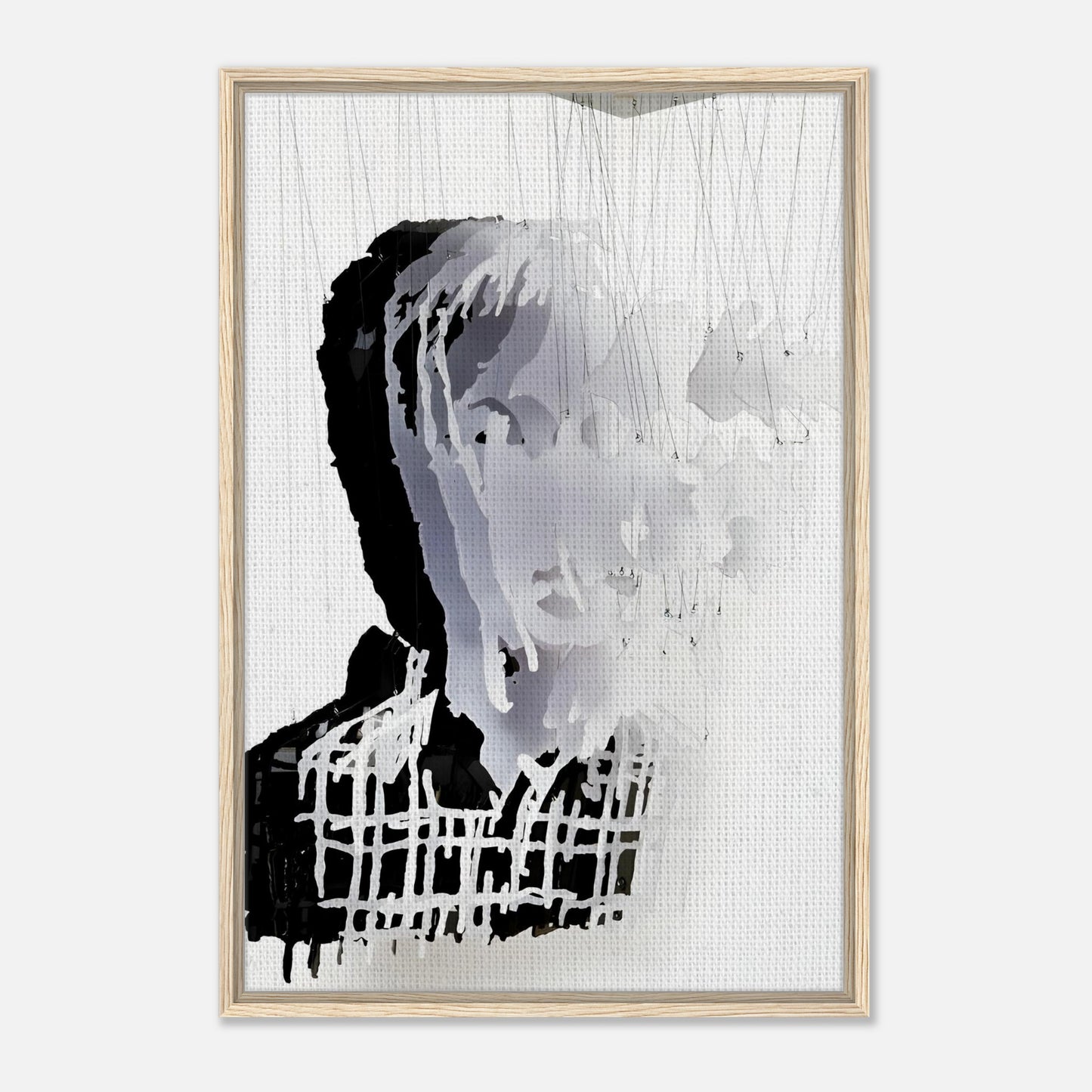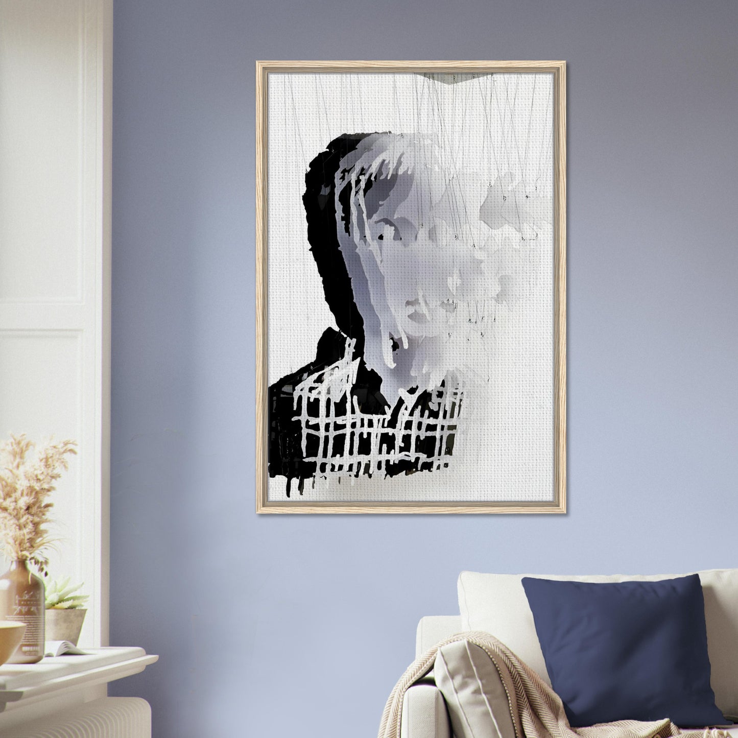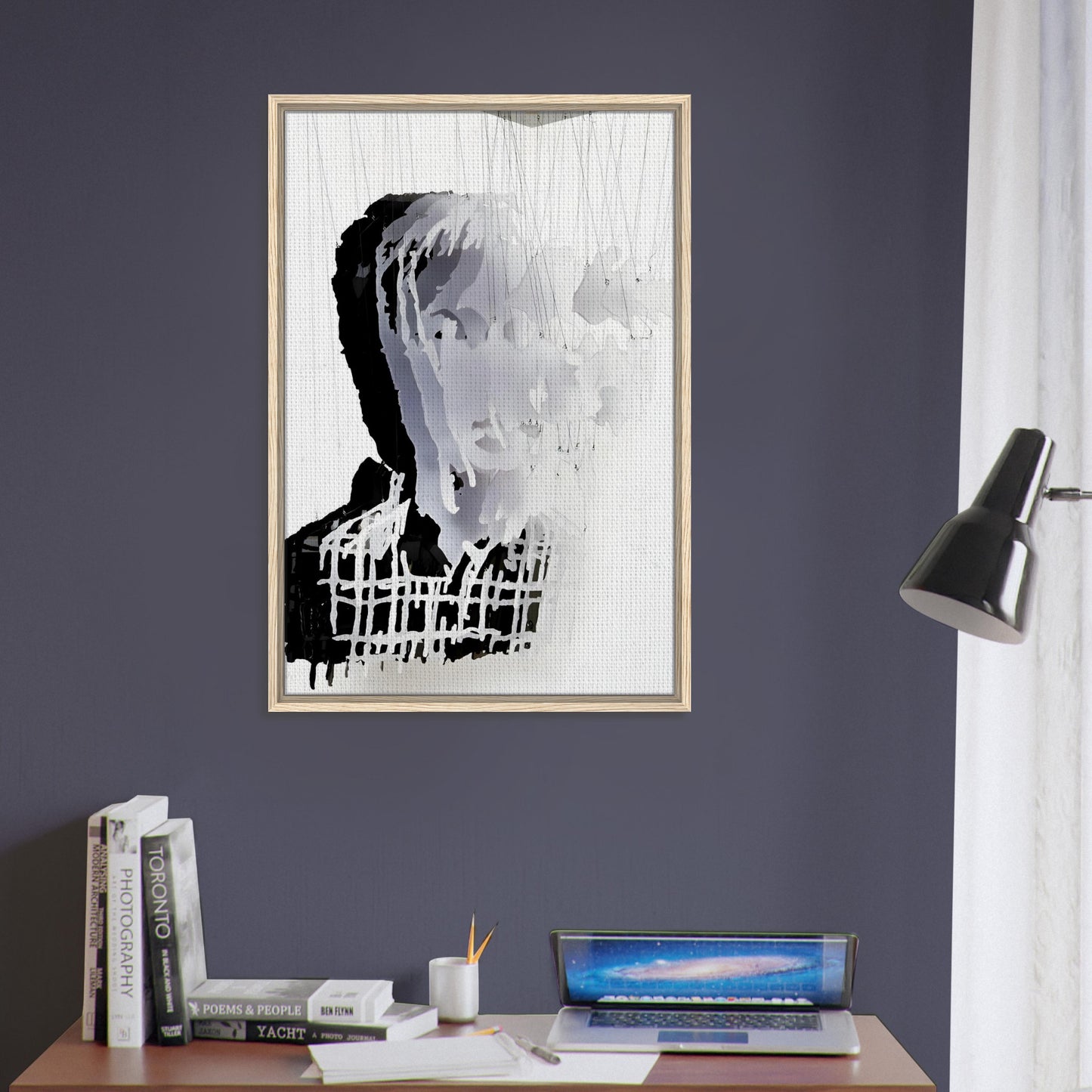 Abstract Black & White Portrait Framed Canvas - Modern Minimalist Art