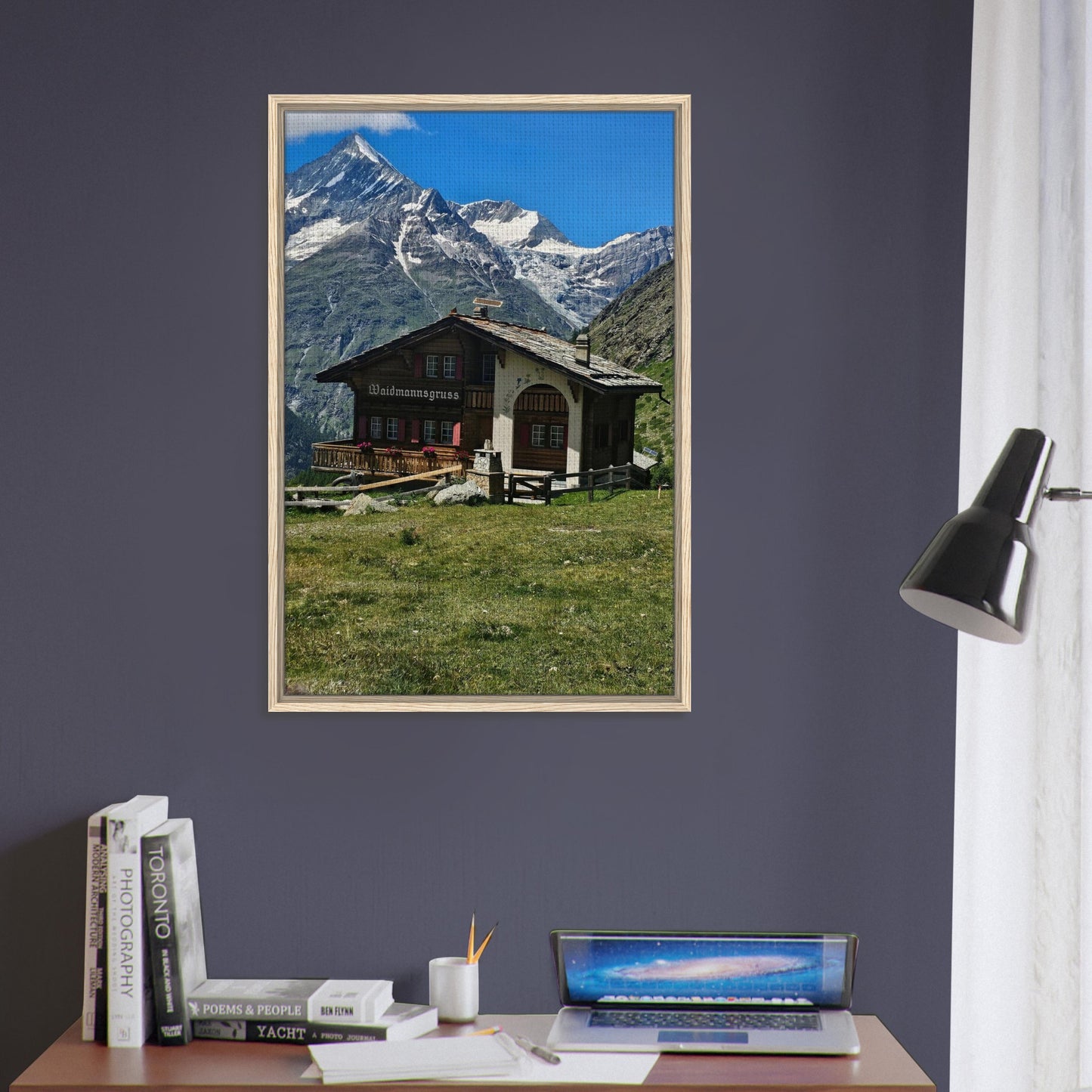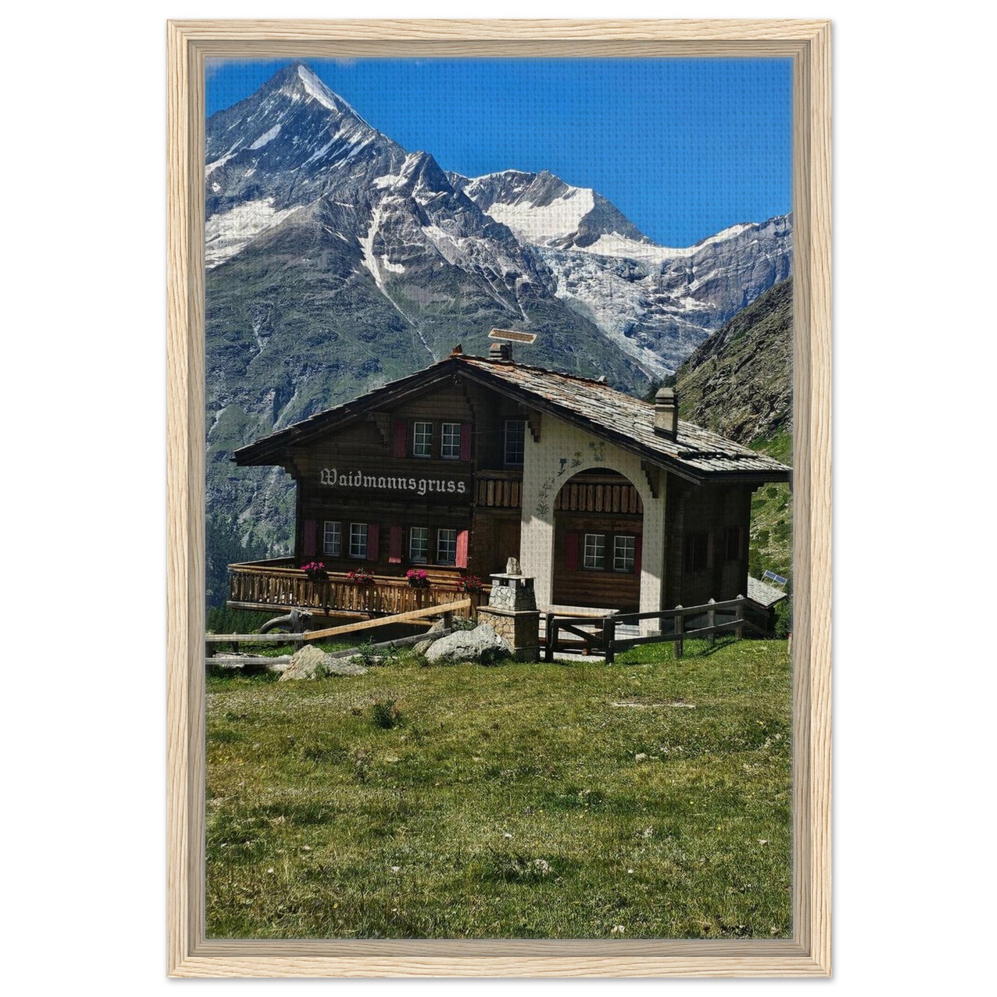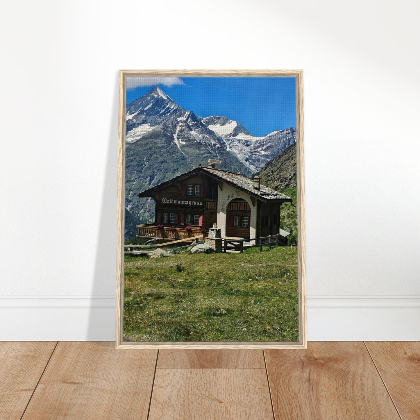 Alpine Chalet Mountain Scene Framed Canvas Wall Art