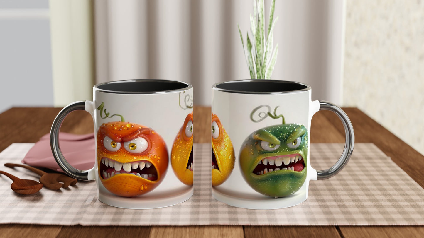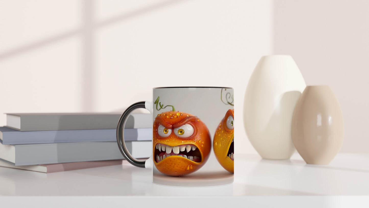 Angry Fruit Faces Funny Coffee Mug - Citrus Monster Character Design