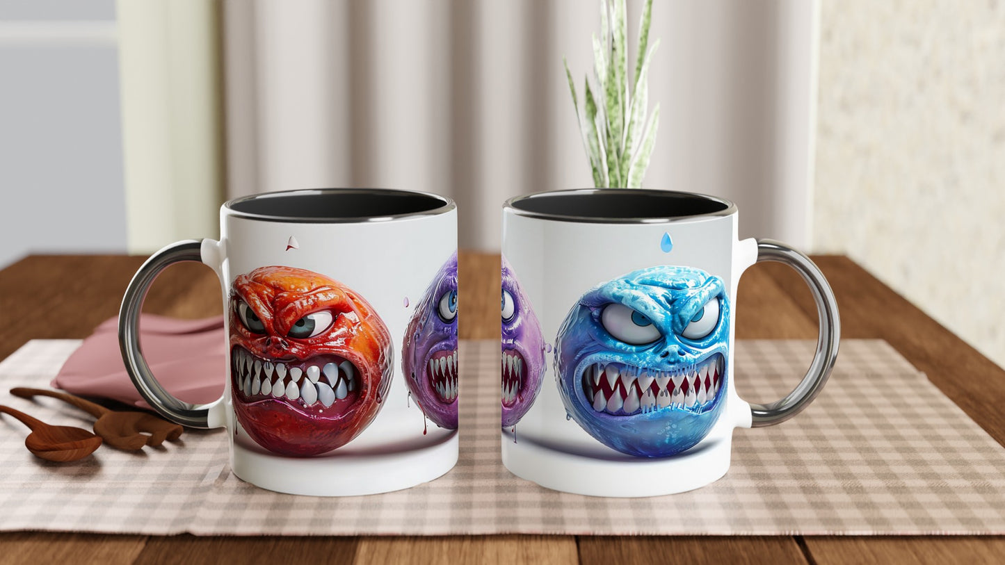 Angry Monster Faces Mug - Colorful Fierce Character Coffee Cup