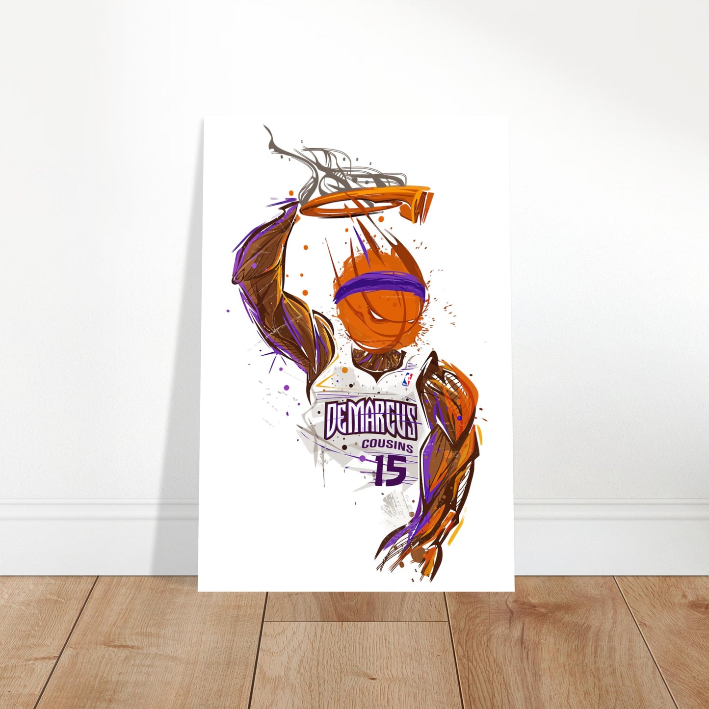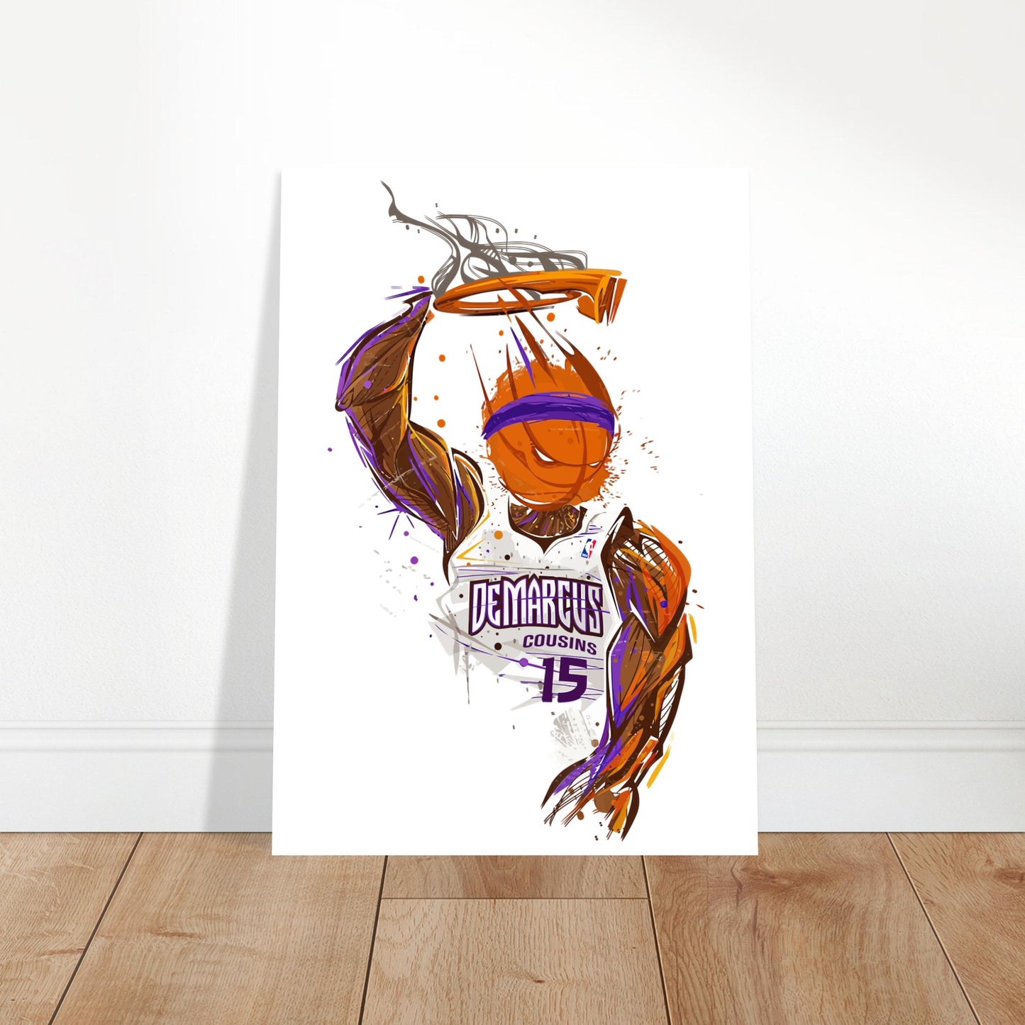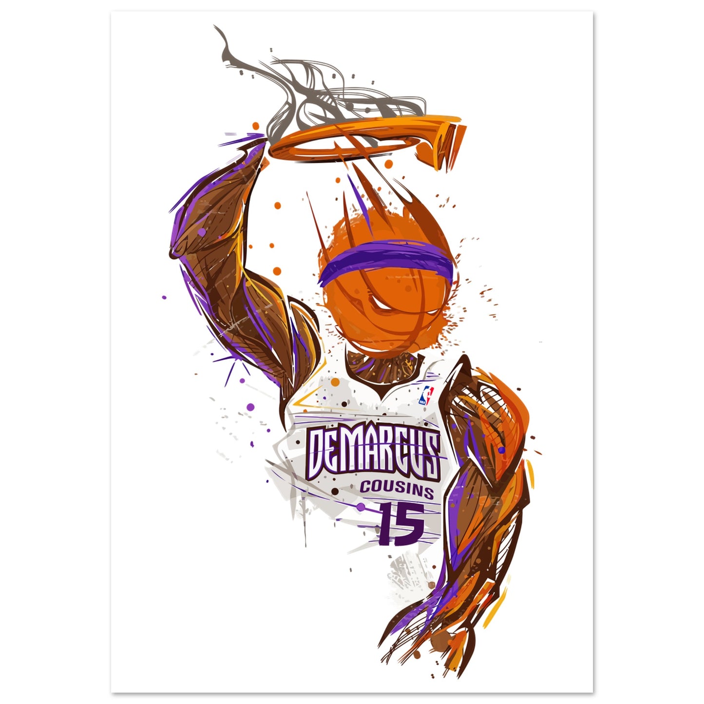 Dynamic abstract basketball artwork featuring energetic brushstrokes in vibrant orange and purple. Jersey number 15 is highlighted in a striking artistic style, capturing the motion and energy of the game. The design combines splatter effects and fluid lines to create a modern, athletic aesthetic perfect for sports enthusiasts
