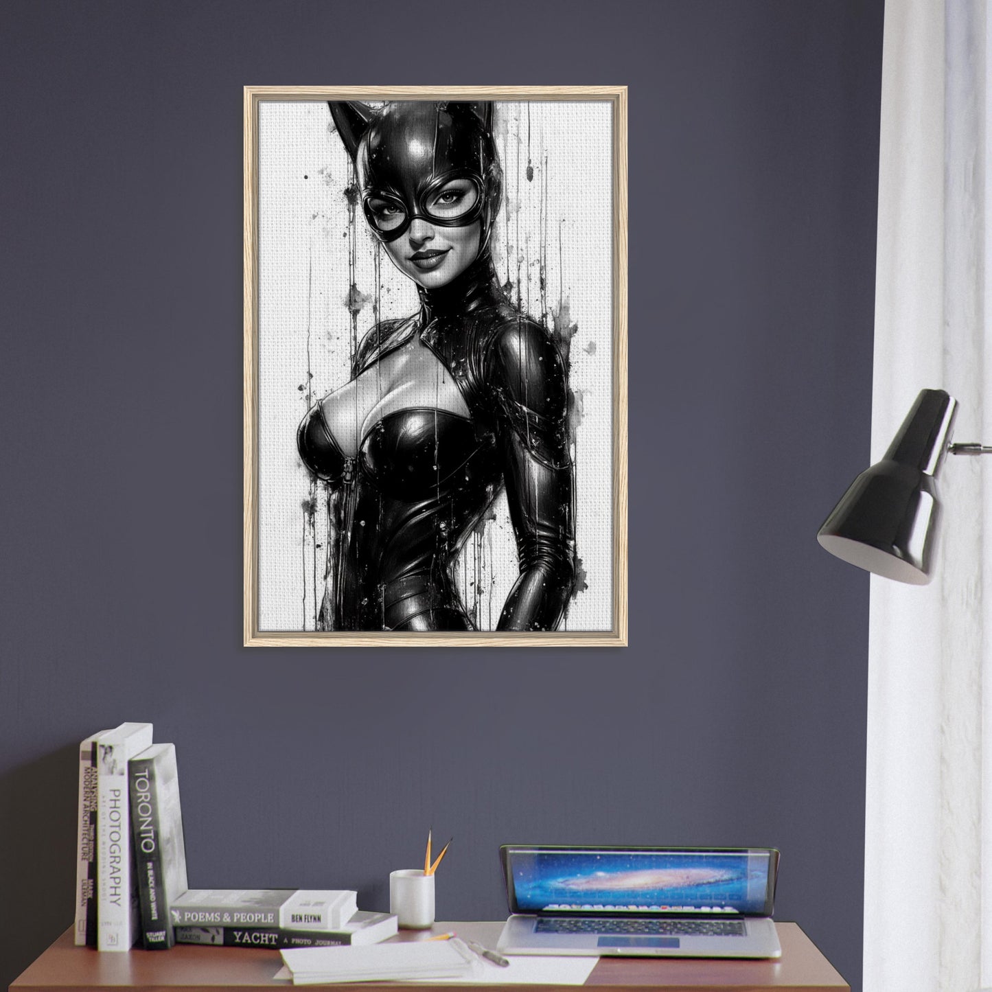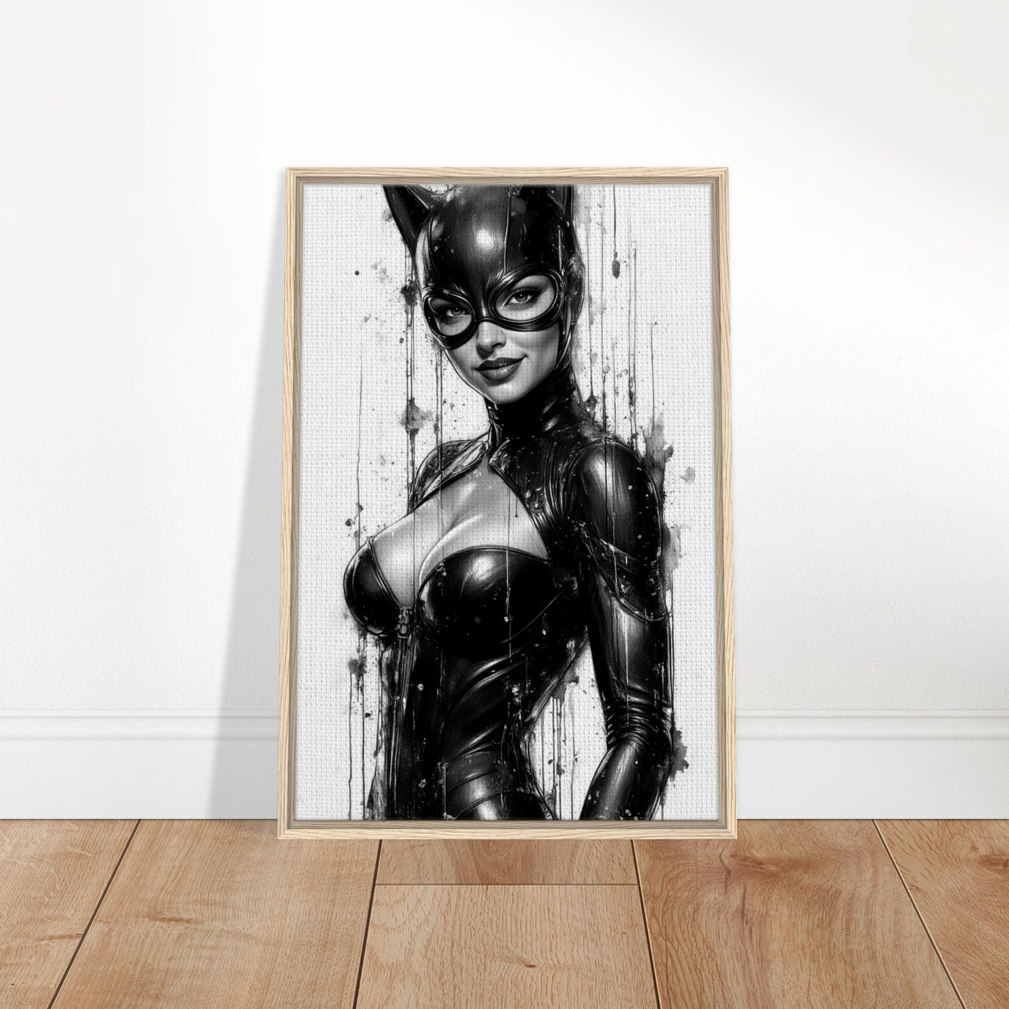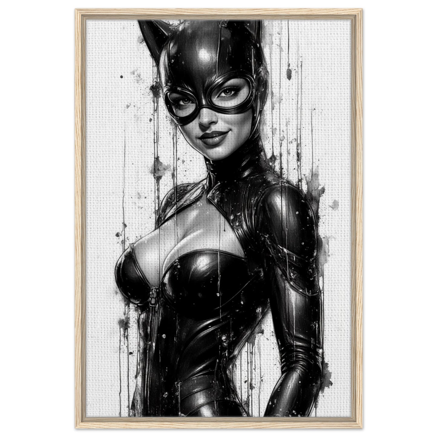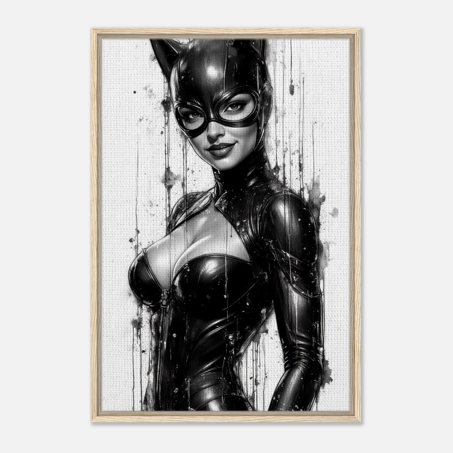 Catwoman Black & White Comic Art Framed Canvas Wall Art
