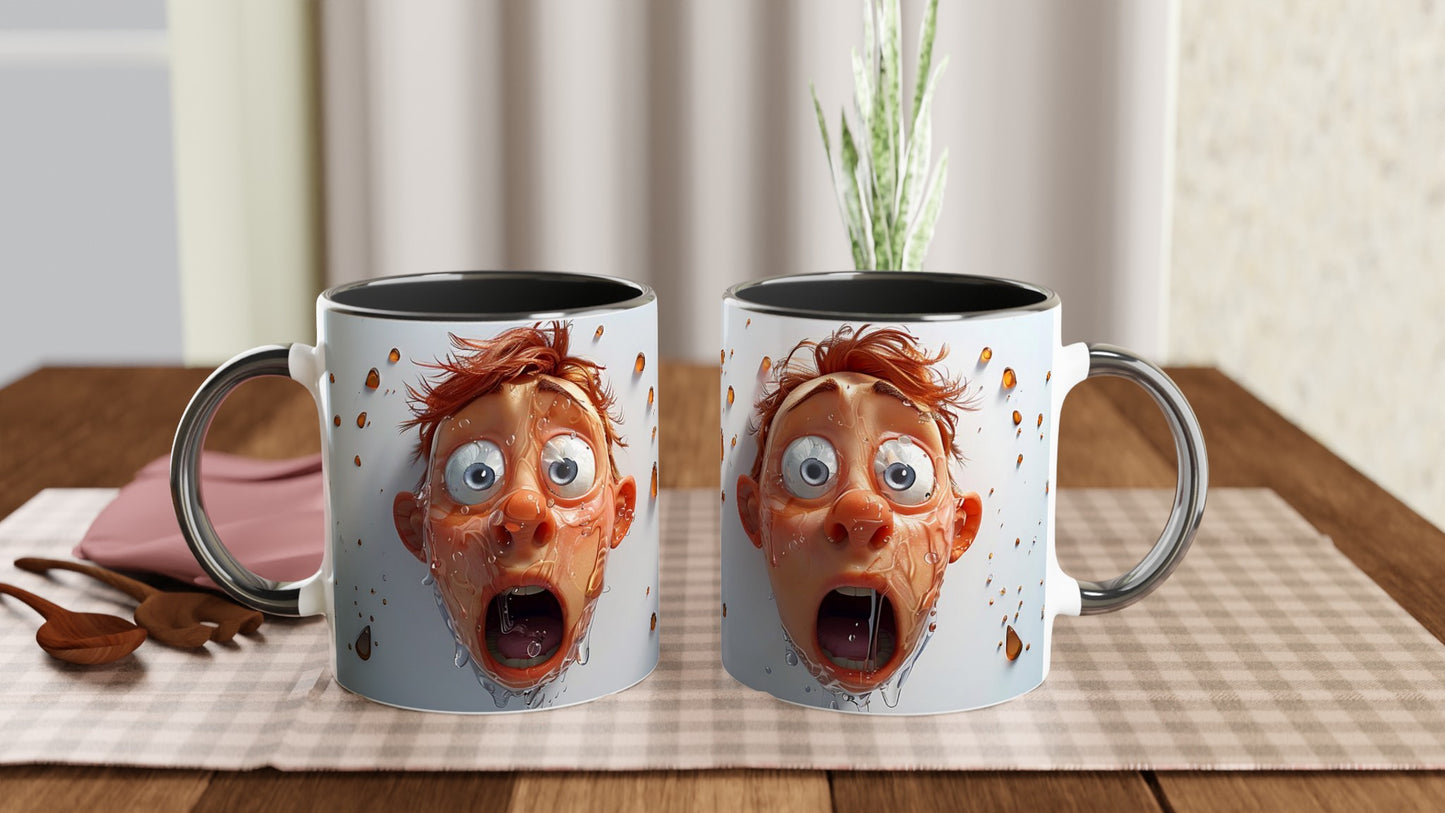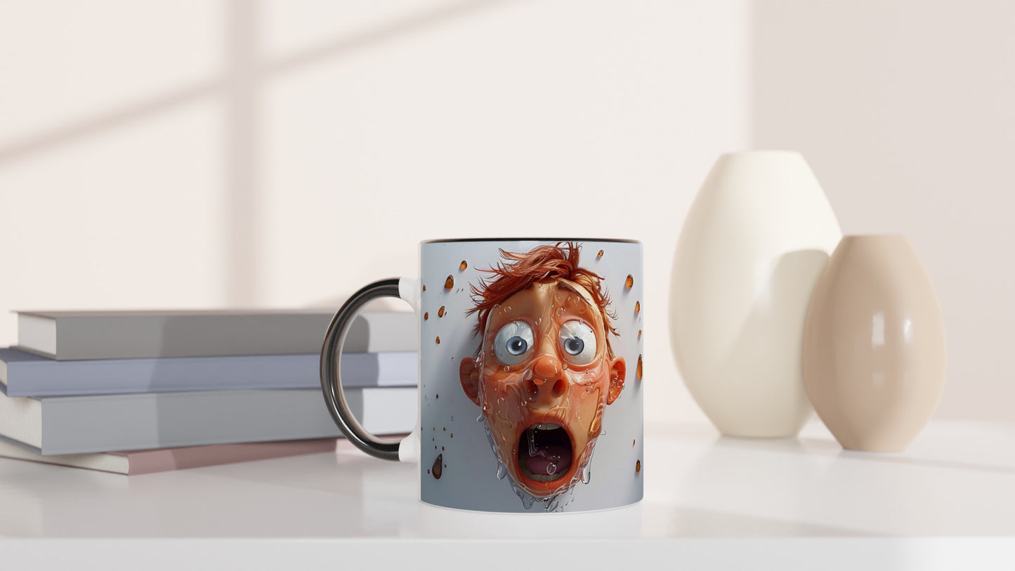 Coffee Splash Surprise Funny Face Mug - Shocked Expression Art