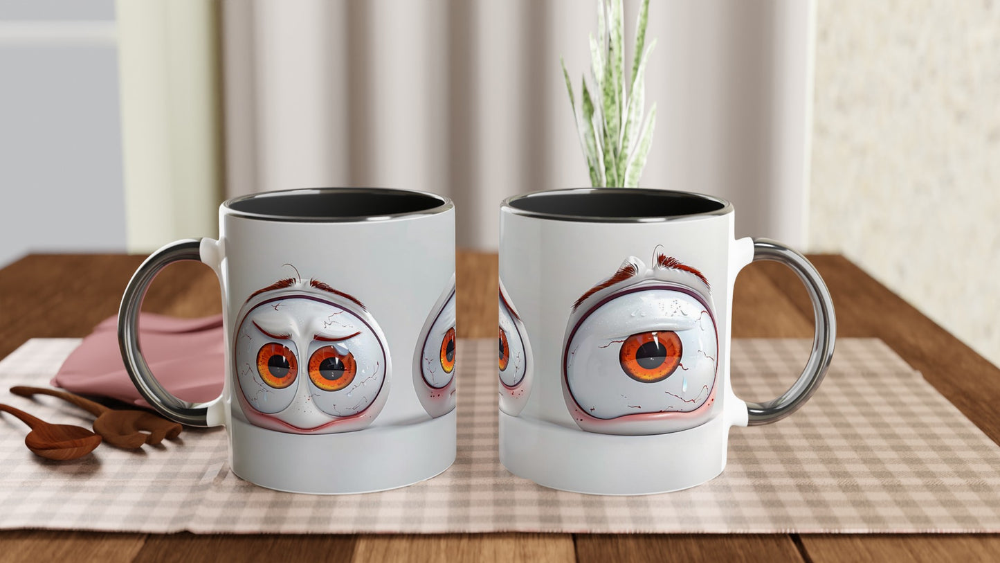 Cute Expressive Eyes Coffee Mug - Kawaii Character Design Art