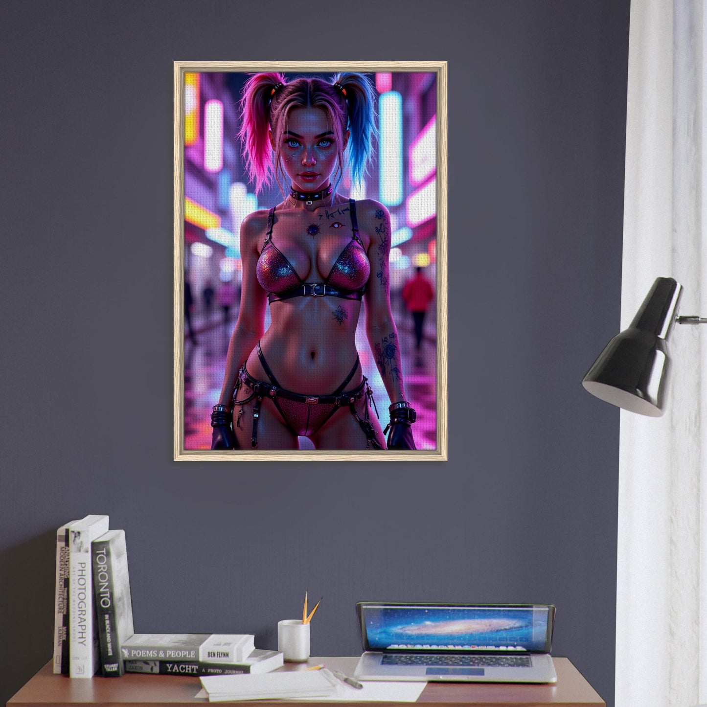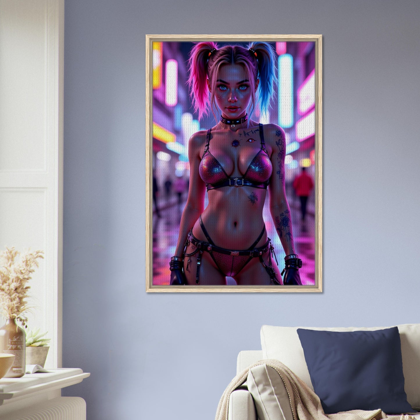 Harley Quinn in Neon City Framed Canvas Wall Art