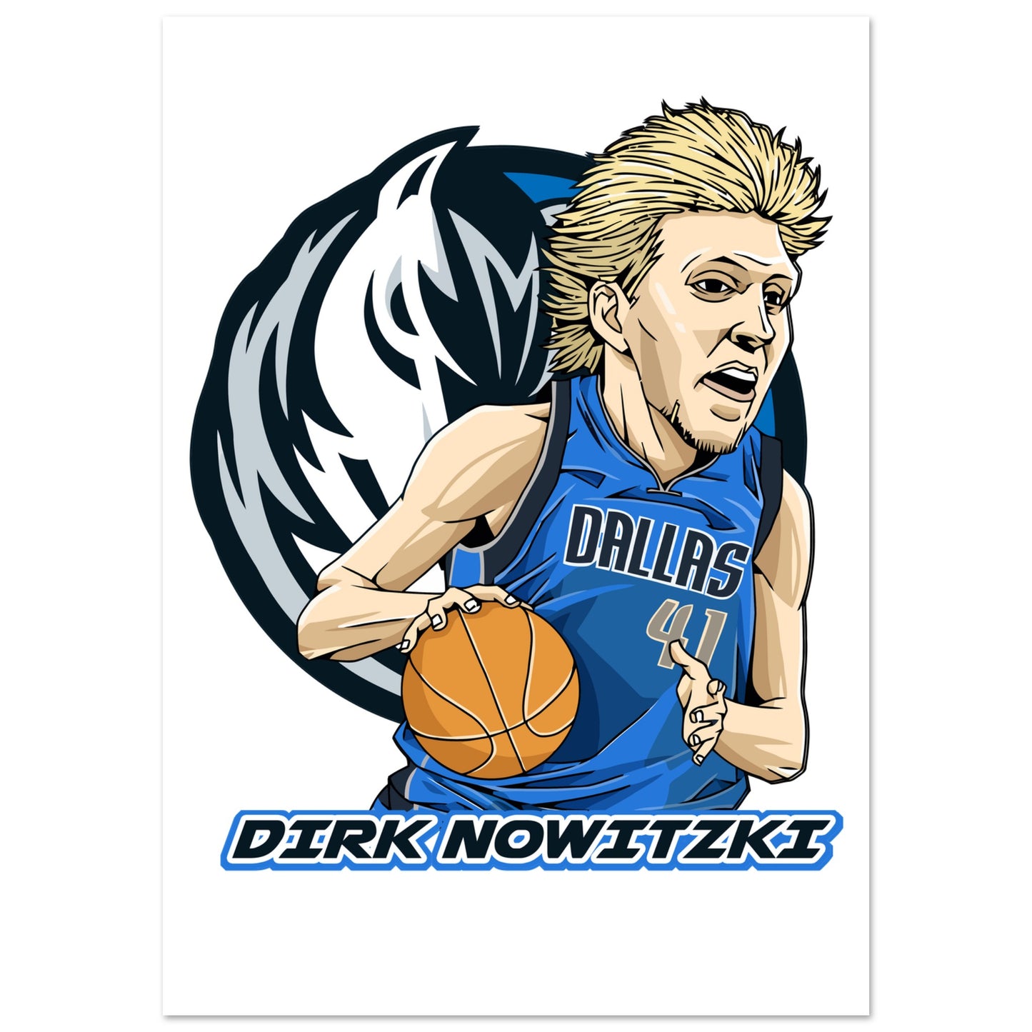 Dallas Basketball Player Cartoon Art Poster Print