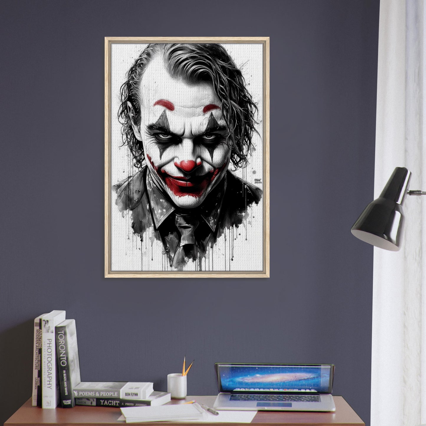 The Joker Portrait Framed Canvas Wall Art - Gothic Dripping Paint Style