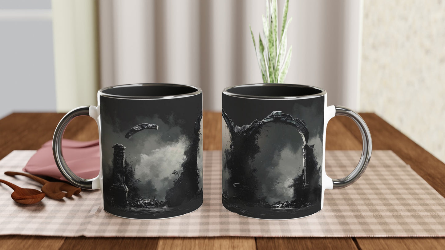 Dark Gothic Ruins Mug - Ancient Stone Arches in Mist