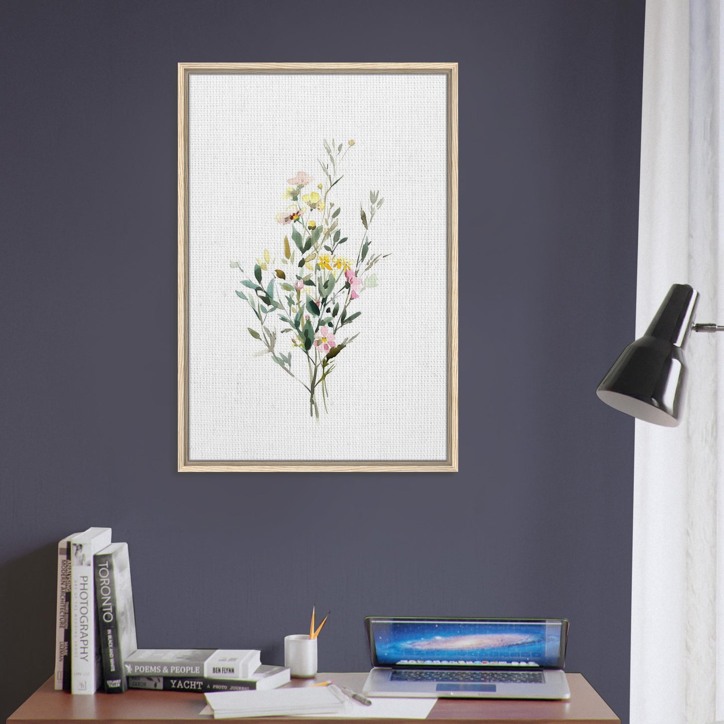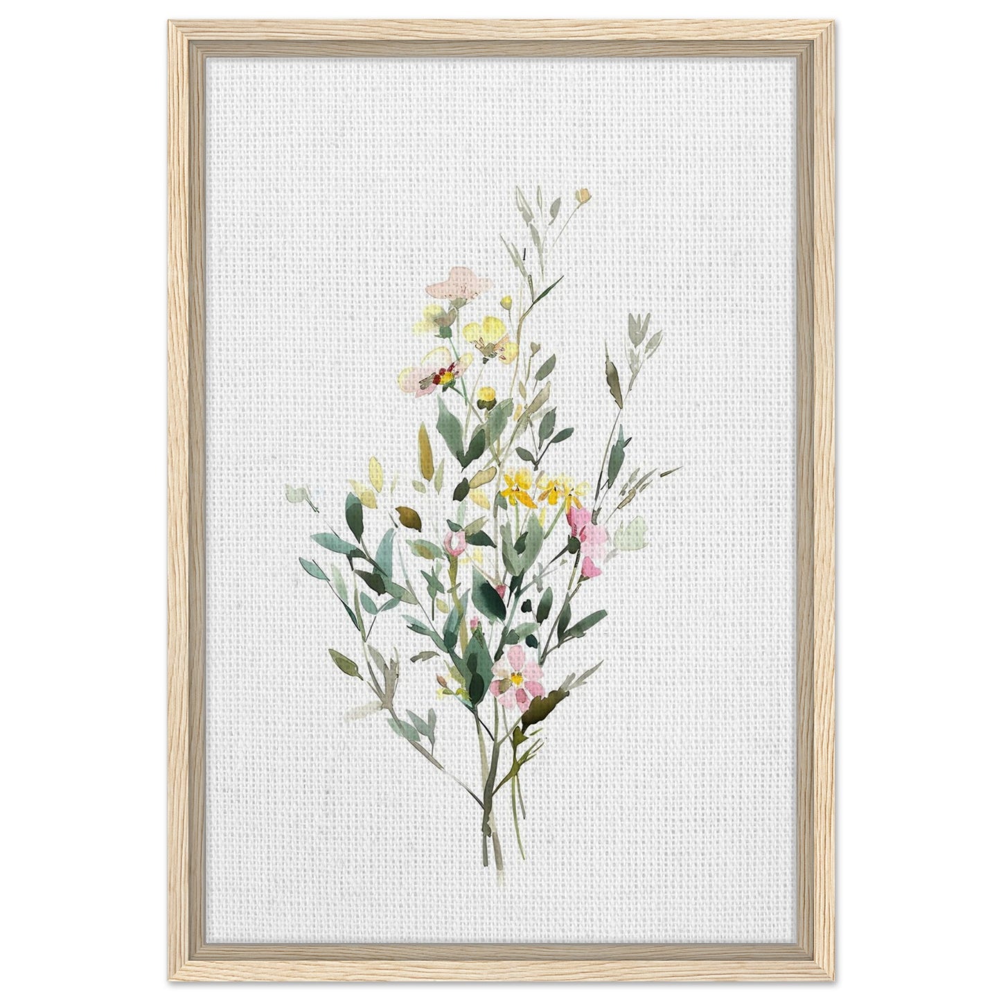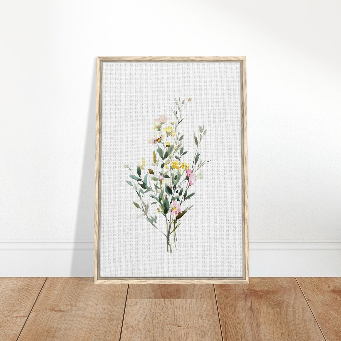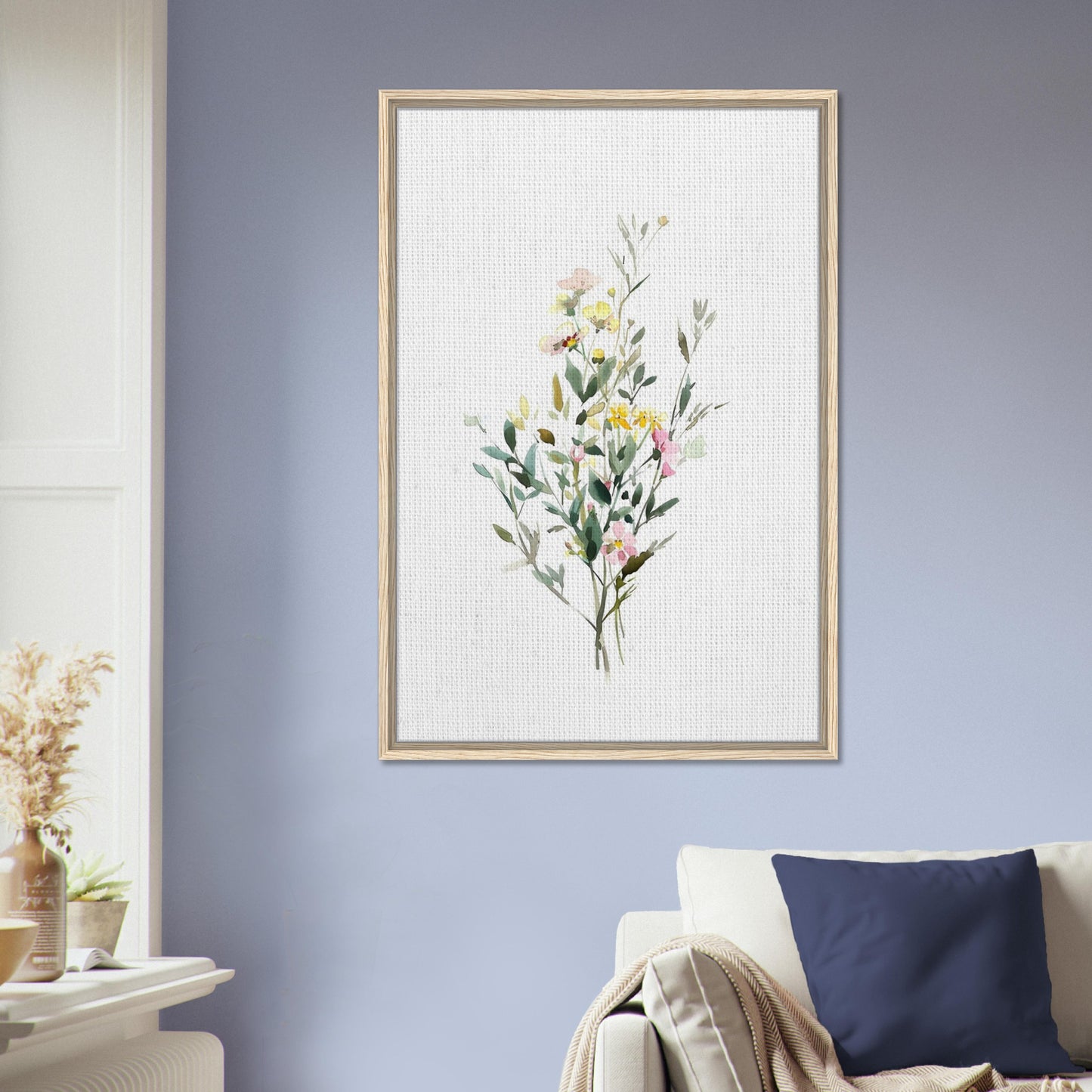 Delicate Wildflowers Watercolor Framed Canvas Art - Botanical Wall Decor",