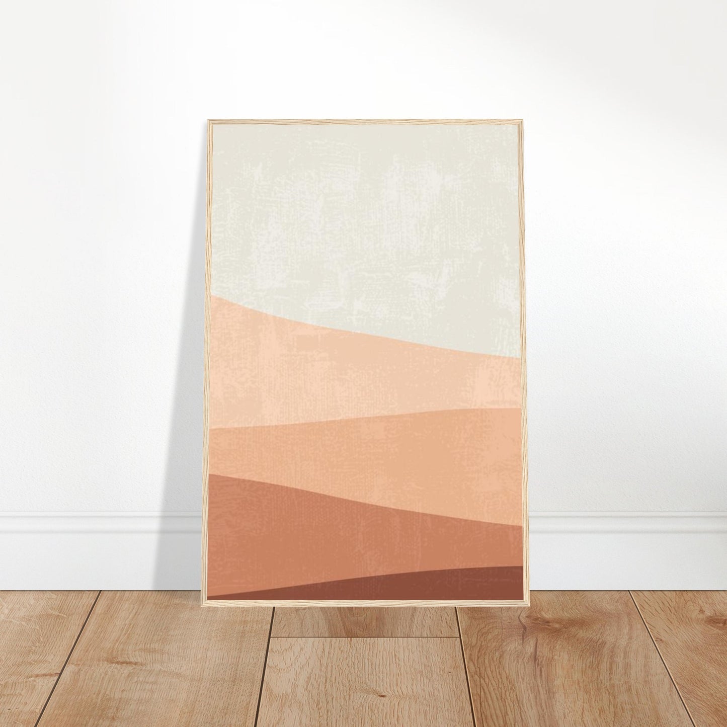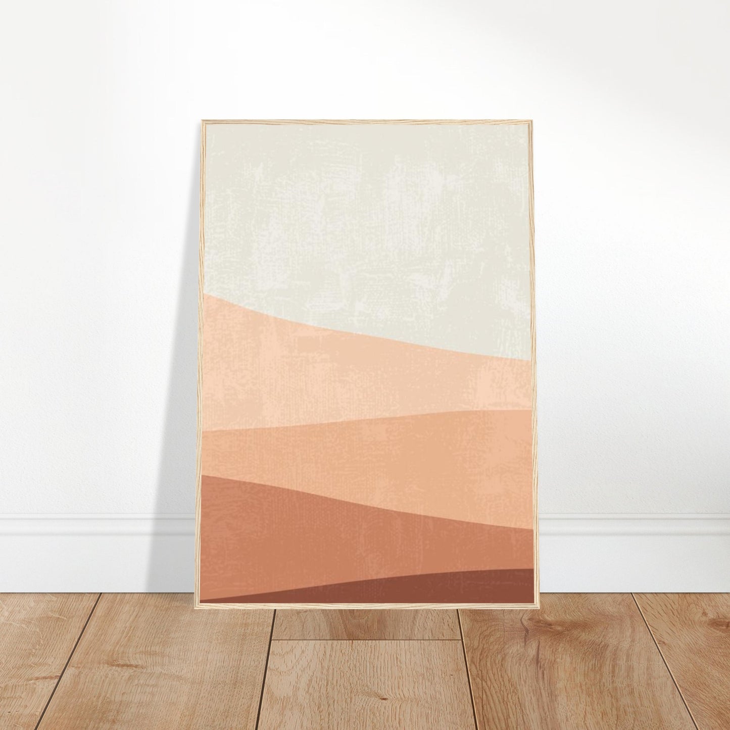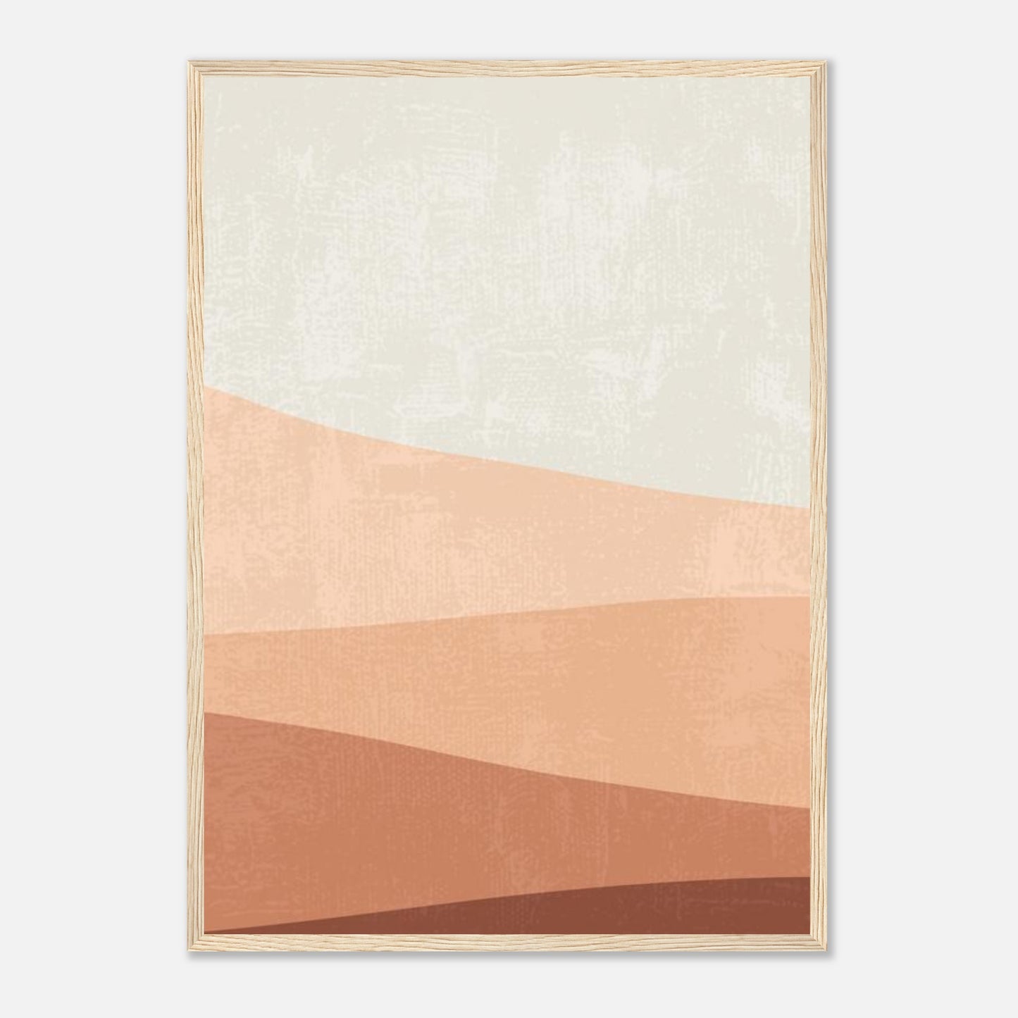 A serene minimalist landscape featuring gentle waves of terracotta and earth tones against a soft cream background. This modern abstract design captures the essence of desert dunes with its flowing layers of warm browns and peachy hues, creating a calming and contemporary aesthetic perfect for any room