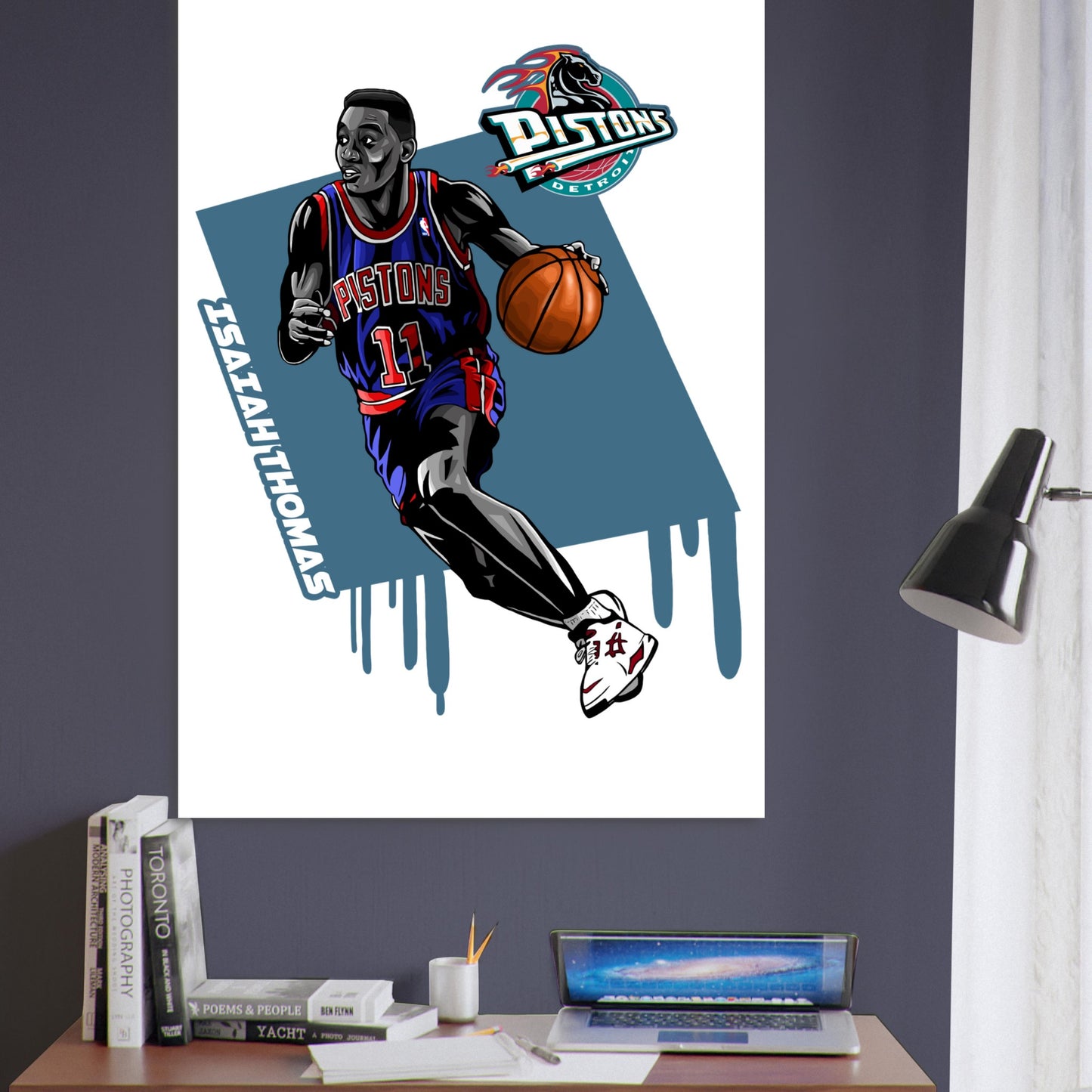 Detroit Pistons Basketball Player Art Poster - Retro Sports Wall Decor