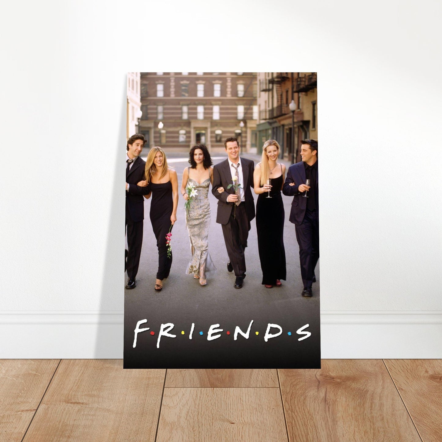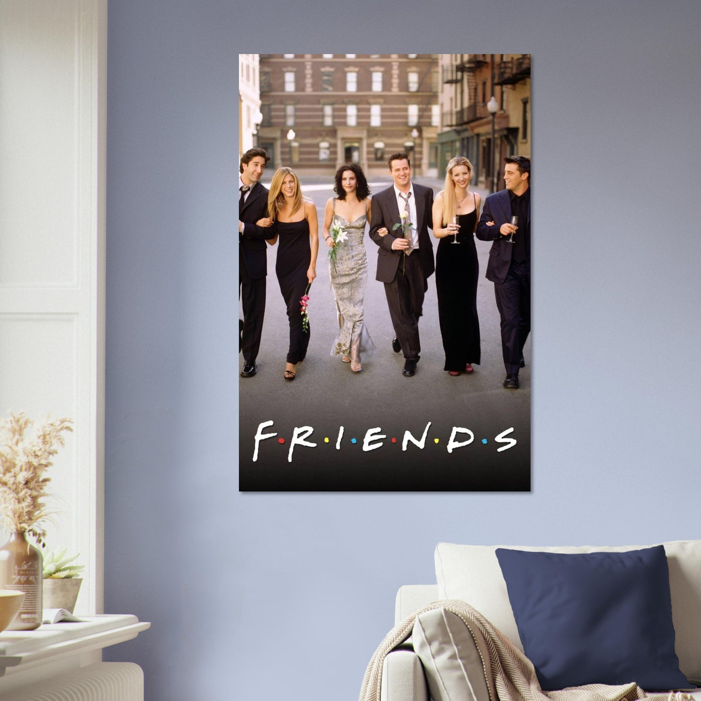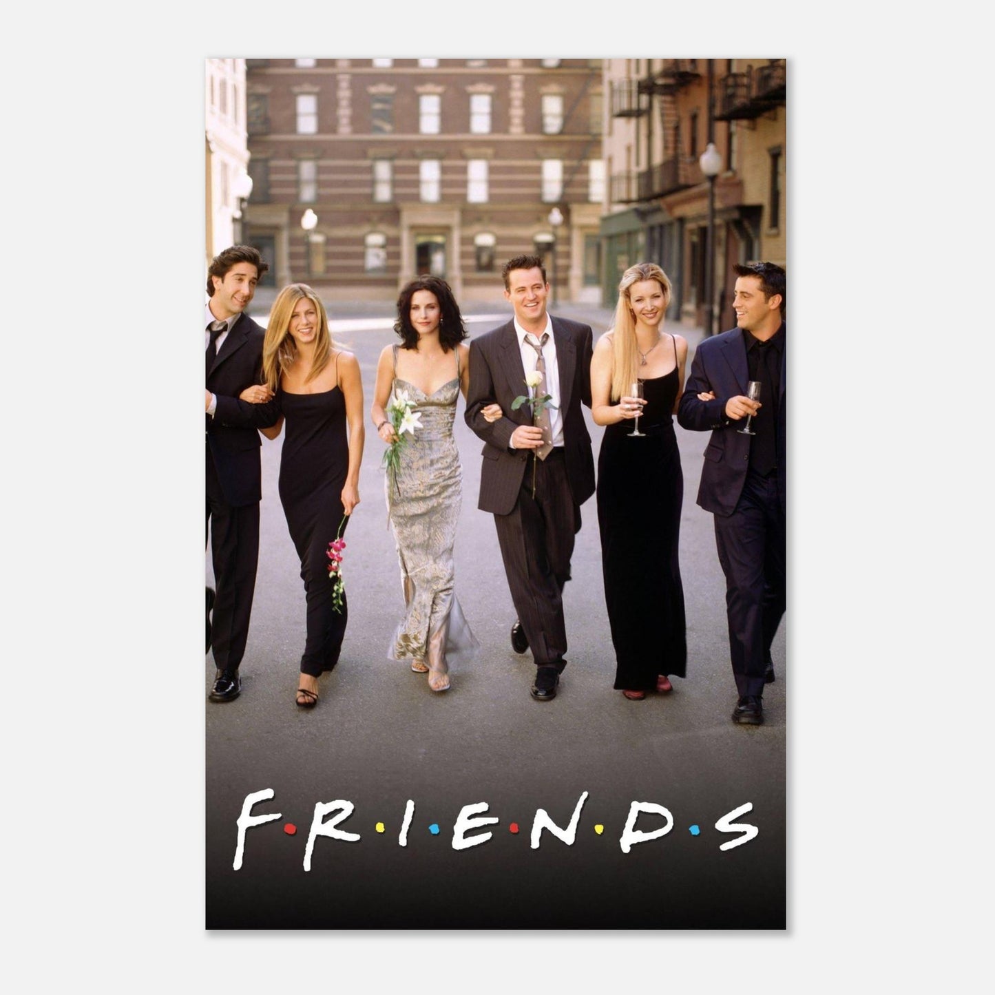 A nostalgic promotional shot capturing the iconic group walking down a city street. The elegant formal attire and urban backdrop create a timeless scene that encapsulates the show's New York setting. Rich sepia-toned photography emphasizes the classic style and warmth of this memorable image