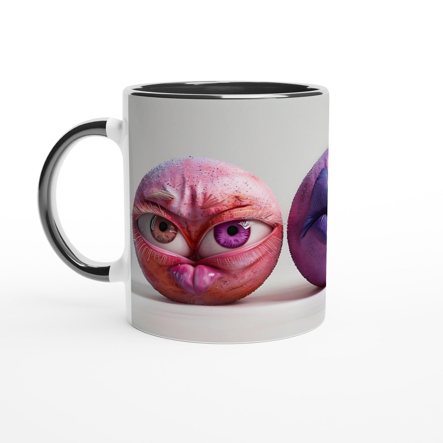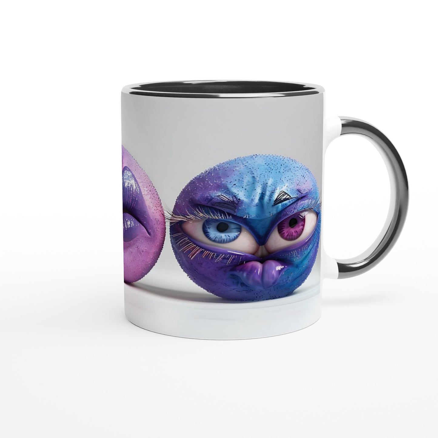 This beautiful ceramic mug is perfect for any event of the day. Your morning coffee, a hot chocolate, or any other hot beverage you enjoy. The mug is glossy white with a colored rim, inside, and handle. The prints come out beautifully and vividly on it. The print retains its quality and luster when used in both microwaves and the dishwasher.