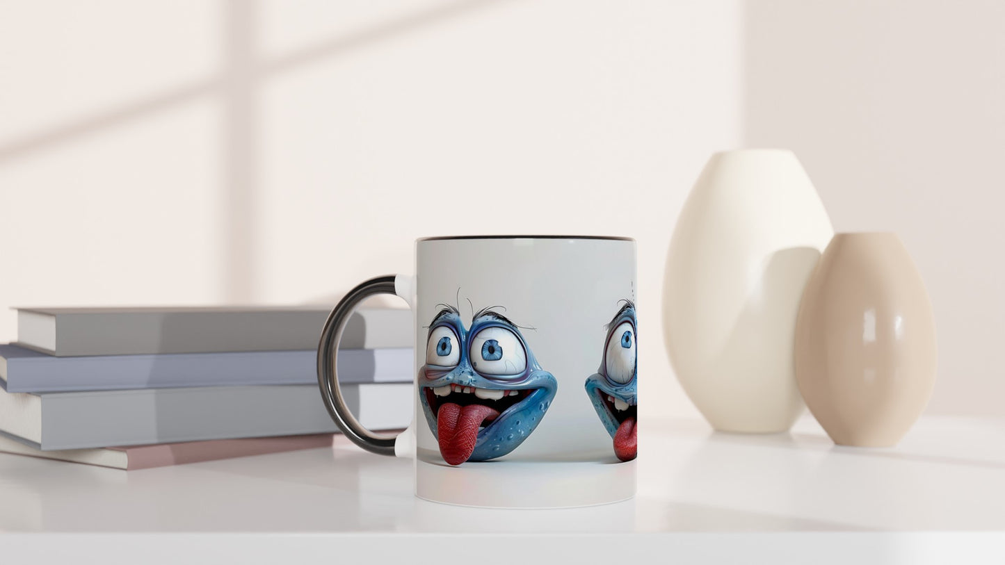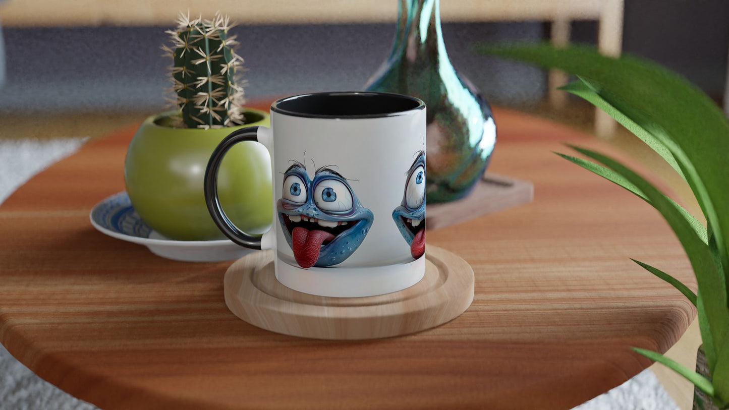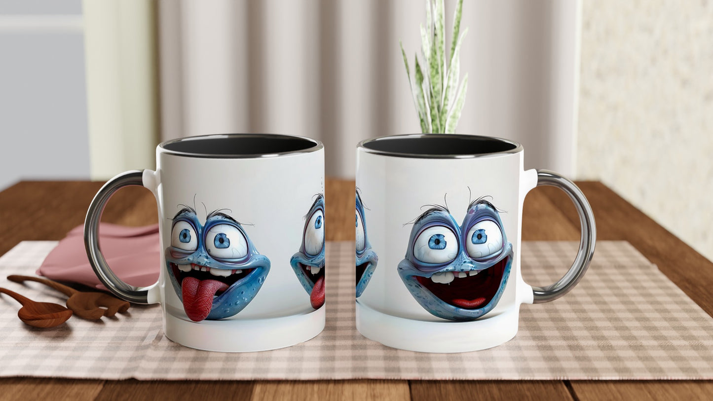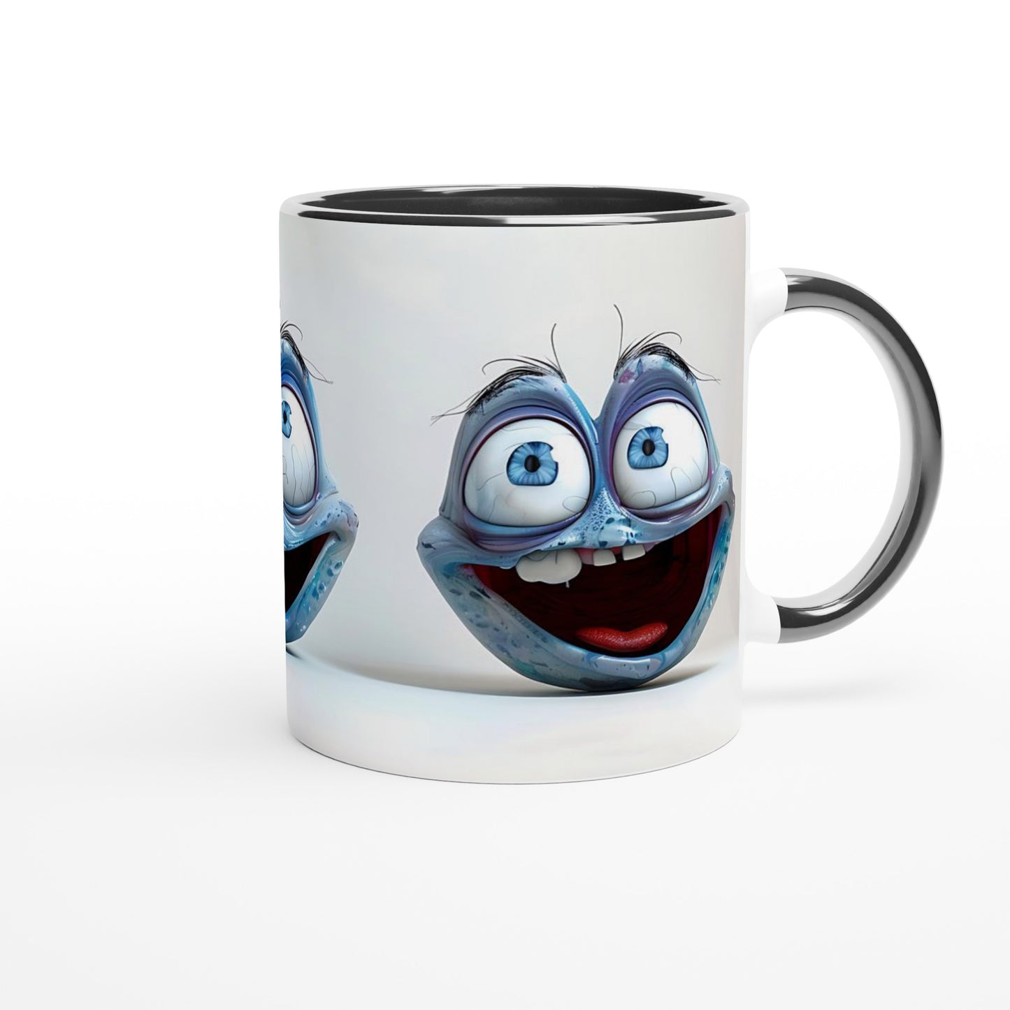 Funny Blue Character Expression Mug - Silly Faces Coffee Cup Design