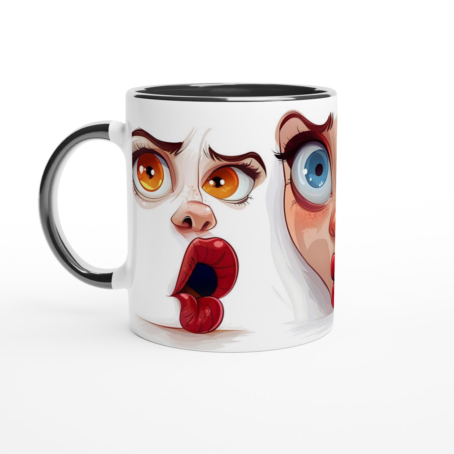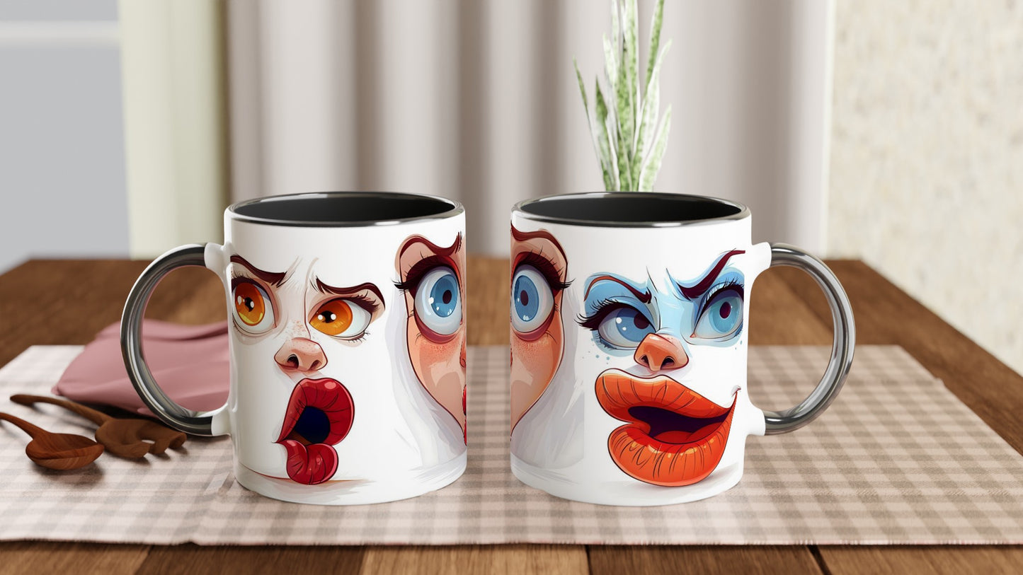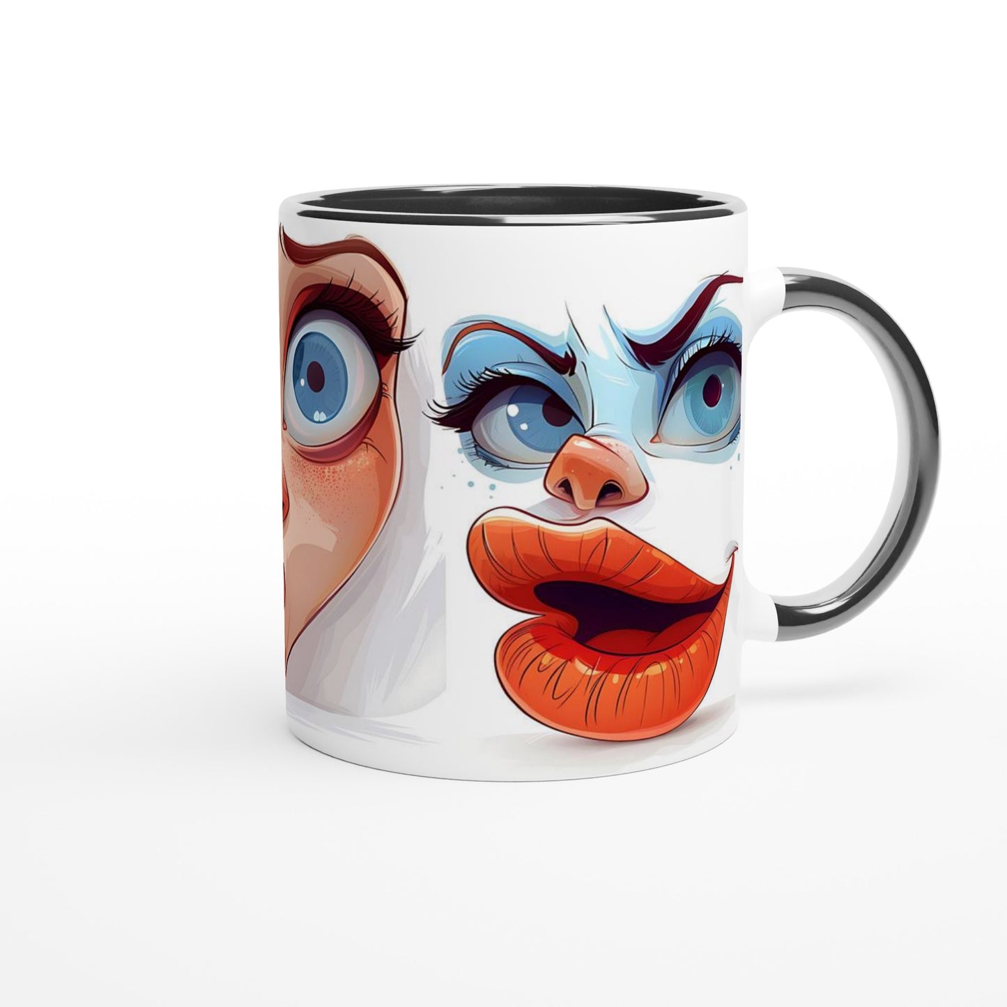 Funny Cartoon Expressions Coffee Mug | Expressive Eyes and Lips Design