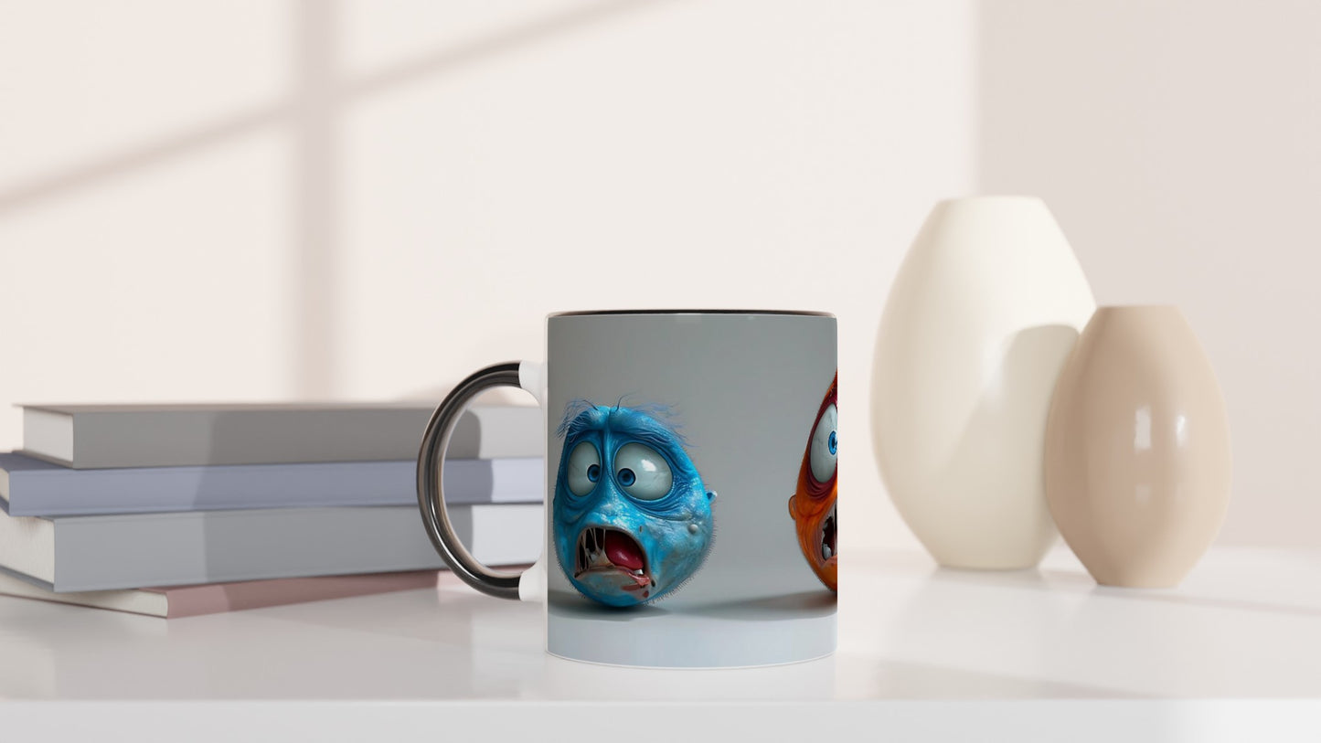 Funny Cartoon Monster Faces Coffee Mug - Expressive Character Design