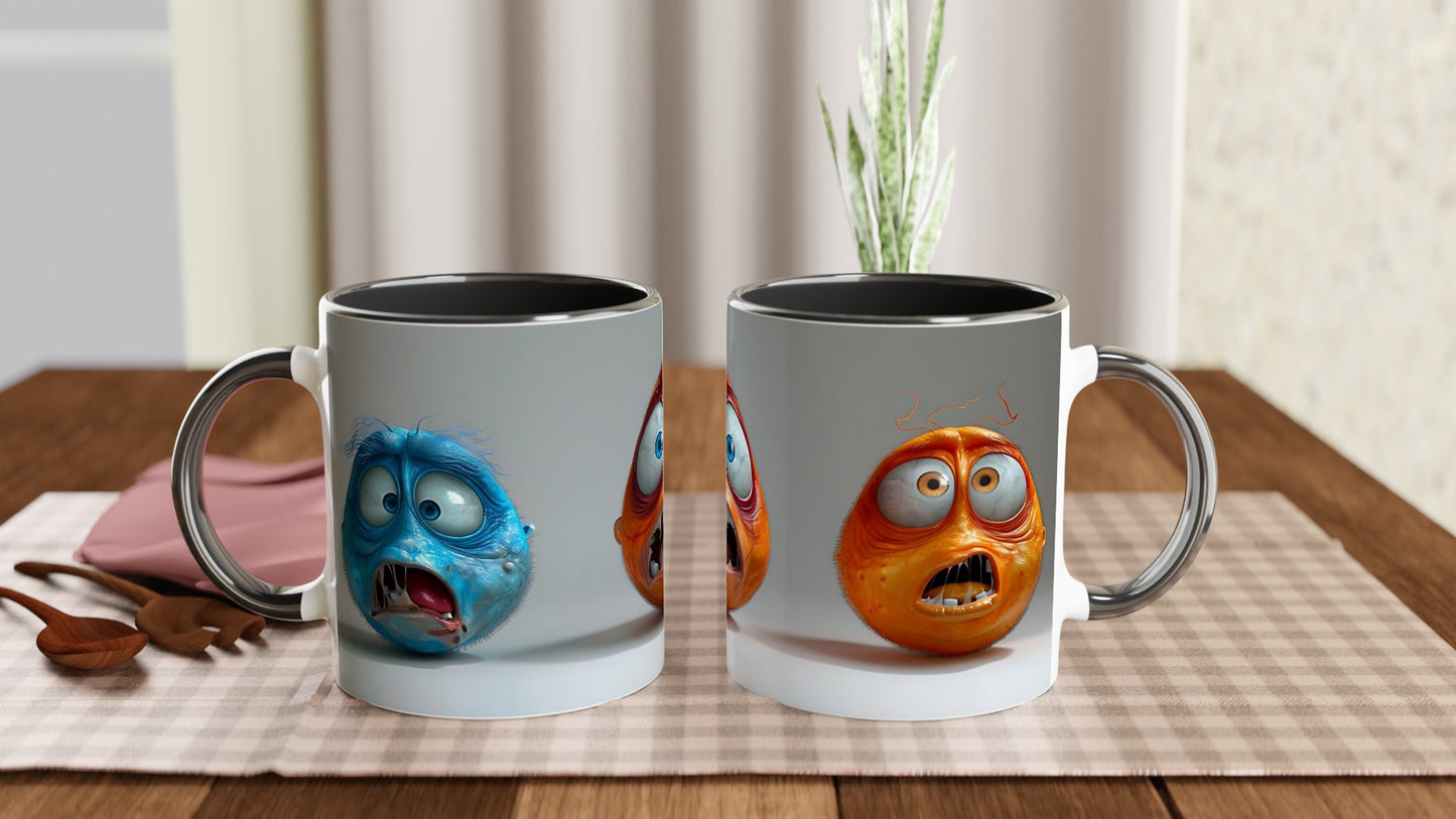 This beautiful ceramic mug is perfect for any event of the day. Your morning coffee, a hot chocolate, or any other hot beverage you enjoy. The mug is glossy white with a colored rim, inside, and handle. The prints come out beautifully and vividly on it. The print retains its quality and luster when used in both microwaves and the dishwasher.