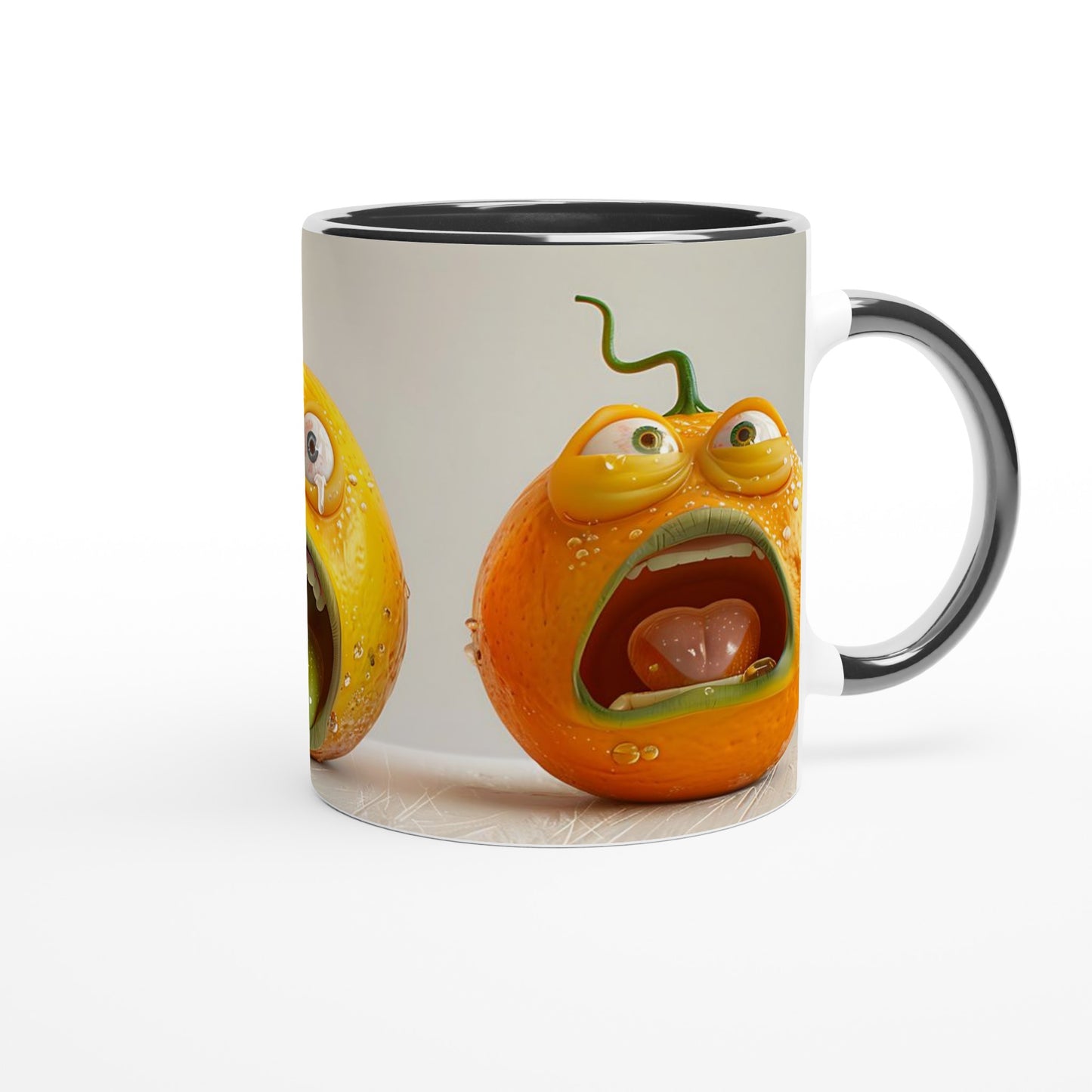 Funny Citrus Monster Faces Coffee Mug - Quirky Orange Characters",