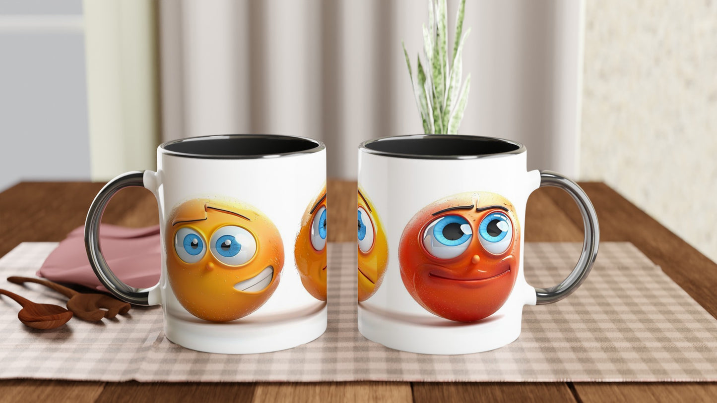 Funny Emoji Faces Coffee Mug - Expressive Emotions Cartoon Design",