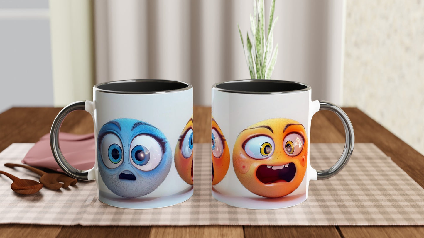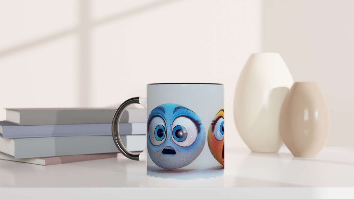 Funny Emoji Faces Coffee Mug - Expressive Emotions Cartoon Design