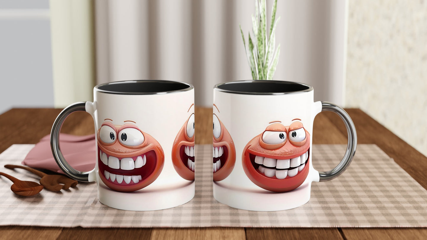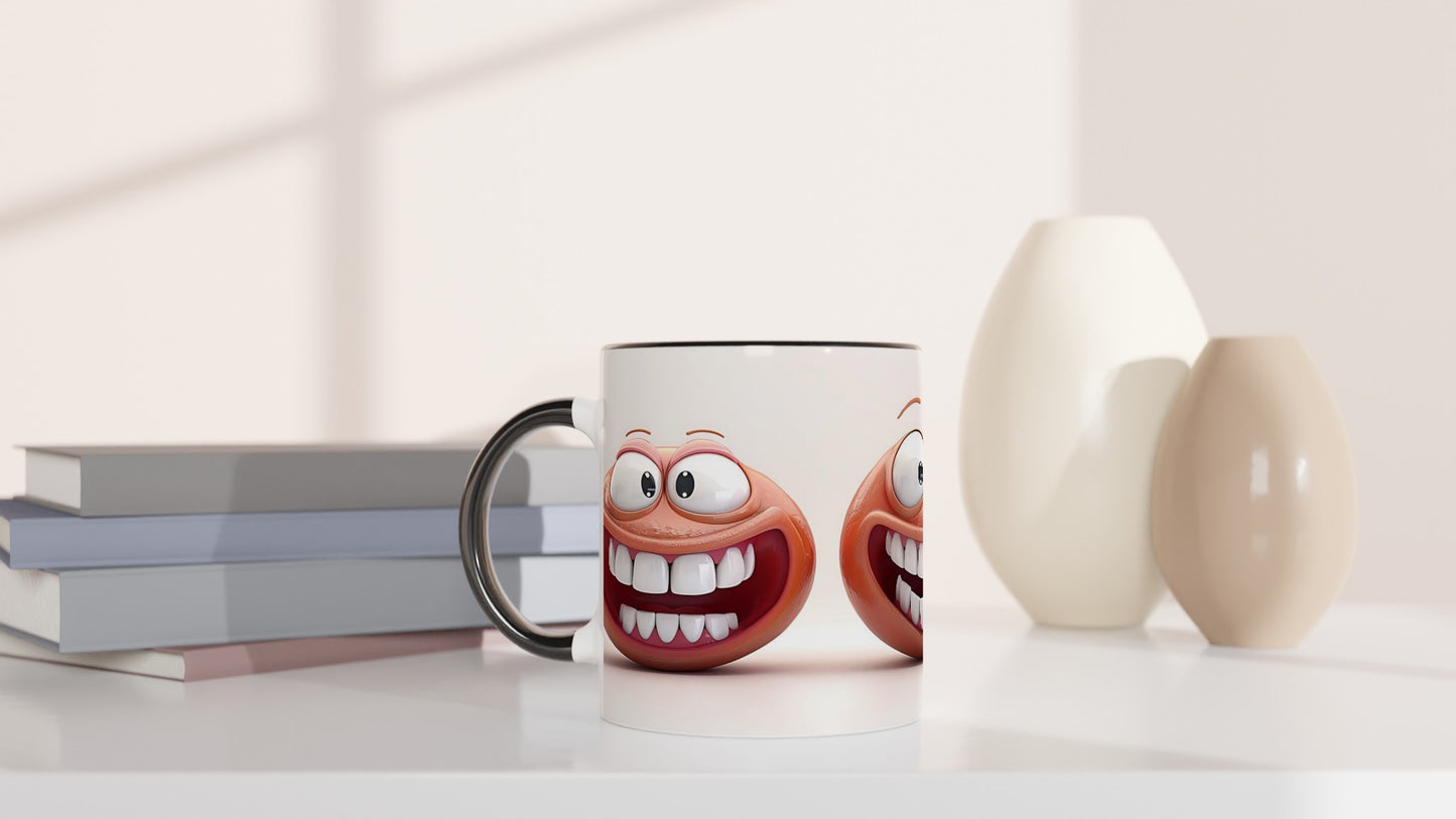 Funny Face Emoji Coffee Mug with Goofy Grin Expressions