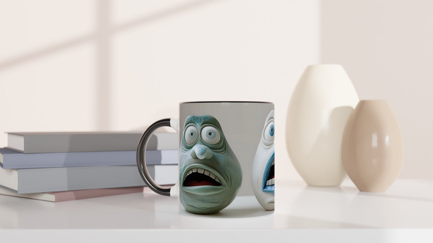 Funny Face Expression Ceramic Mug - Quirky Emotional Characters Design