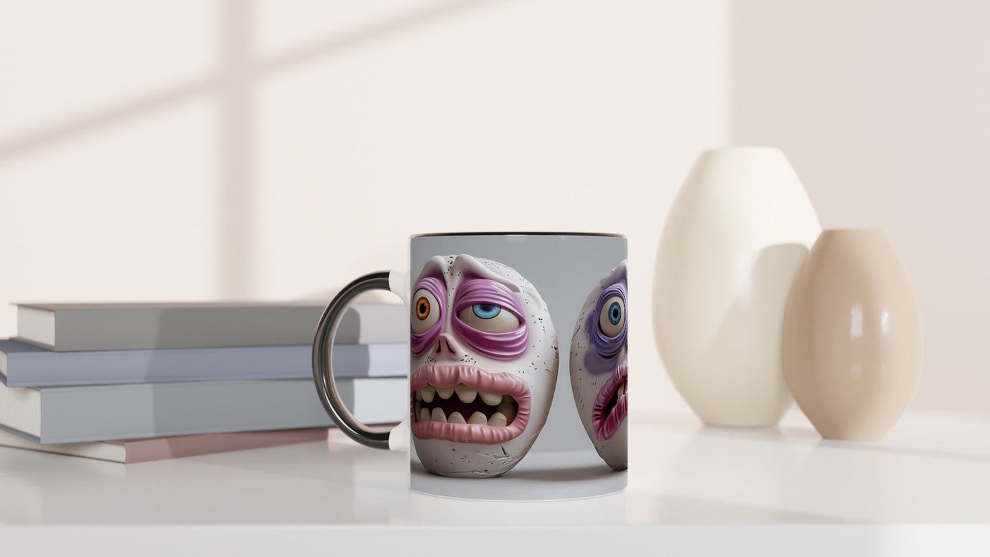 Funny Face Expression Ceramic Mug - Quirky Monster Faces Art Design