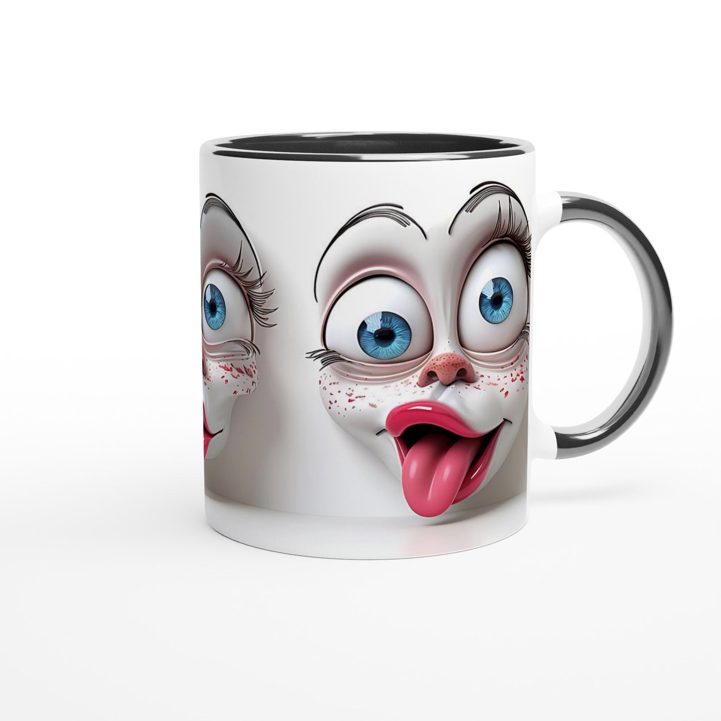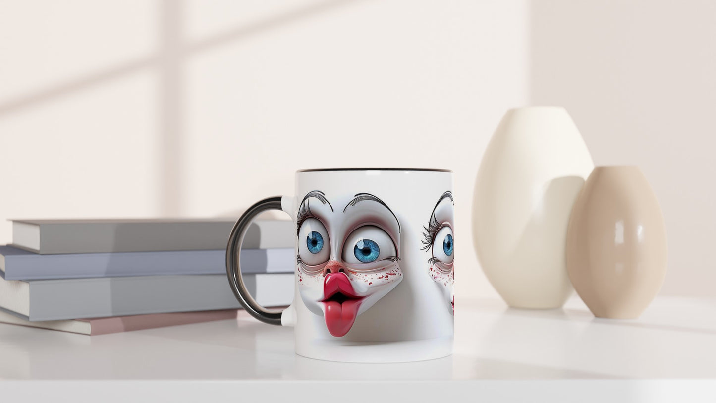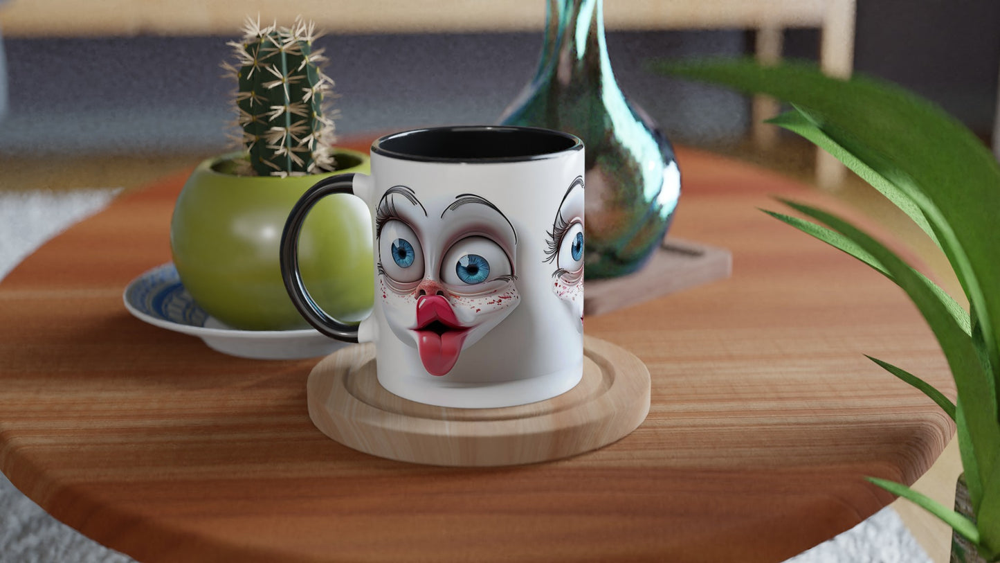 Funny Face Expression Coffee Mug - Cute Cartoon Eyes & Tongue Design