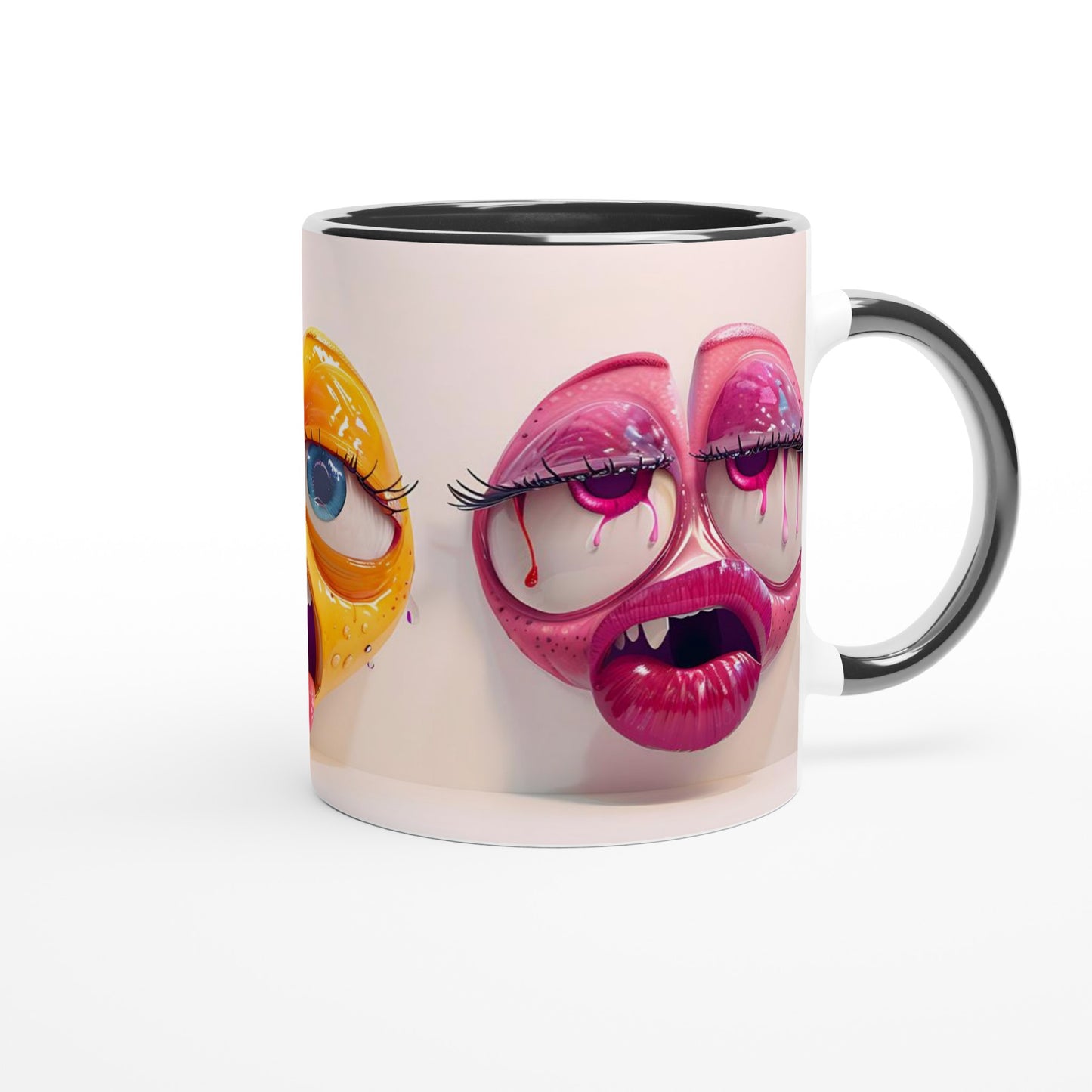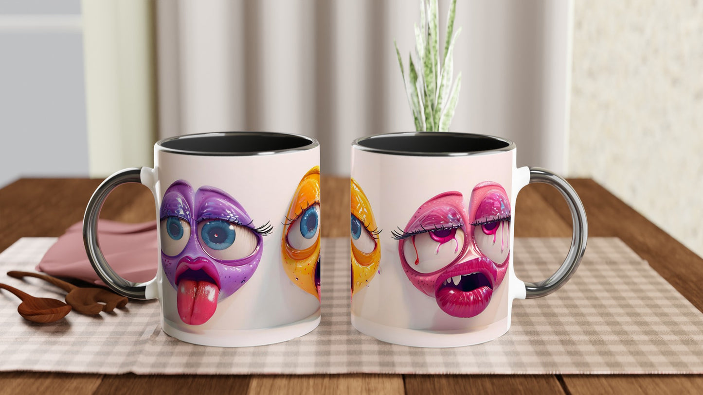 Funny Face Expression Mug - Colorful Cartoon Eyes & Lips Design