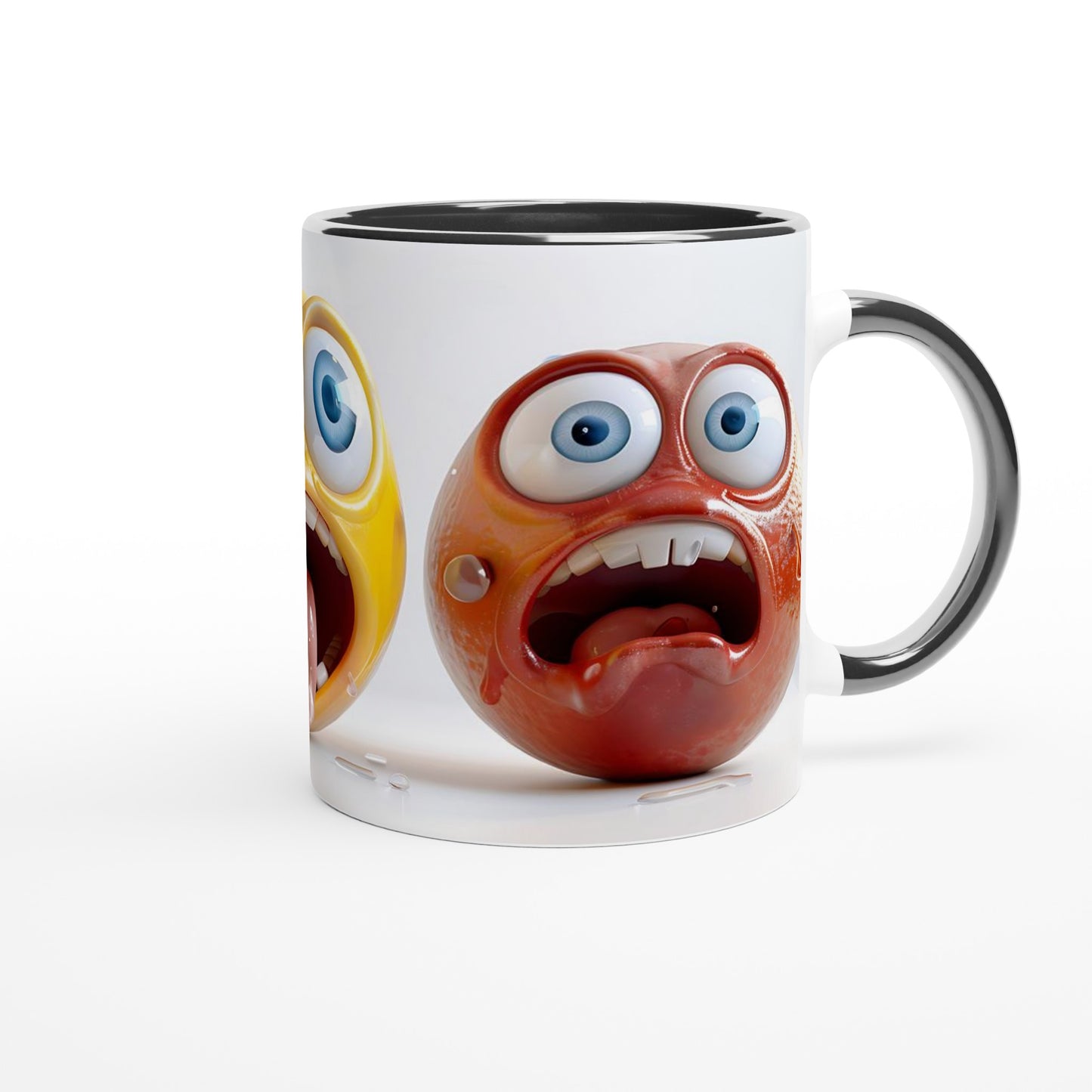 This beautiful ceramic mug is perfect for any event of the day. Your morning coffee, a hot chocolate, or any other hot beverage you enjoy. The mug is glossy white with a colored rim, inside, and handle. The prints come out beautifully and vividly on it. The print retains its quality and luster when used in both microwaves and the dishwasher.