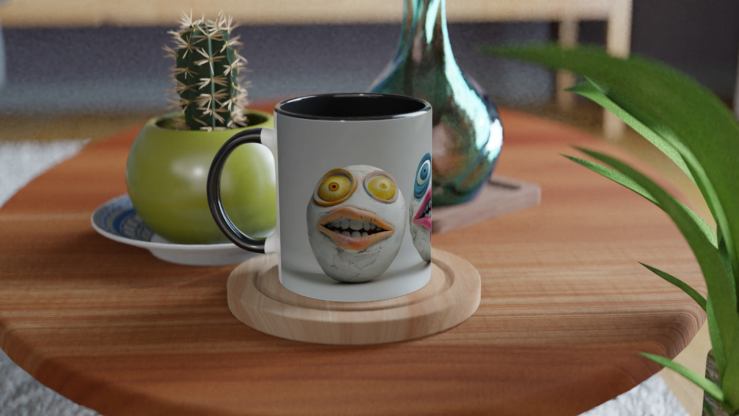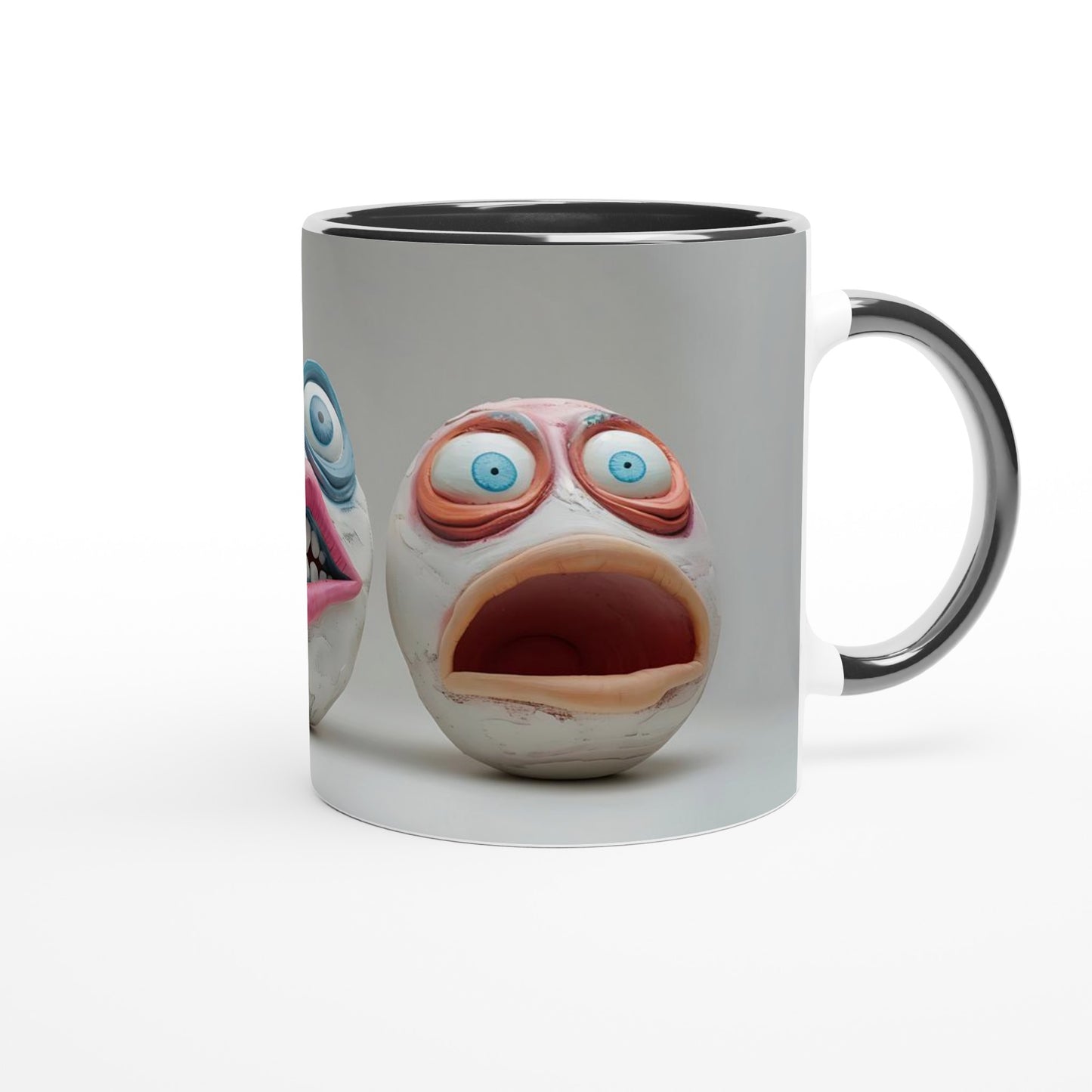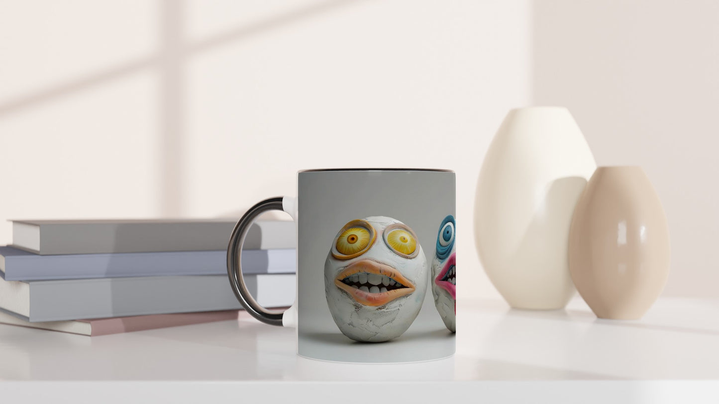 Funny Faces Ceramic Mug - Quirky Expressive Egg Characters Design