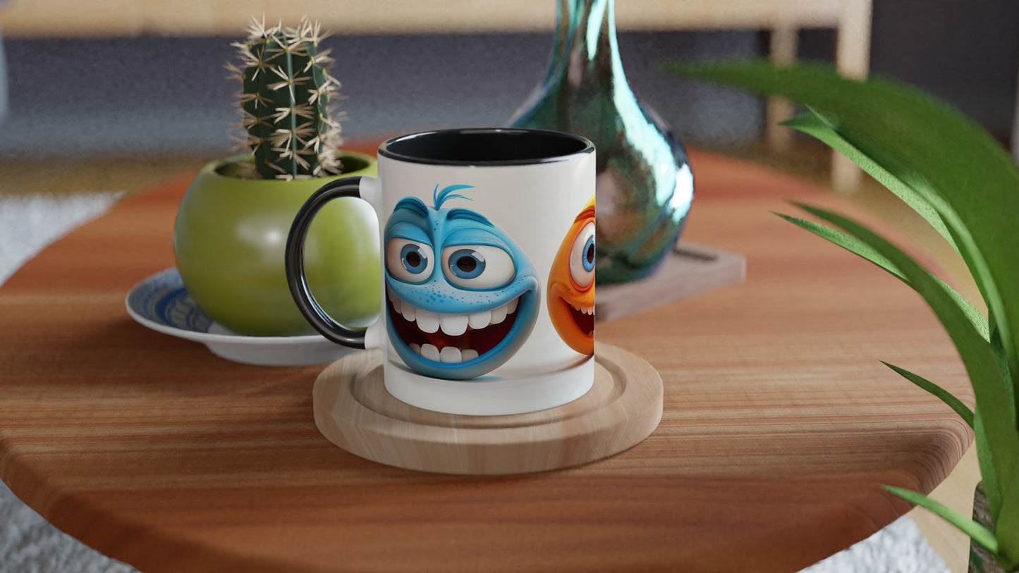 Funny Happy Face Coffee Mug - Colorful Emoji Characters Smiling Design