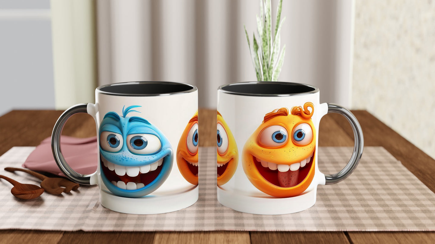 Add some joy to your coffee break with these adorable cartoon character faces! Features three expressive emoji-style characters in vibrant blue and orange shades, each with unique personality-filled smiles and big googly eyes. Perfect for anyone who loves whimsical, cheerful designs that bring a smile to your day
