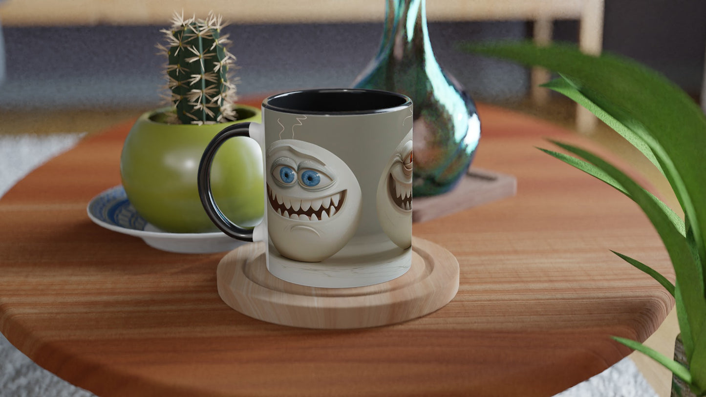 Funny Monster Face Coffee Mug - Grinning Halloween Characters Ceramic Cup