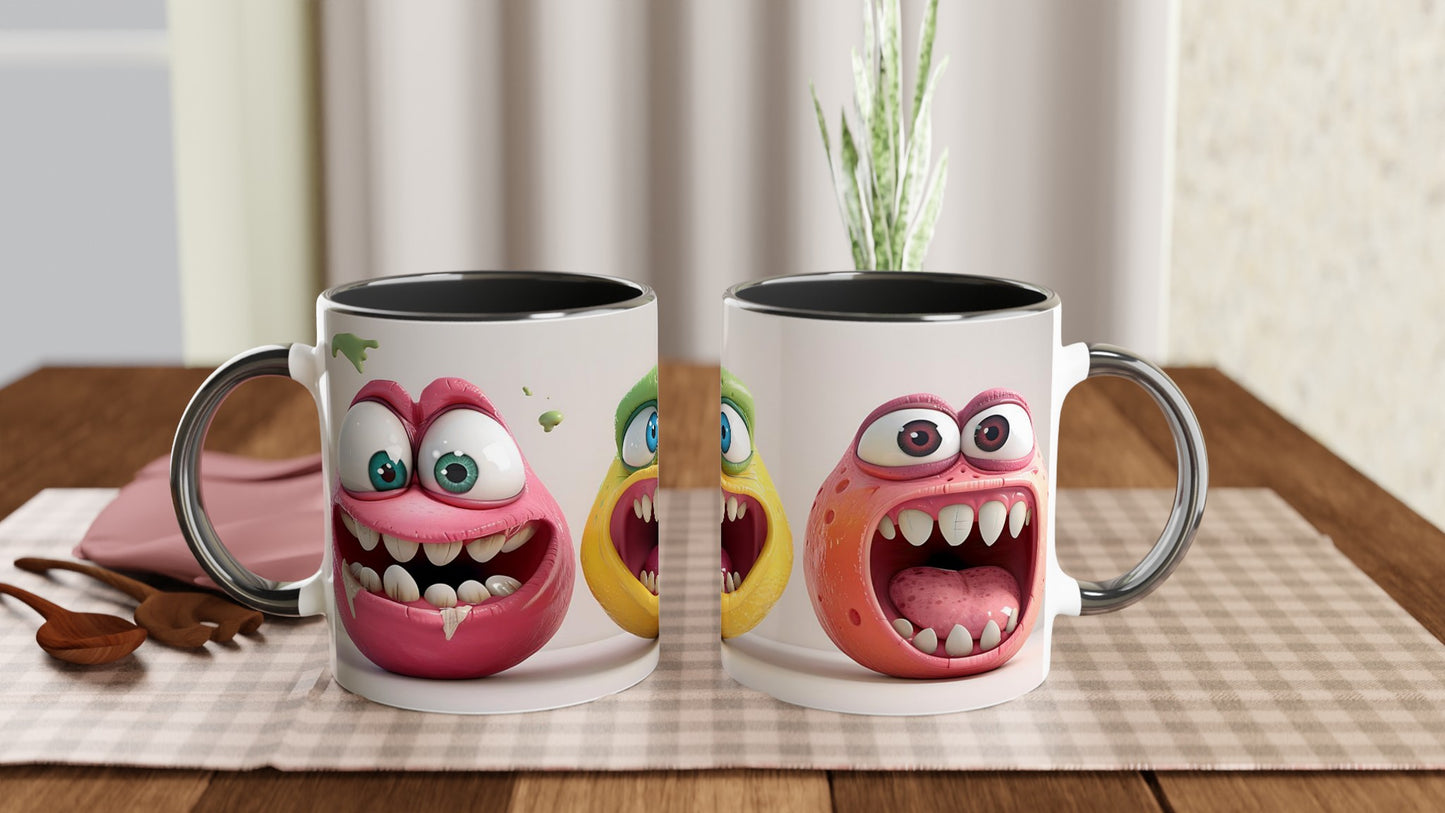 Funny Monster Face Mug - Cute Cartoon Character Design with Big Teeth