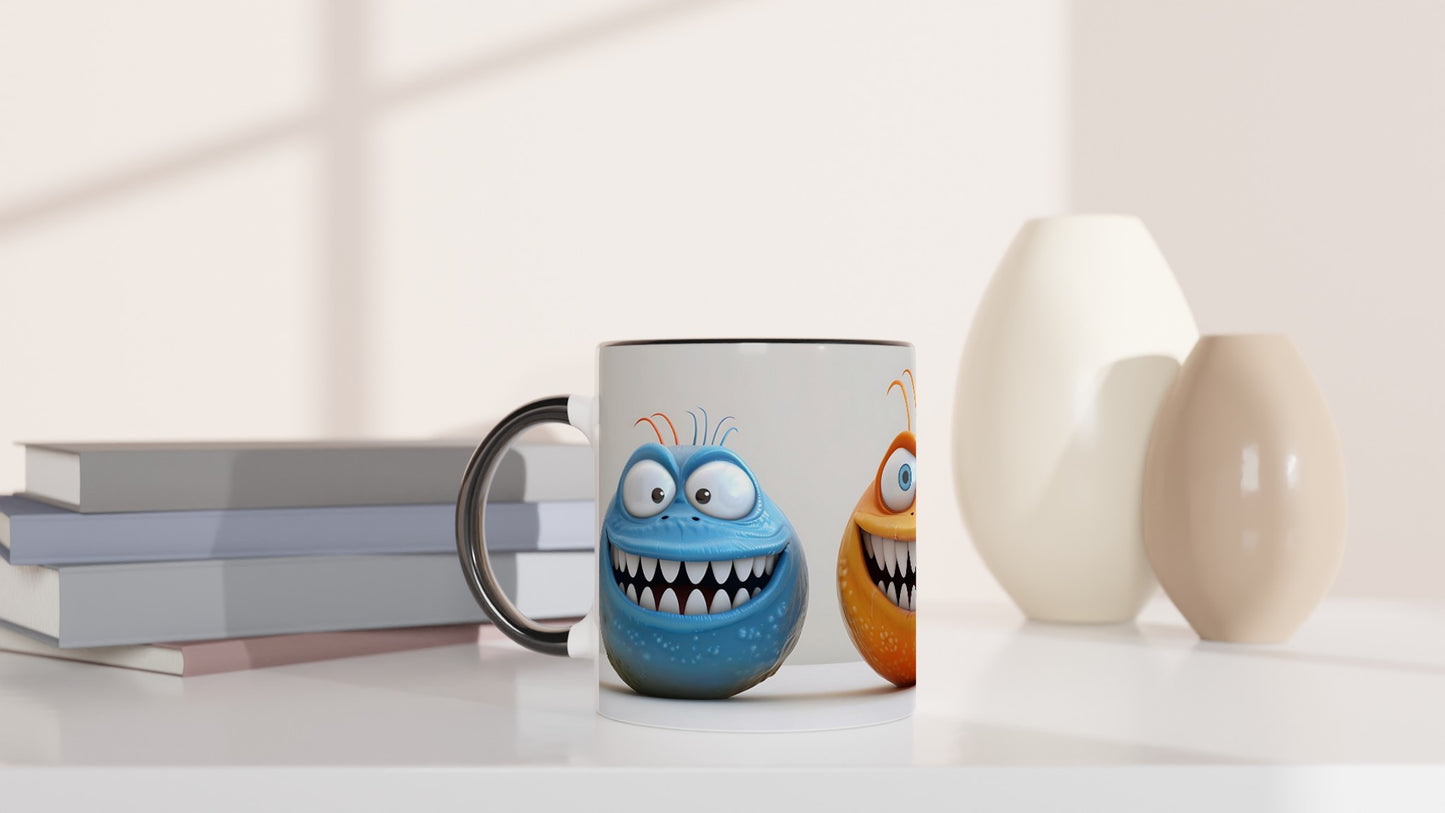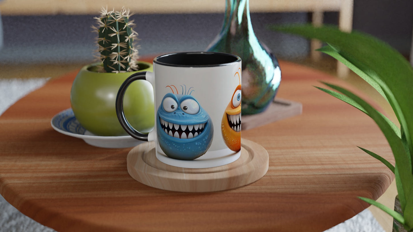 Funny Monster Faces Coffee Mug - Colorful Goofy Characters Design