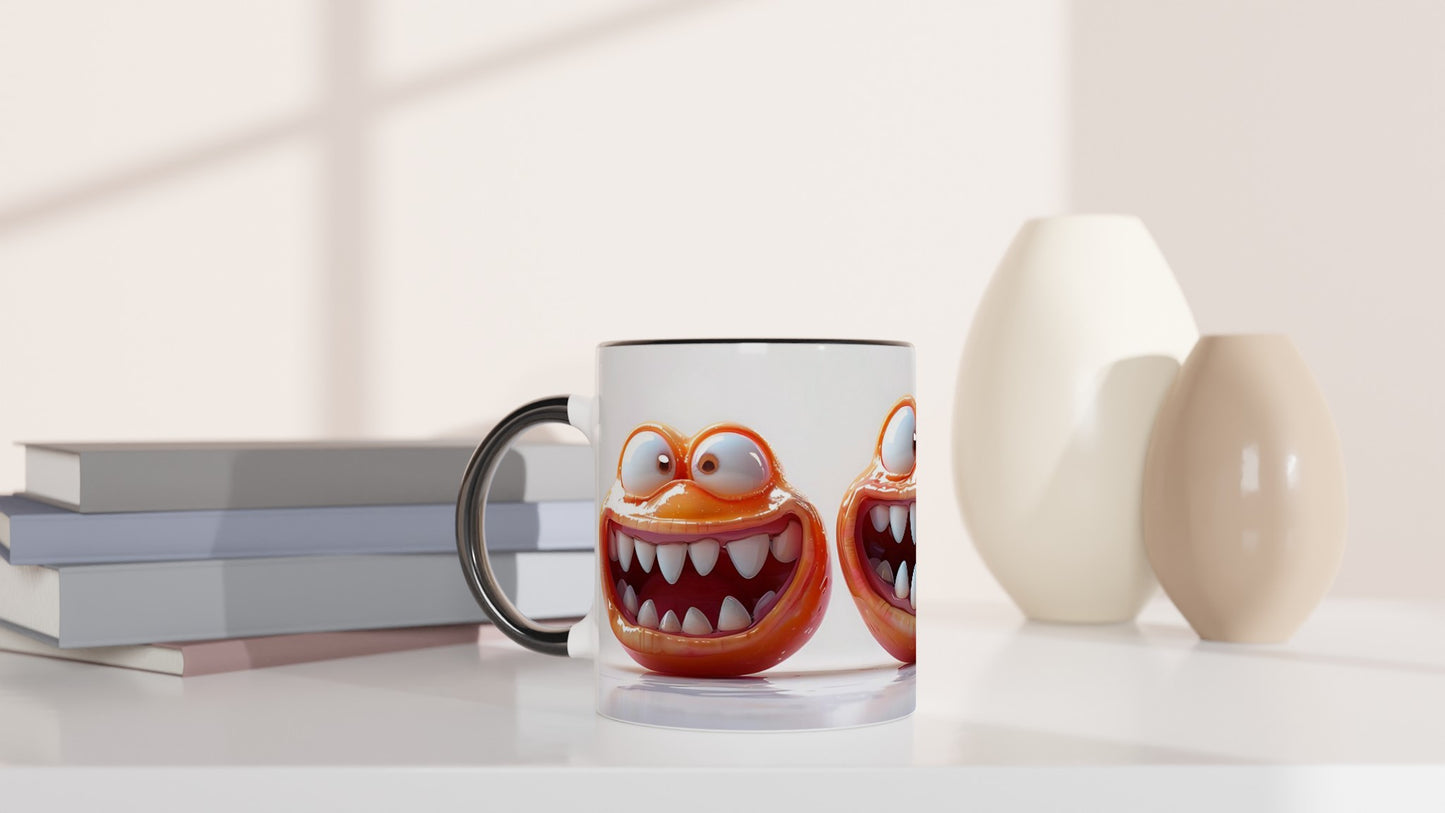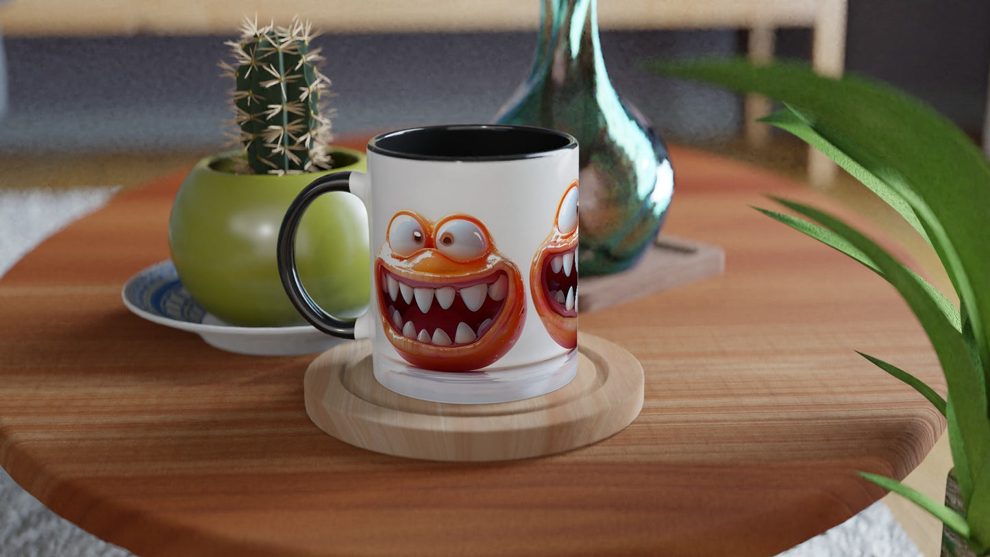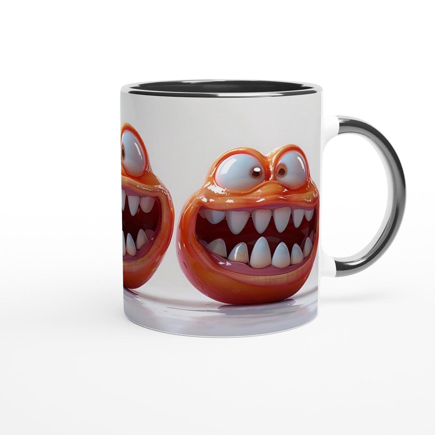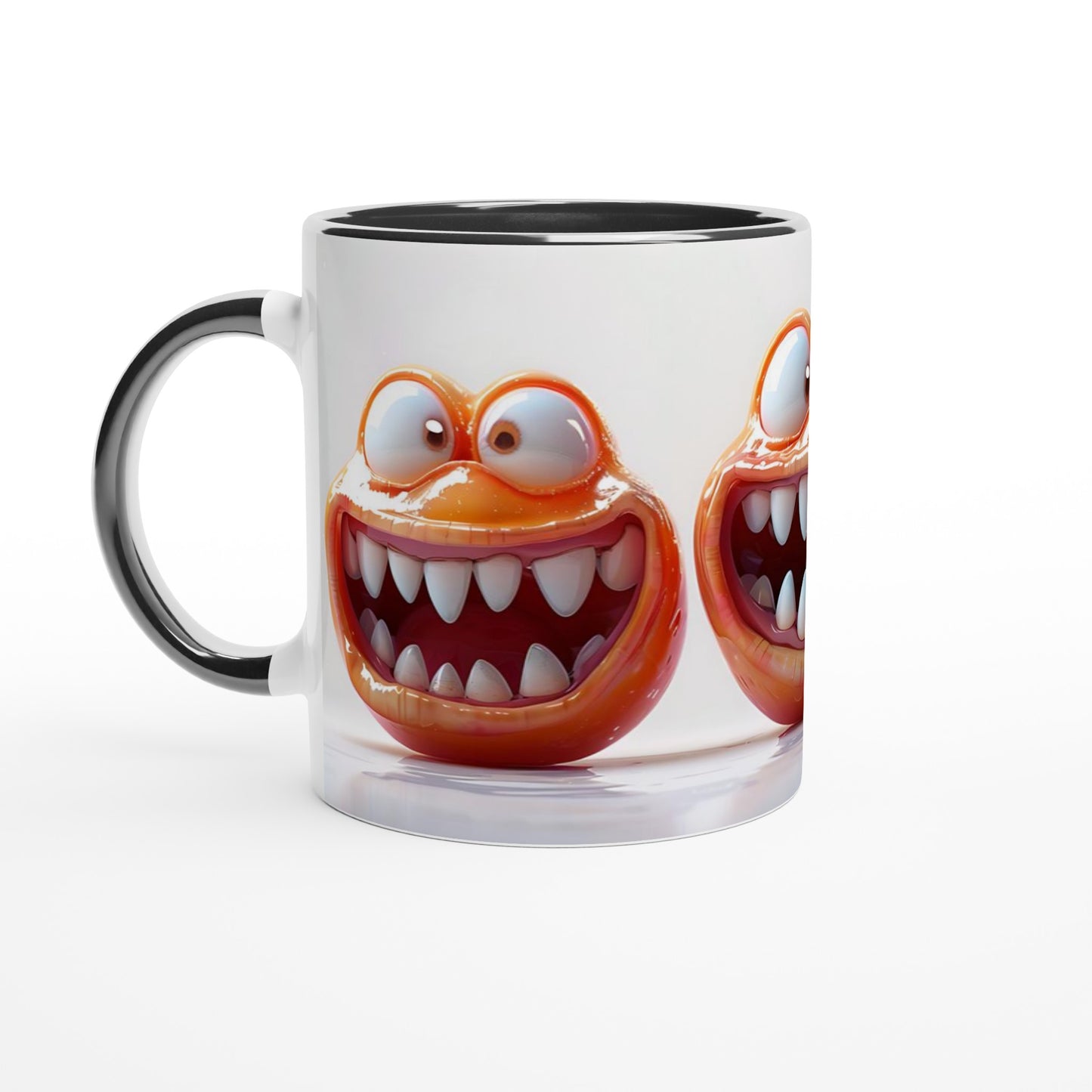 Funny Orange Monster Face Coffee Mug - Goofy Teeth Grin Design