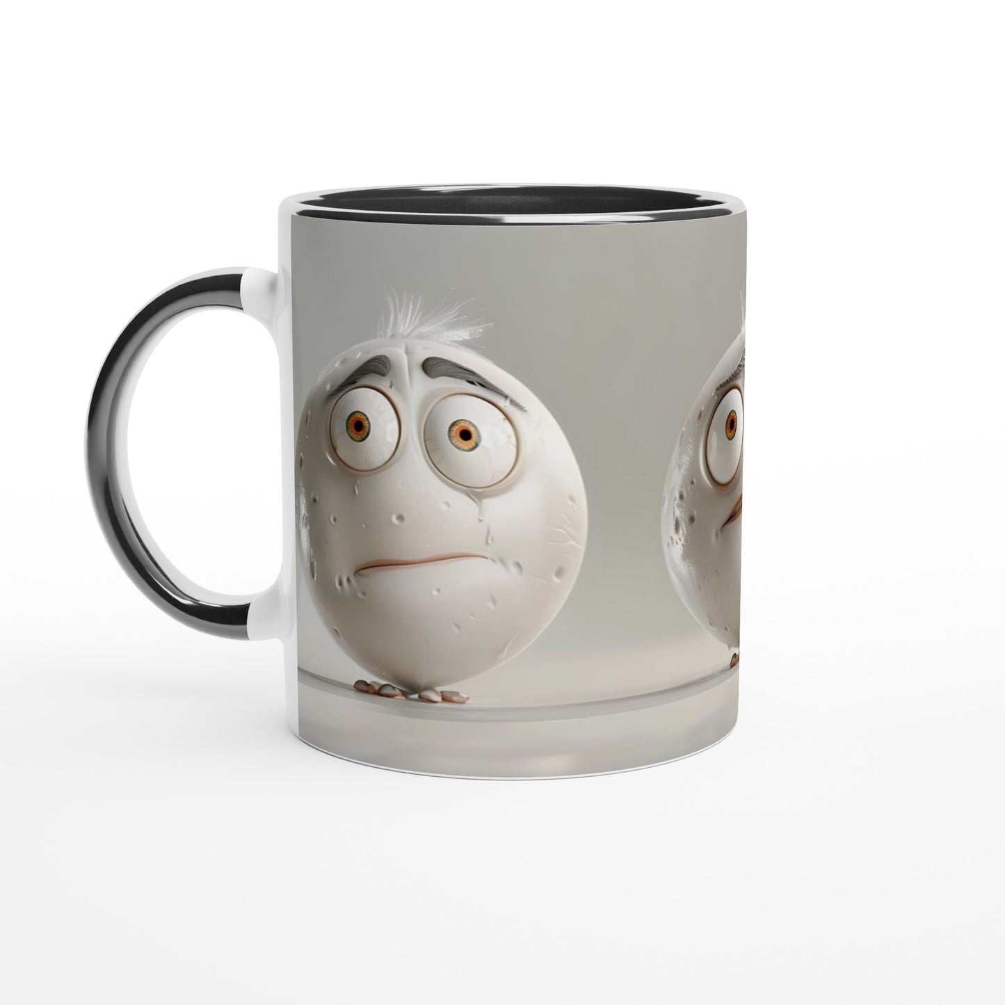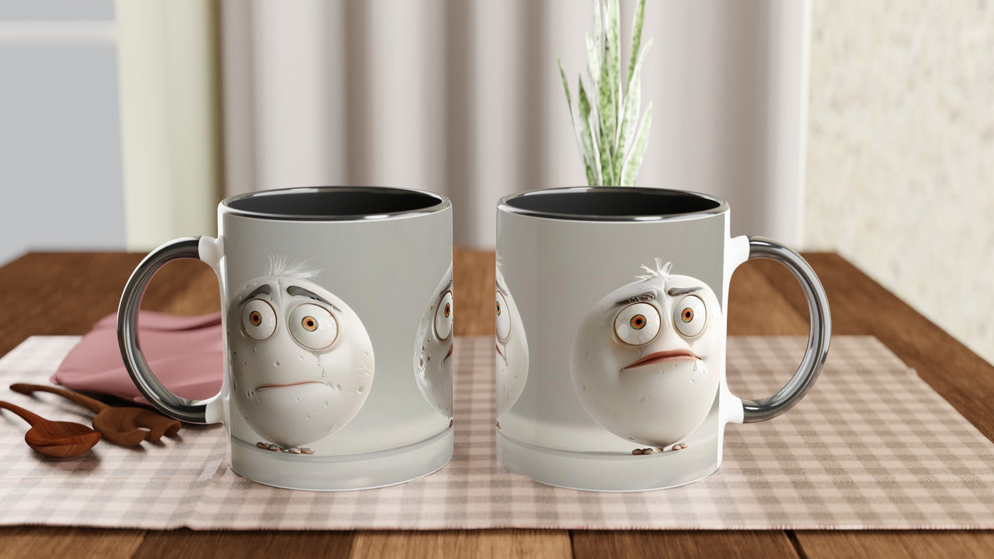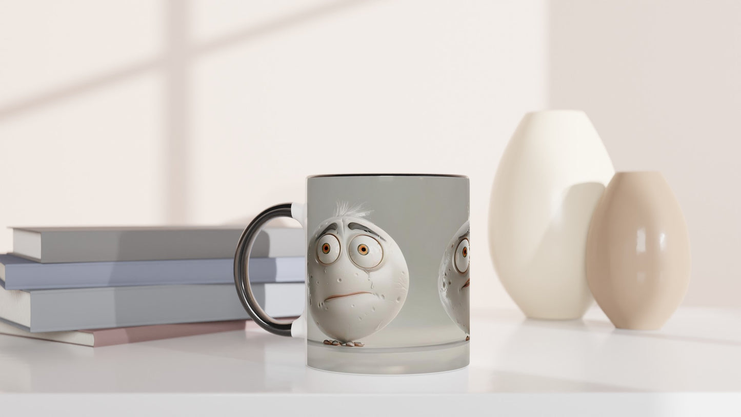This beautiful ceramic mug is perfect for any event of the day. Your morning coffee, a hot chocolate, or any other hot beverage you enjoy. The mug is glossy white with a colored rim, inside, and handle. The prints come out beautifully and vividly on it. The print retains its quality and luster when used in both microwaves and the dishwasher.