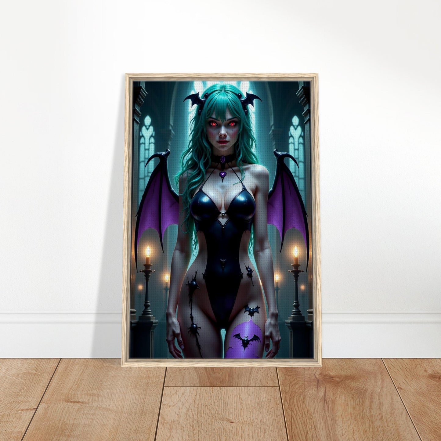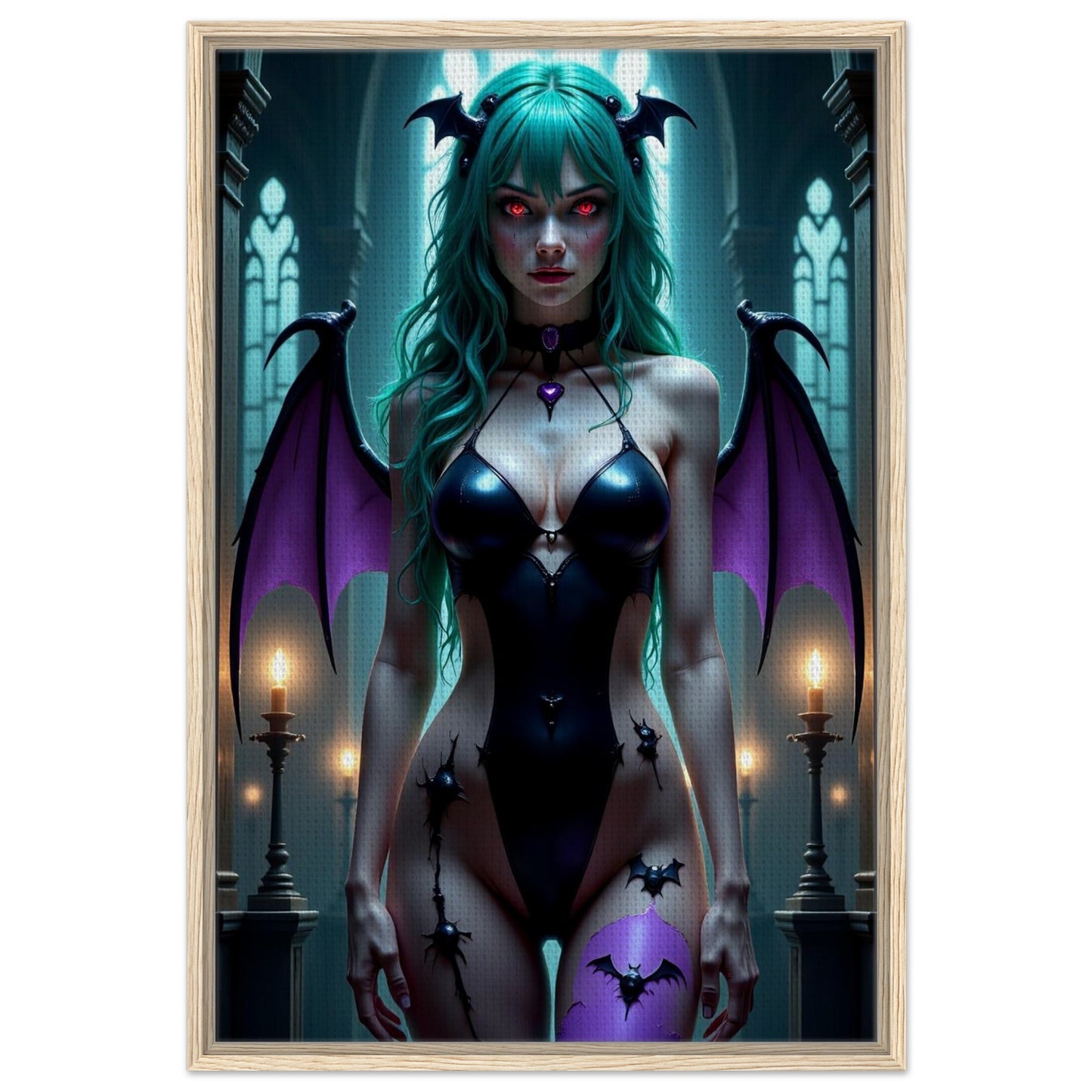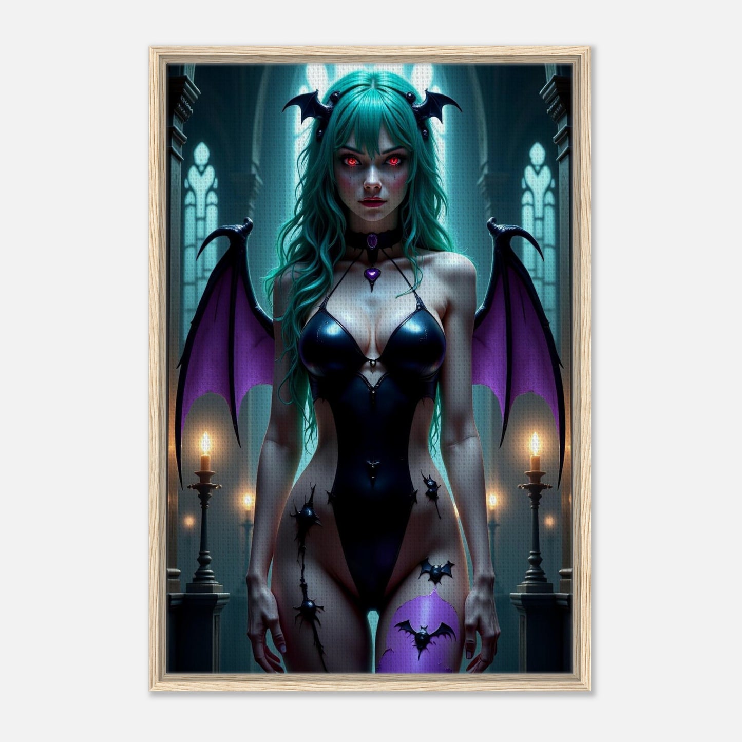 Morrigan Aensland Queen Framed Canvas Wall Art - Dark Fantasy Digital Art
