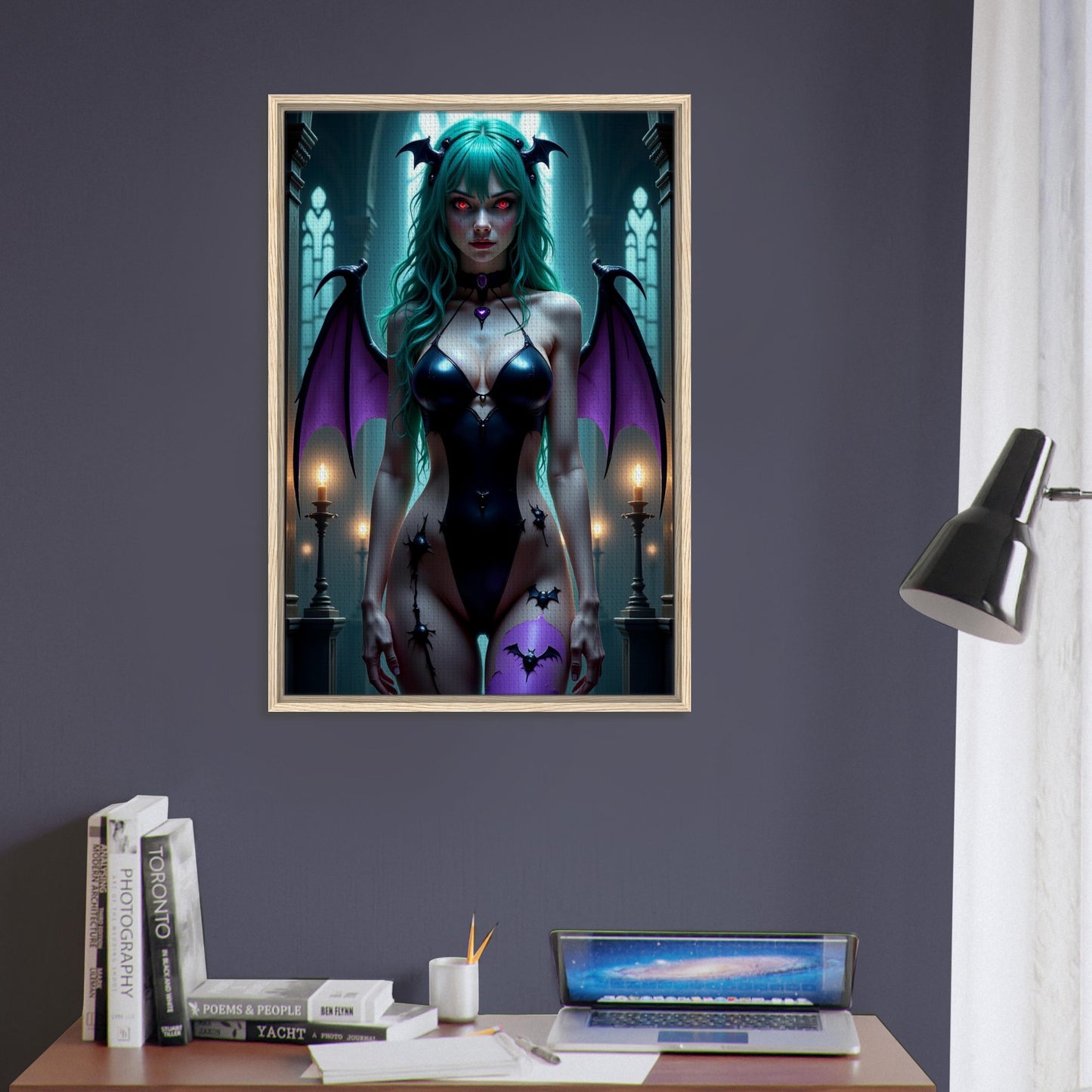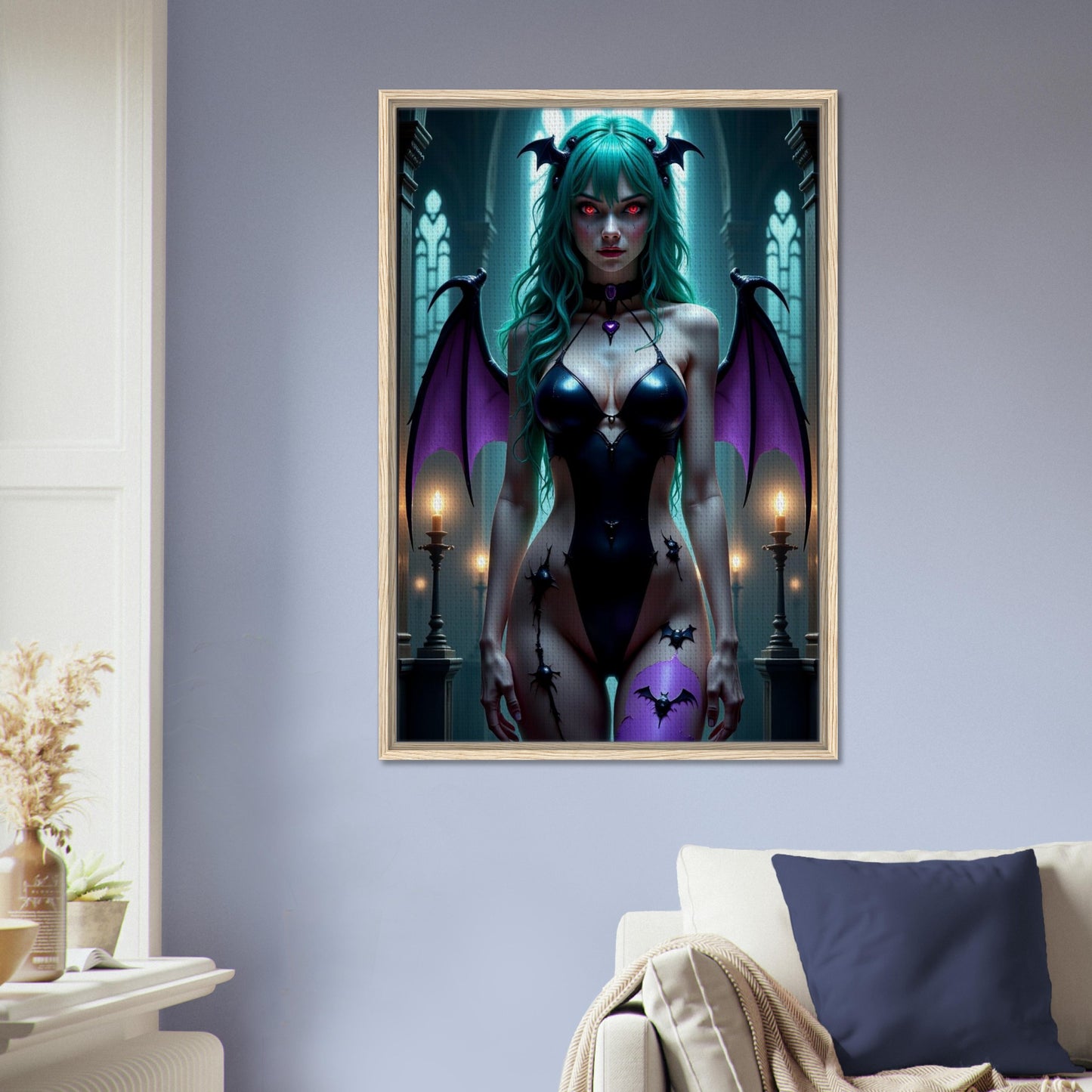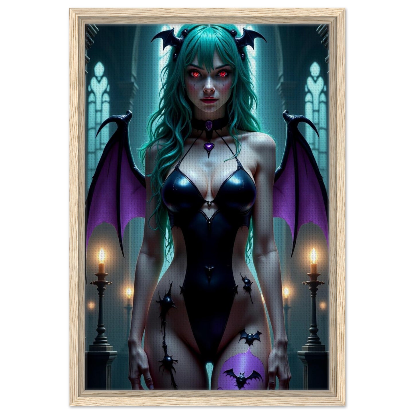 Morrigan Aensland Queen Framed Canvas Wall Art - Dark Fantasy Digital Art