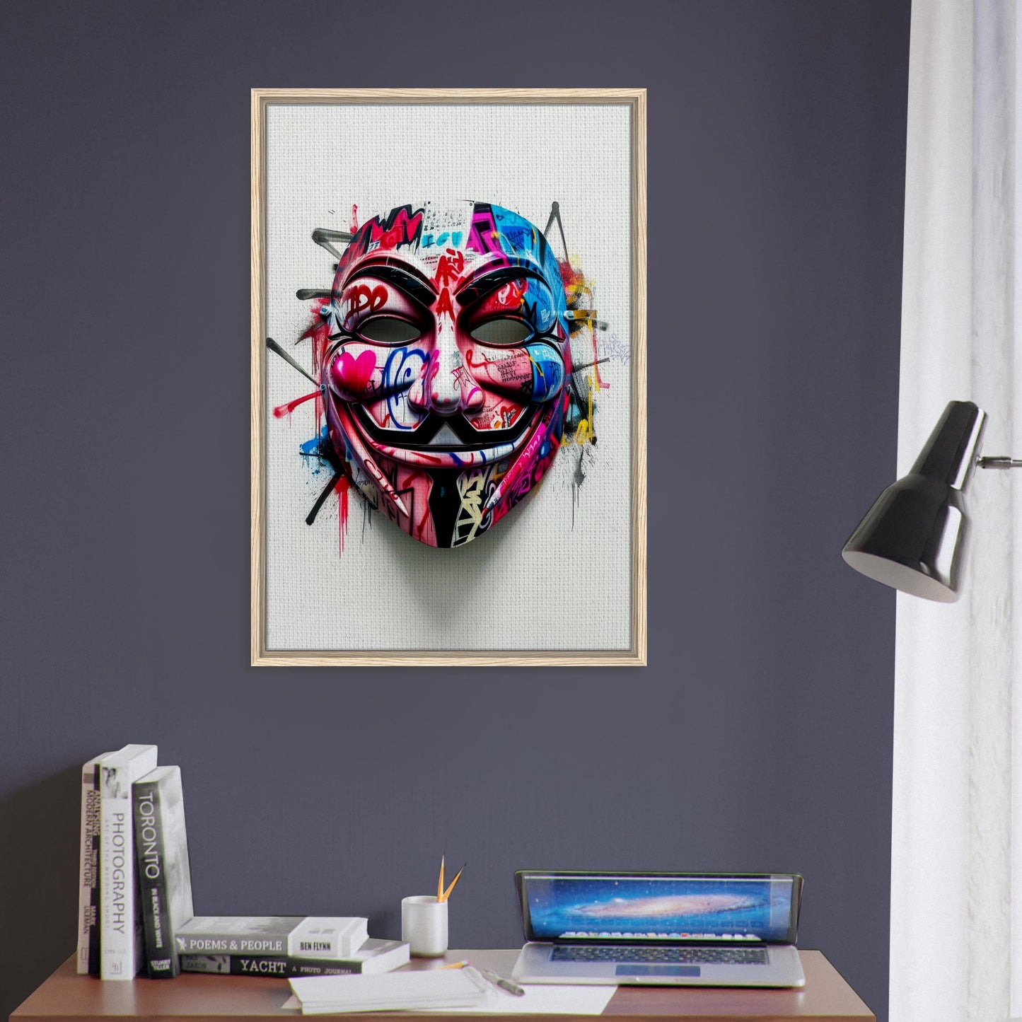 Graffiti Anonymous Mask Framed Canvas Wall Art - Street Art Urban Design