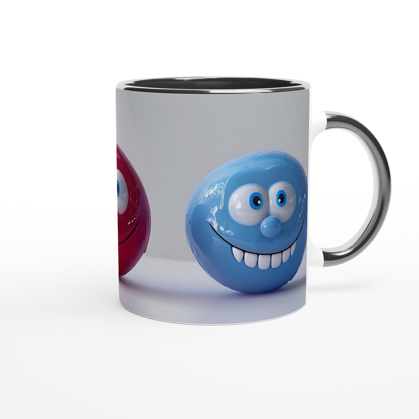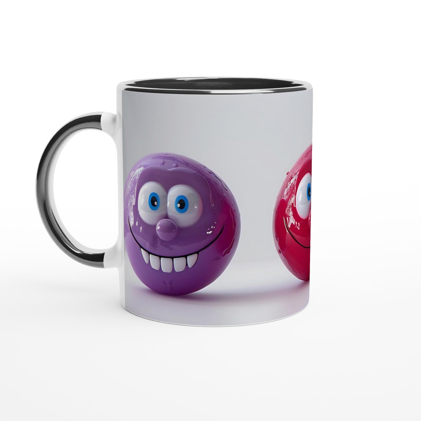Add a splash of joy to your morning with these cheerful smiling faces! Features three vibrant spherical characters in purple, red, and blue with adorable googly eyes and wide, playful grins. Perfect for anyone who loves whimsical, mood-lifting designs with a touch of humor