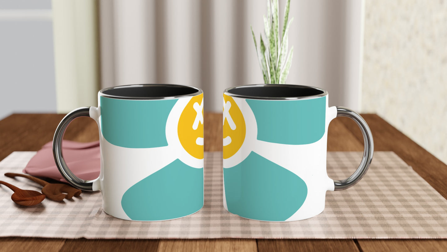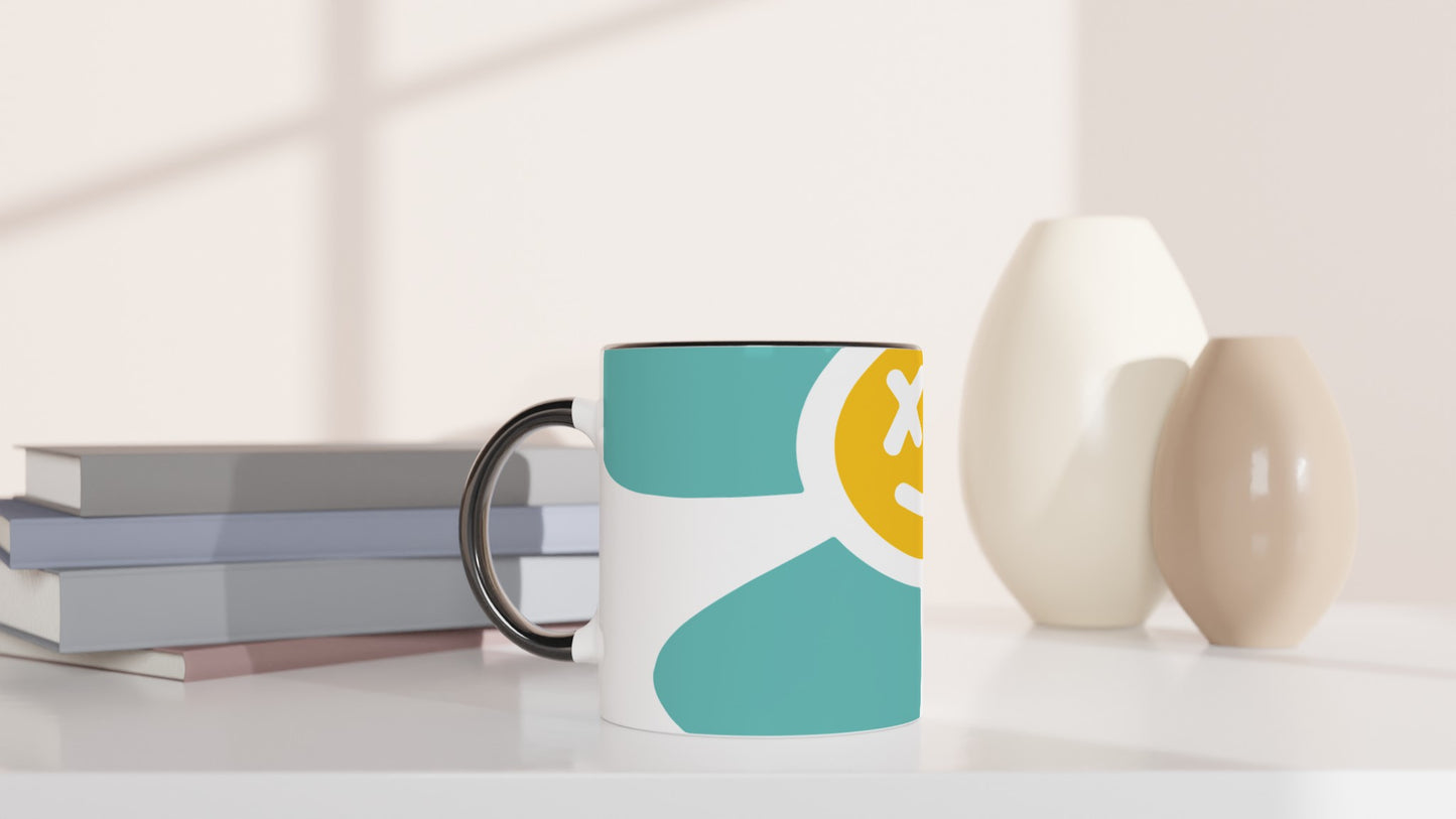 This beautiful ceramic mug is perfect for any event of the day. Your morning coffee, a hot chocolate, or any other hot beverage you enjoy. The mug is glossy white with a colored rim, inside, and handle. The prints come out beautifully and vividly on it. The print retains its quality and luster when used in both microwaves and the dishwasher.