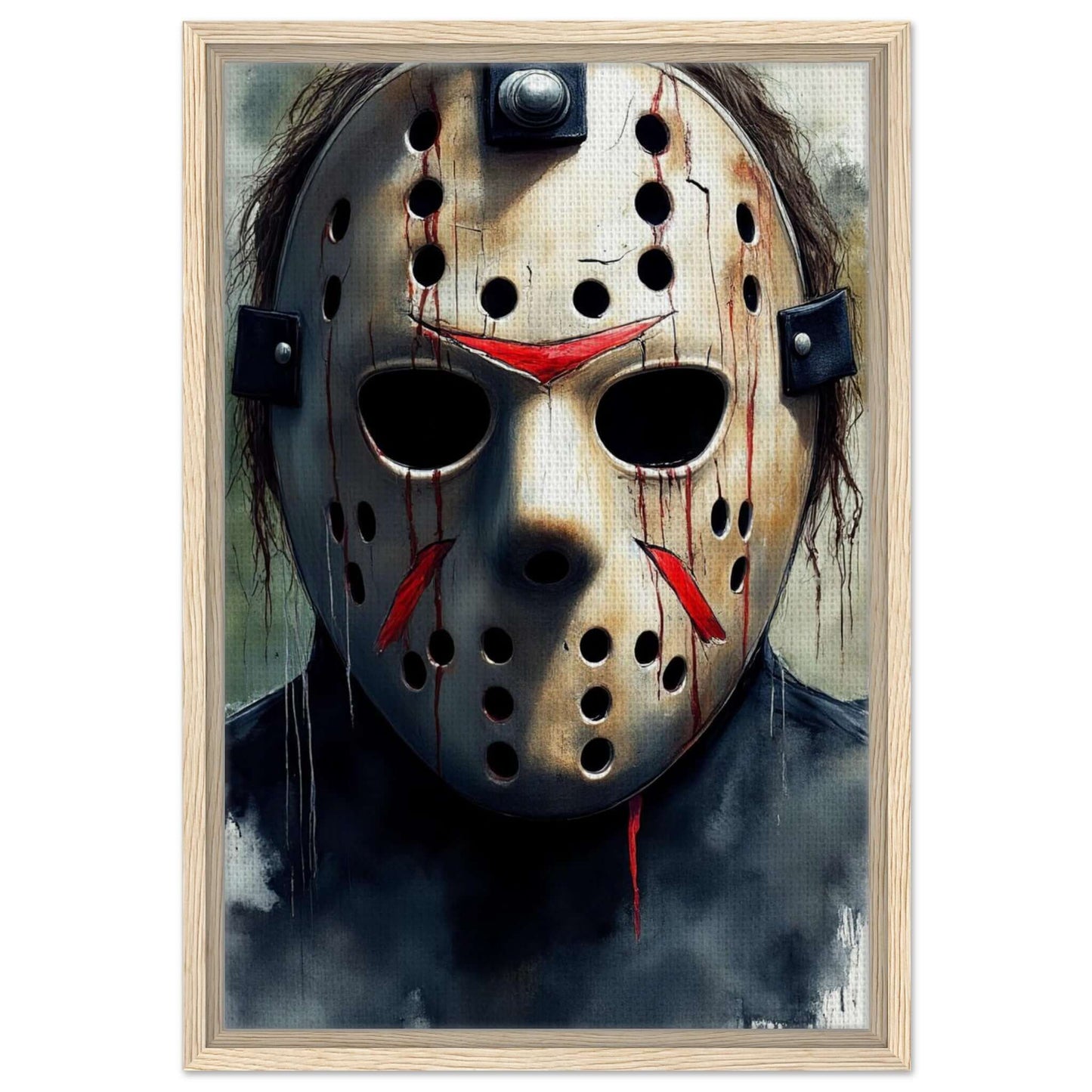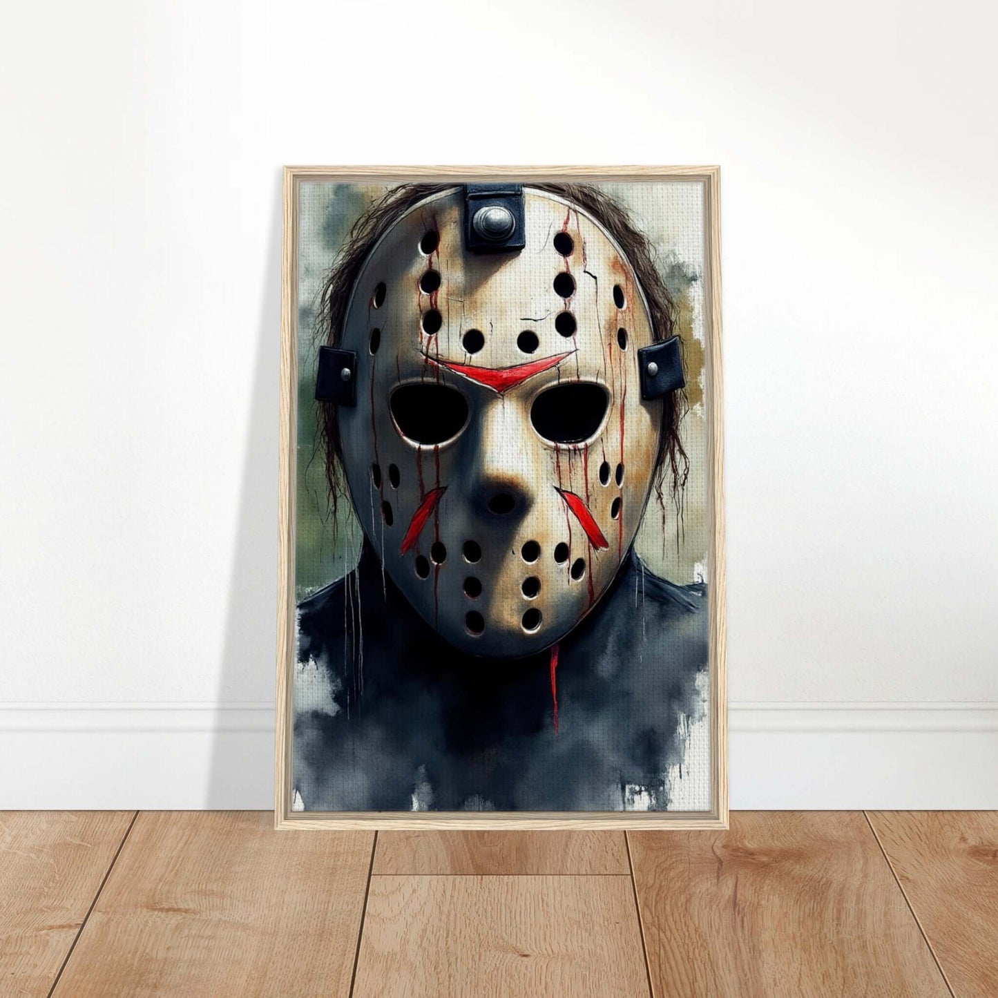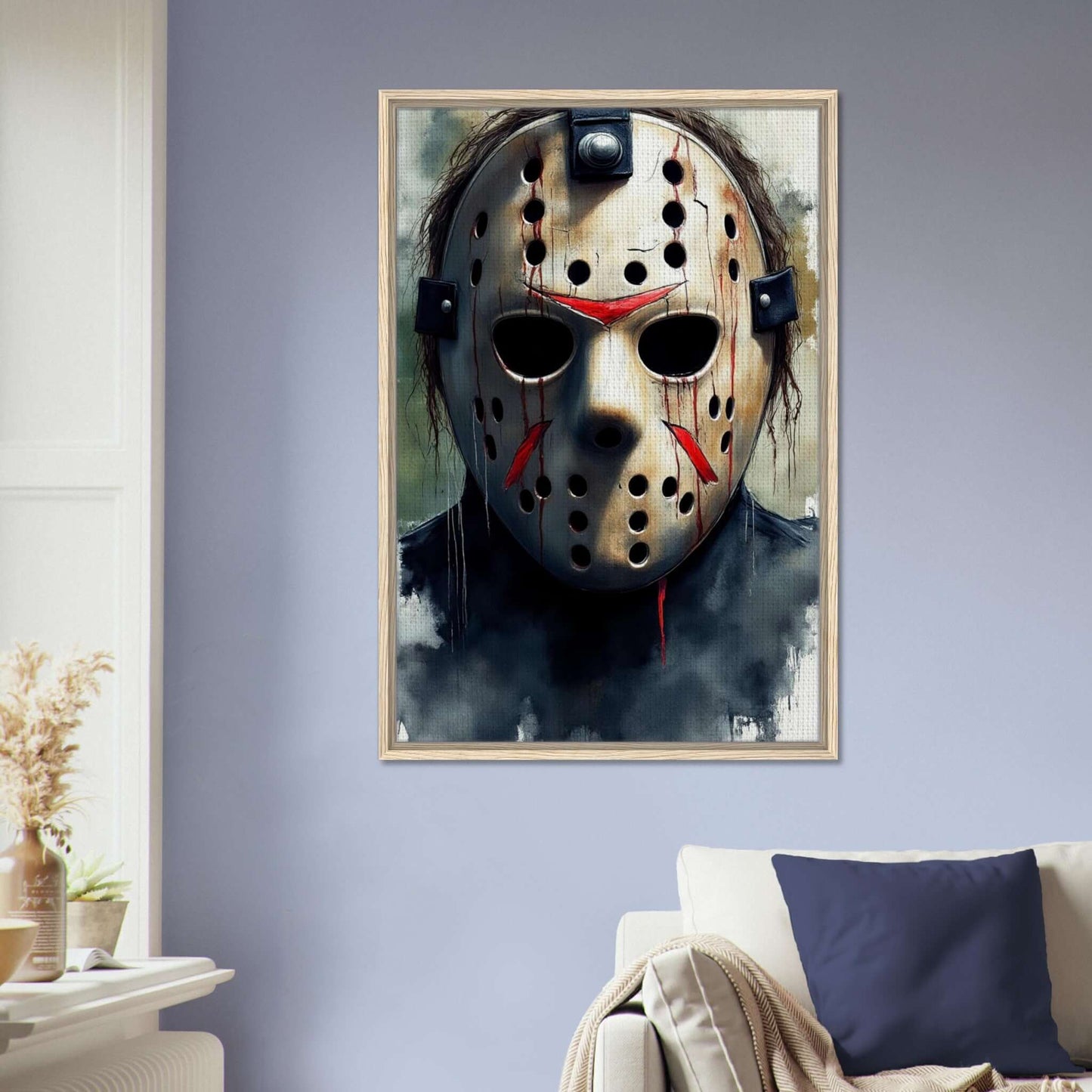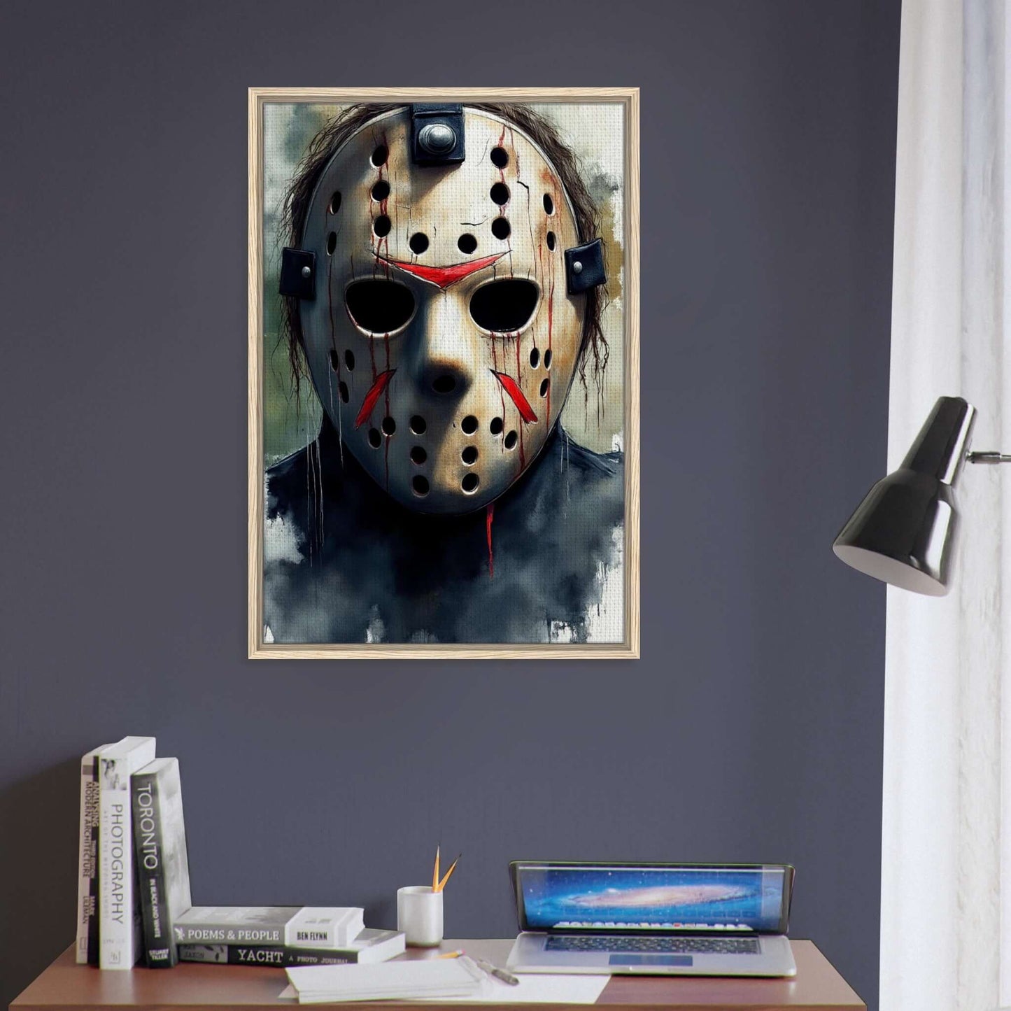 Jason Hockey Mask Horror Watercolor Framed Canvas Wall Art
