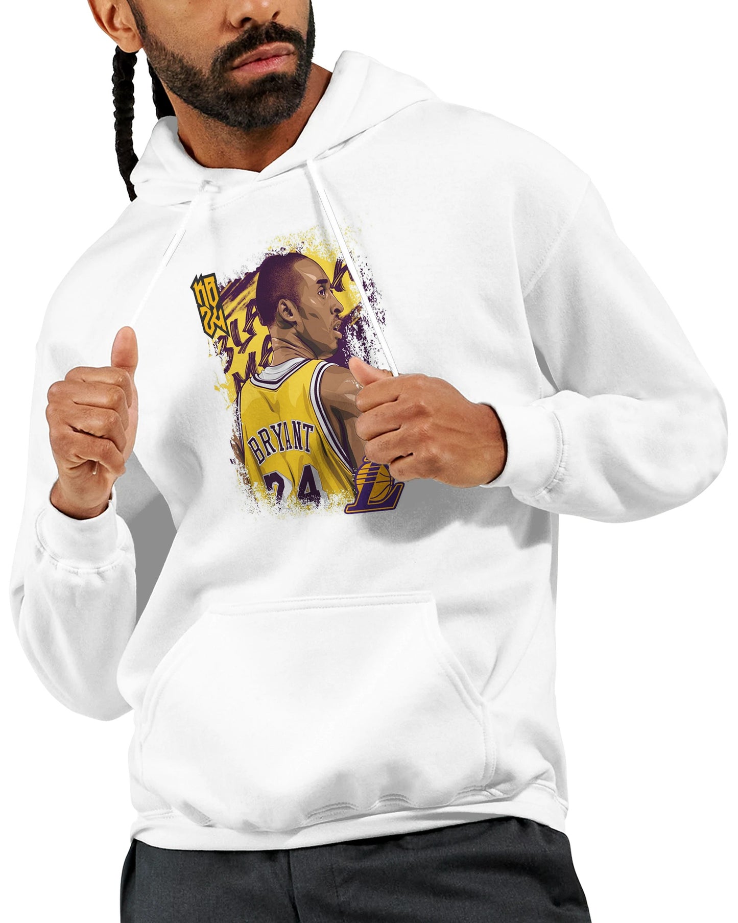 Bold artistic design featuring a basketball player in the iconic yellow Lakers jersey against a dynamic purple and gold splatter background. Features stylized graffiti-inspired elements and team logo, capturing the energy and spirit of LA basketball. Perfect for true fans of the game and sports art enthusiasts