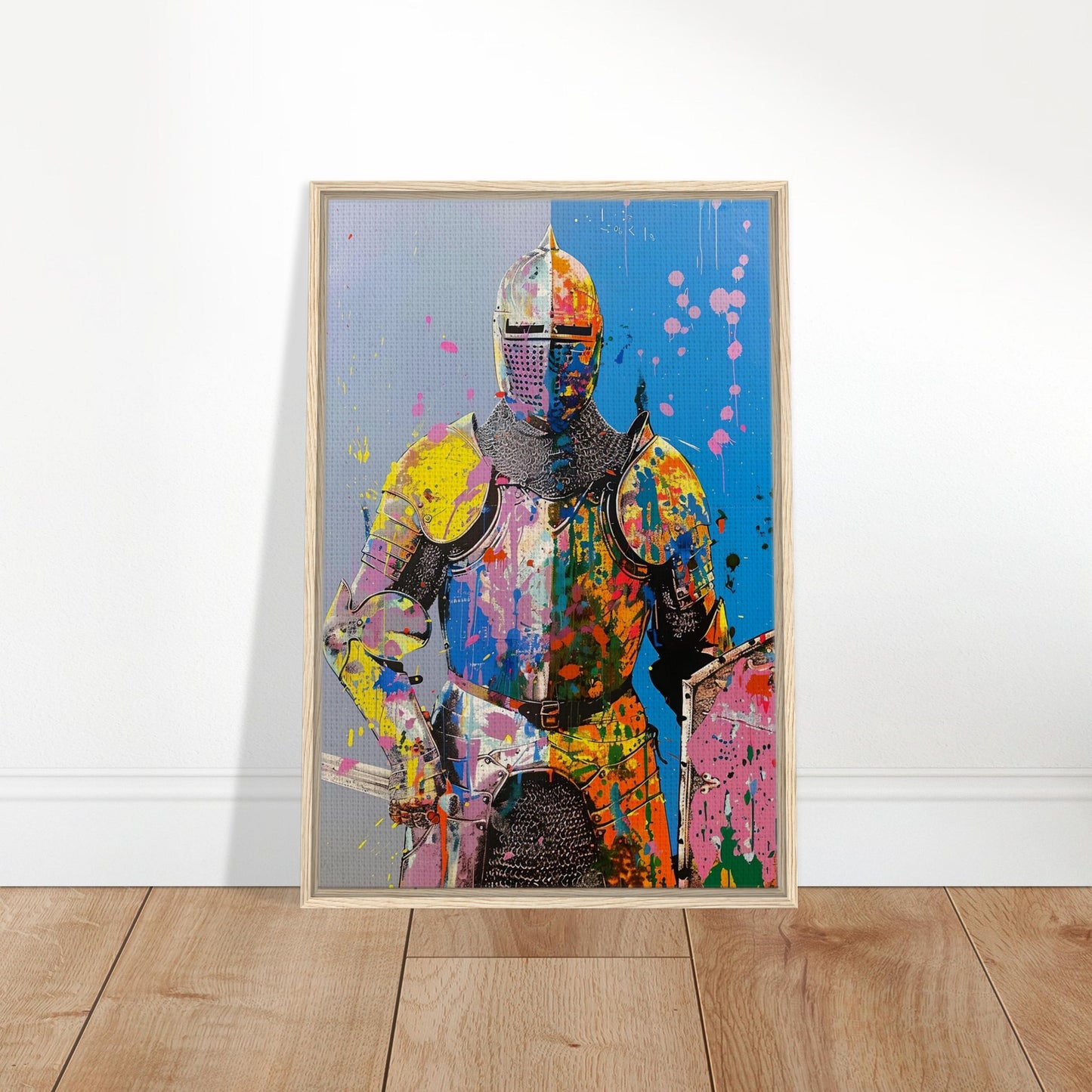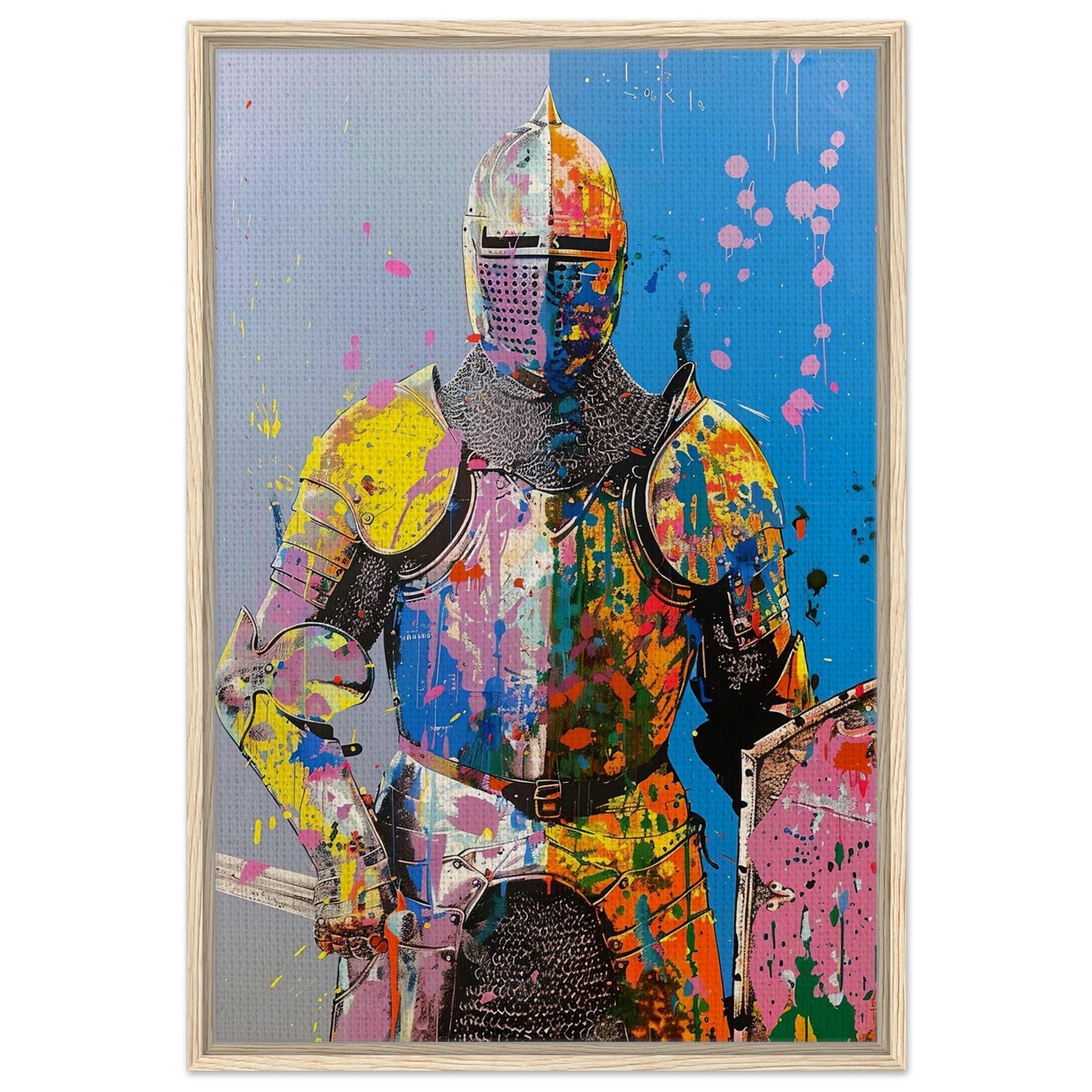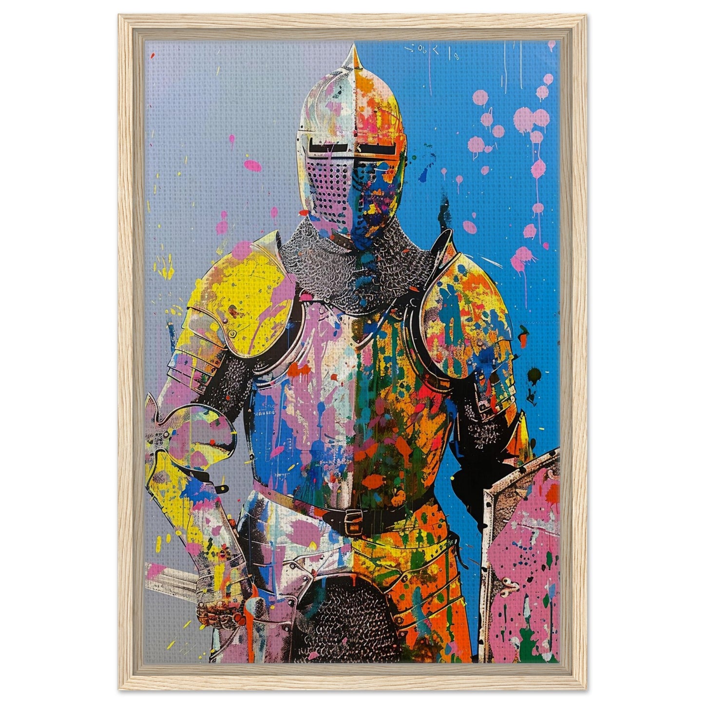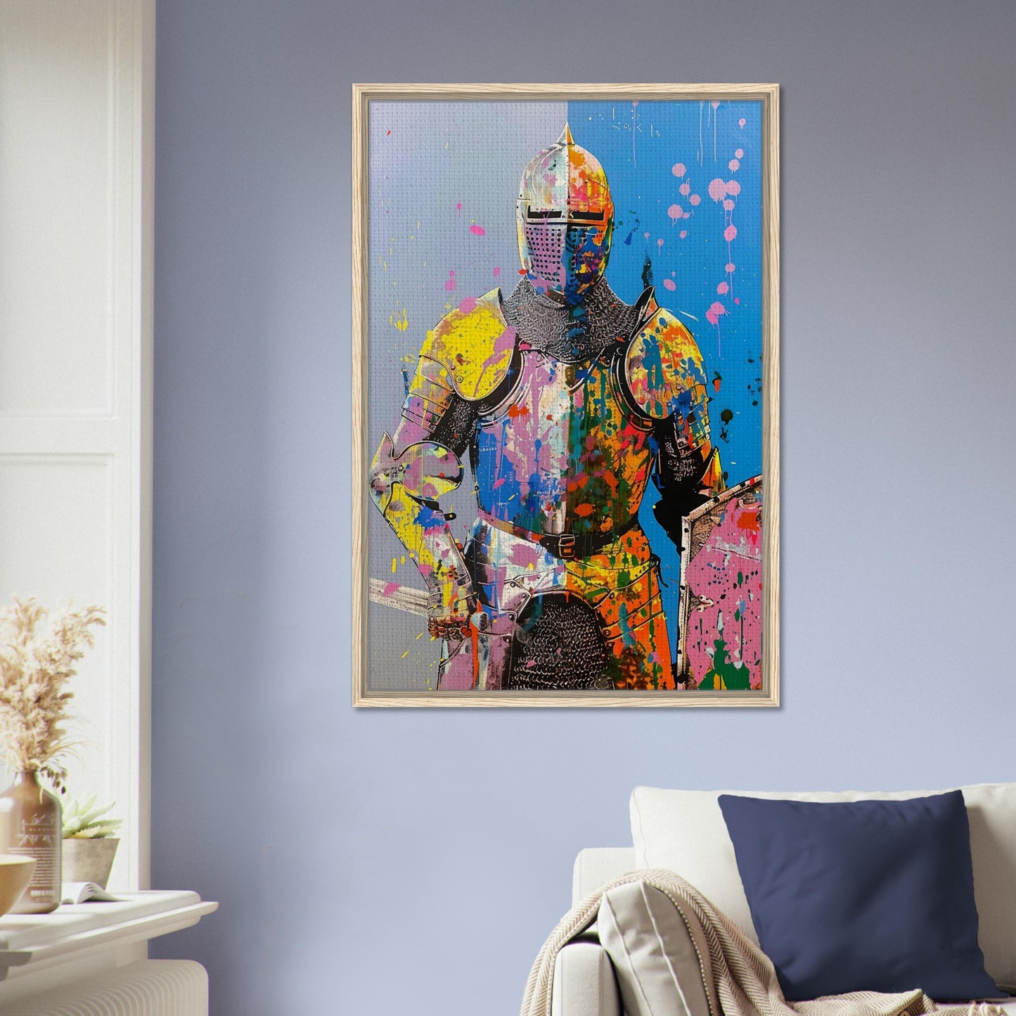 Medieval Knight Colorful Splatter Art Framed Canvas Wall Art
