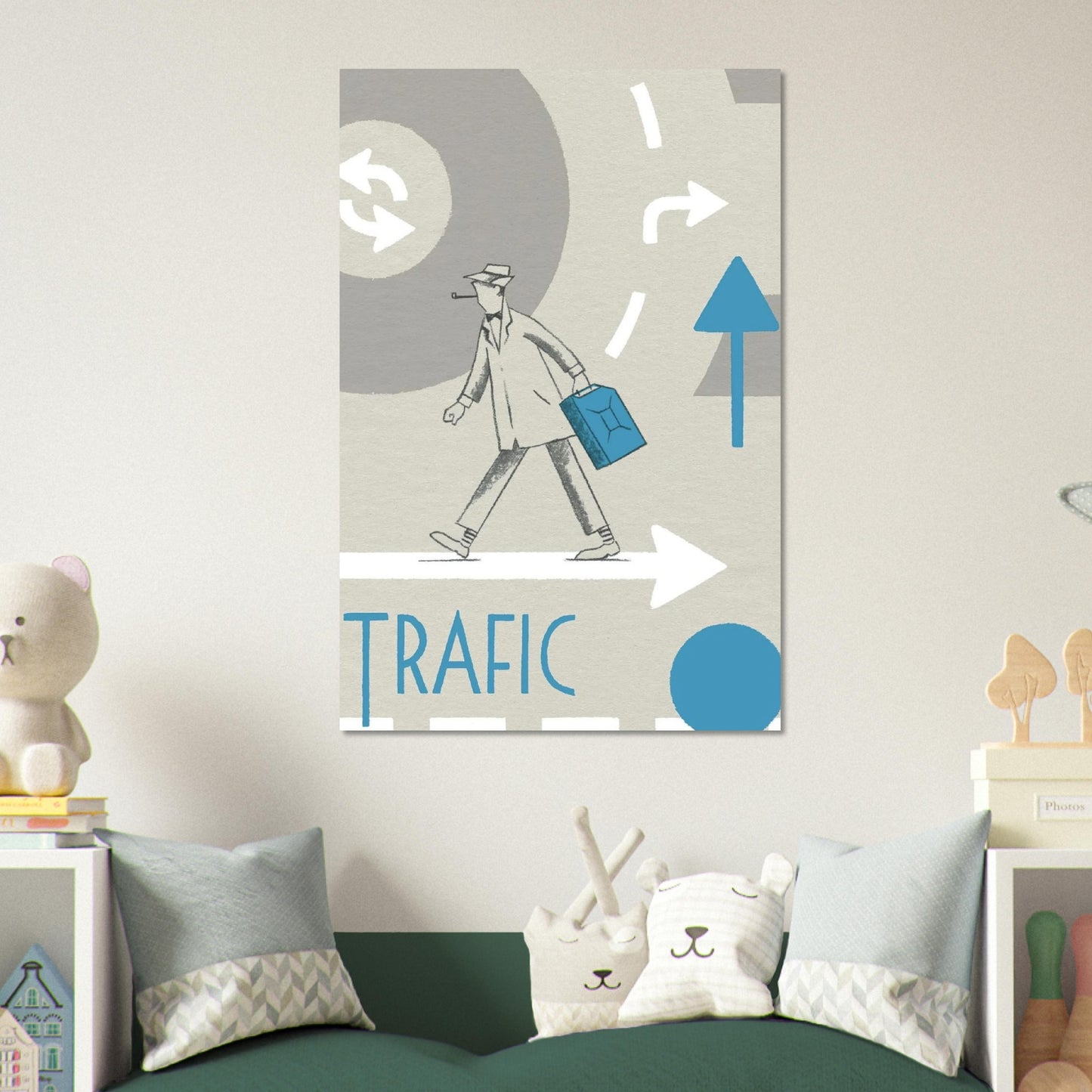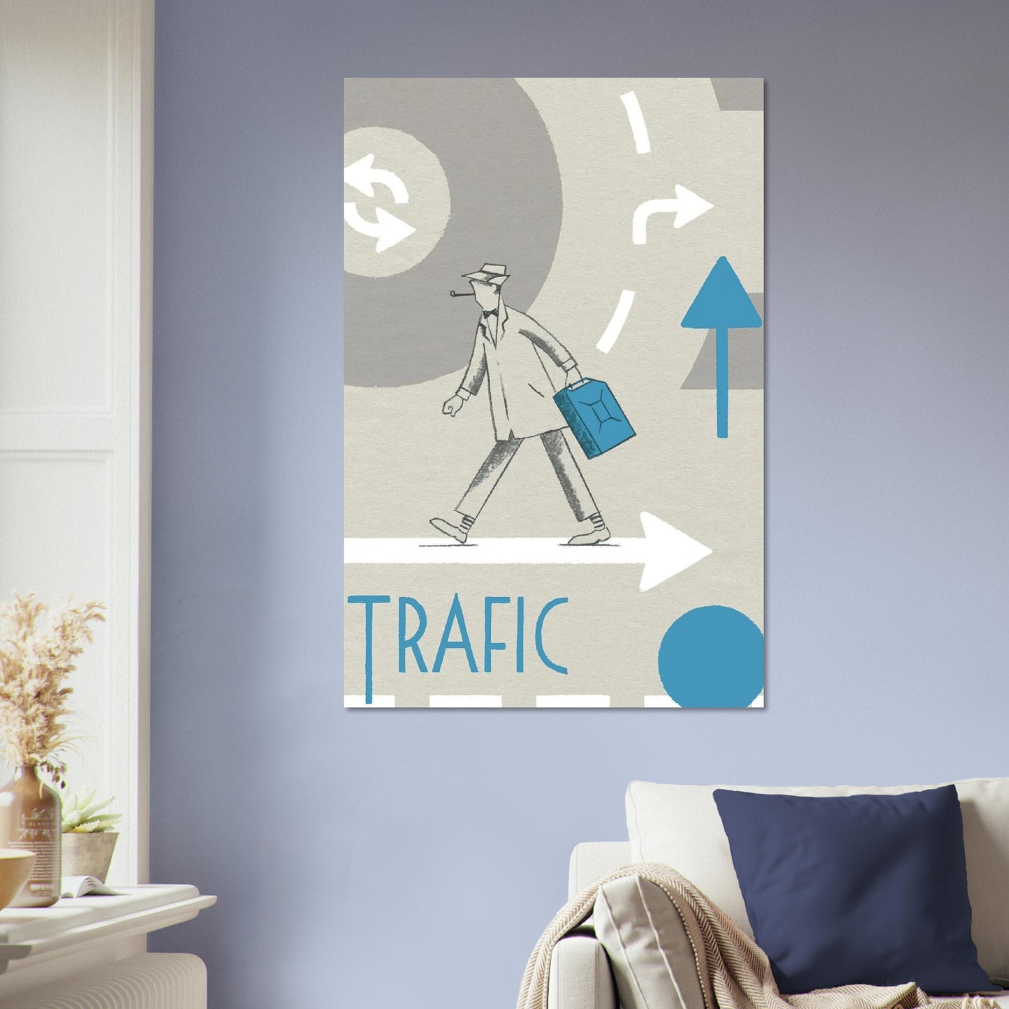 Minimalist Traffic Signs Retro Poster - Urban Walking Figure Art