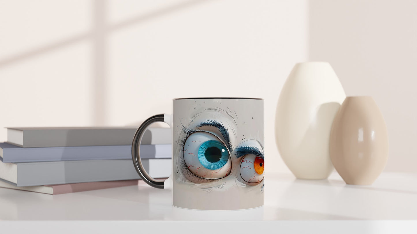 Mismatched Eyes Cartoon Mug - Funny Anime Style Character Expression