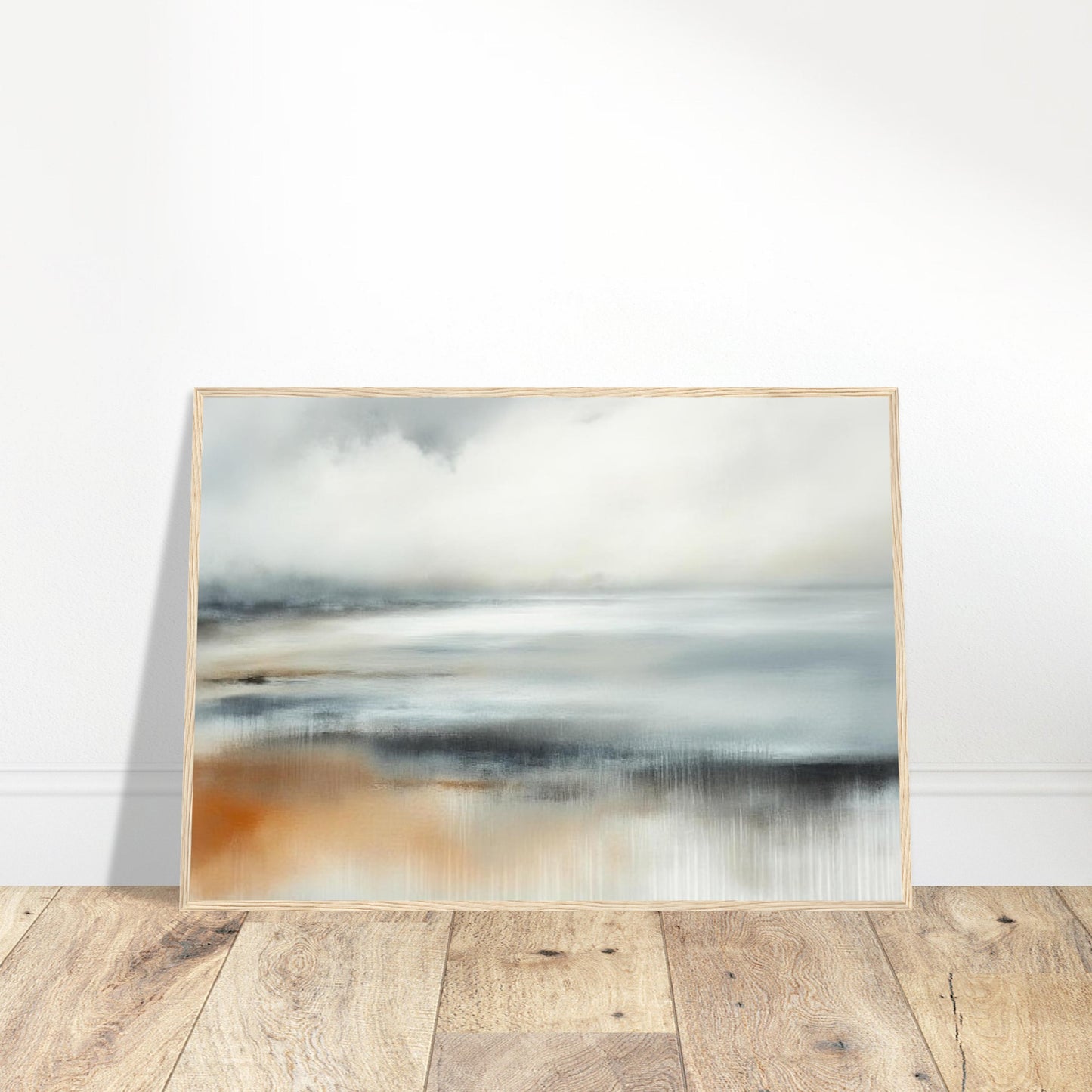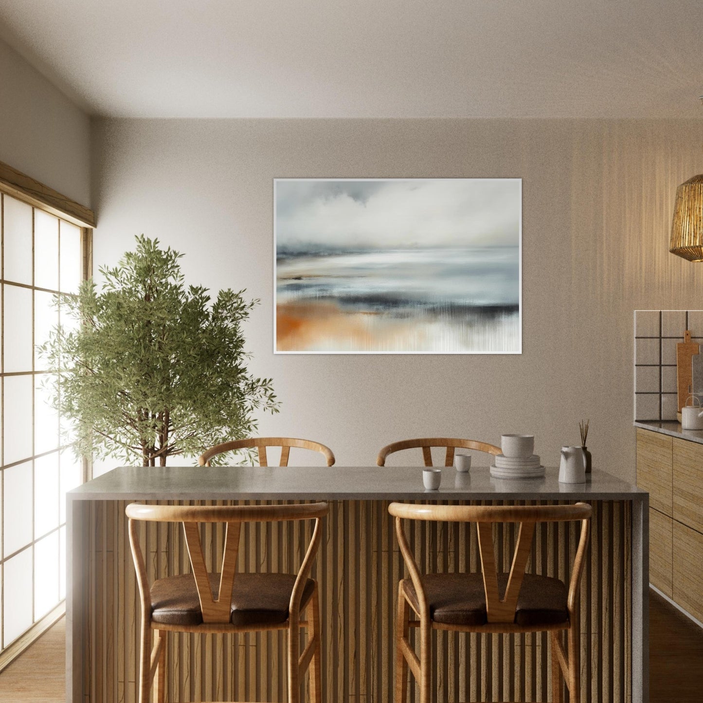 Misty Coastal Abstract Framed Poster - Modern Seascape Wall Art