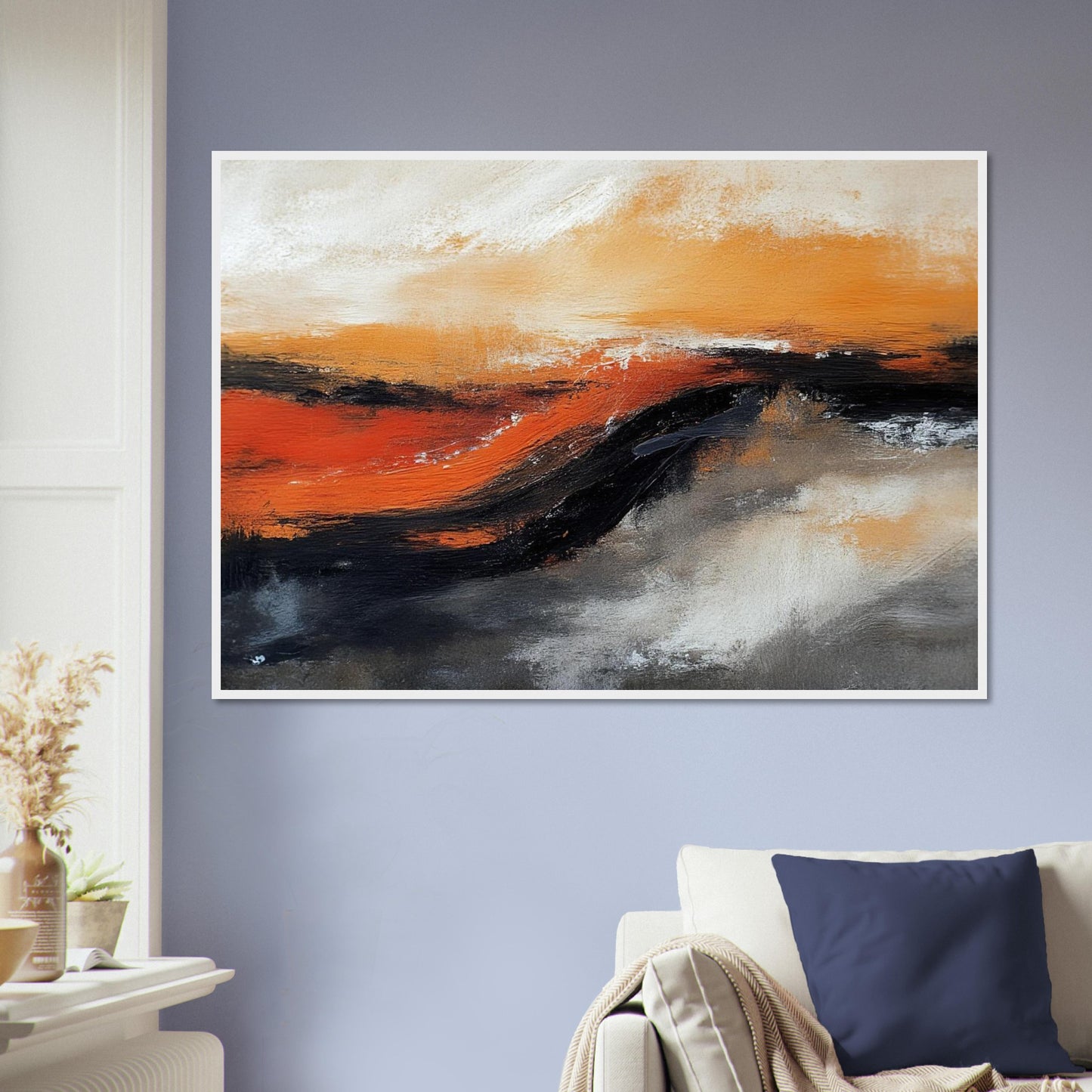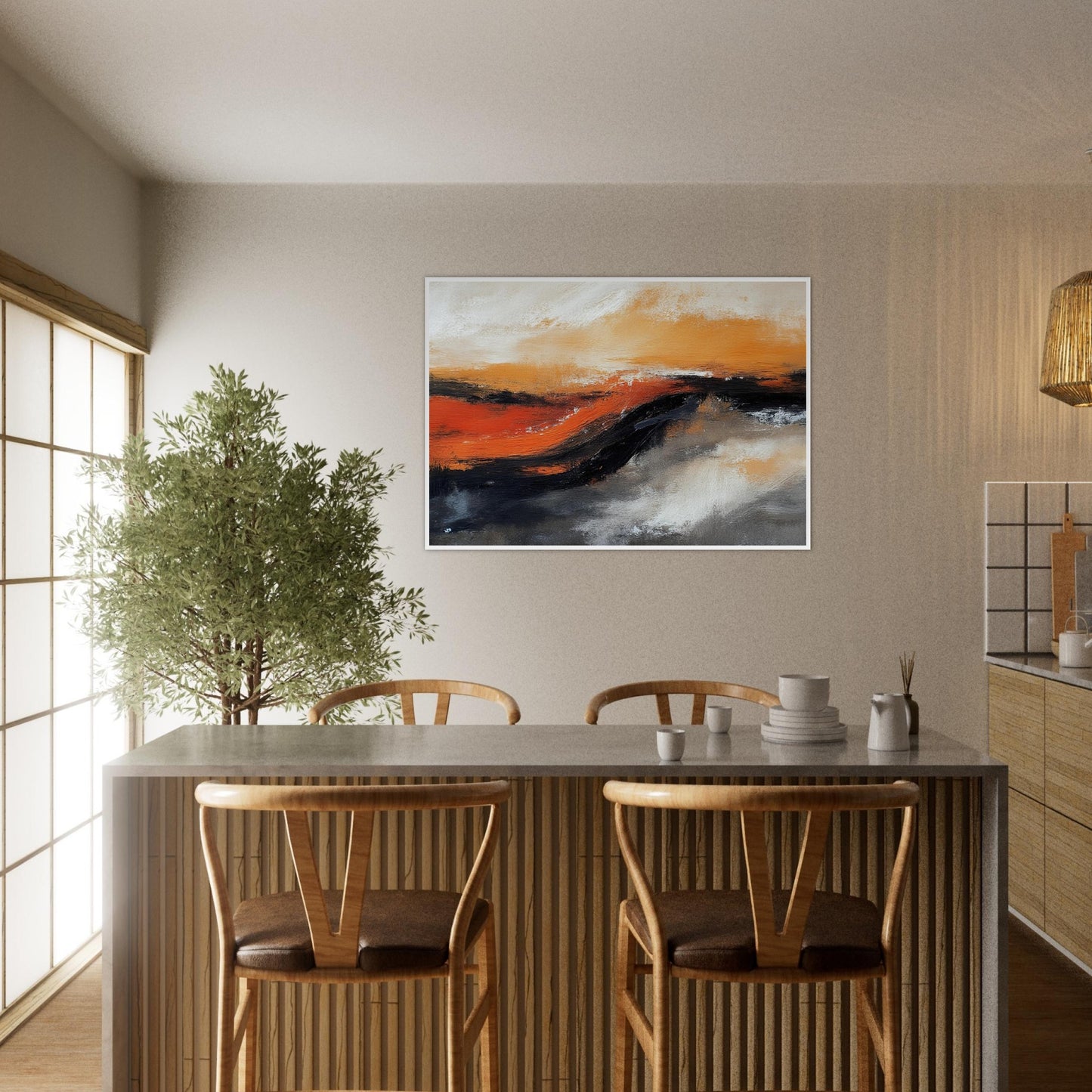 Modern Abstract Landscape Framed Poster - Orange Black Contemporary Art